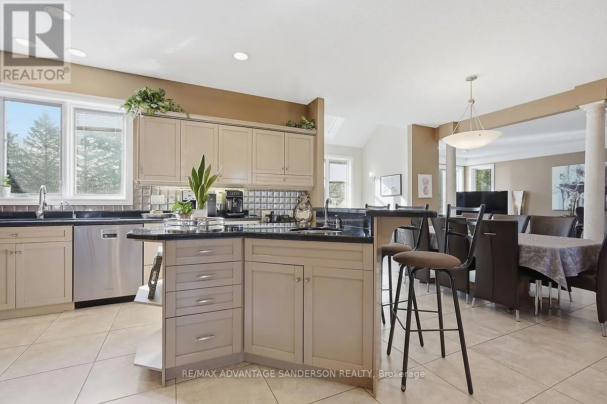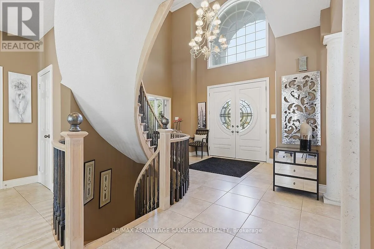 Cross Streets: Gainsborough Road. ** Directions: Wonderland Road North to Gainsborough Road to Denfield Road. RARE offering - 5 ACRES just minutes from the city. Welcome to 20735 Denfield Road, an extraordinary custom-built estate offering over 6,000 sq. ft. of refined living space on a pristine 5-acre parcel only 2 km from Hyde Park. Here, the serenity of country living meets the convenience of the city, with flat land presenting exceptional privacy and maturity! A dramatic 25-foot entryway filled with natural light welcomes you, anchored by a striking 3-storey eye-shaped staircase that sets the tone for the home's architectural elegance. The main level unfolds into an impressive open-concept layout featuring a formal dining room, expansive family room with gas fireplace, and a spectacular chef's kitchen designed for both everyday living and grand entertaining. A vaulted-ceiling den, bedroom with 4-piece ensuite and walk-in closet, main-floor laundry, and access to a private patio complete this level. The gourmet kitchen showcases built-in appliances, custom cabinetry, and a quartz island with wet bar, all overlooking the private backyard. The adjoining sunroom opens to a patio and gazebo, creating the perfect setting for entertaining or quiet relaxation. Upstairs, four spacious bedrooms each feature their own private ensuite and walk-in closet, offering comfort and privacy for family and guests alike. The lower level includes a large recreation room with game tables, second kitchen, generous storage, and a 2-piece bathroom. The exterior is equally impressive, with refined landscaping, accent lighting, and mature trees providing both beauty and privacy. Additional features include a detached 2-car garage, a 400 sq. ft. utility shed with water access, and a unique 500 sq. ft. home office with dedicated electrical and HVAC system - originally a 2-car garage that could easily be converted back for car enthusiasts. A rare opportunity to own a truly exceptional estate in an idyllic setting. Explore the the 3D tour at: https://my.matterport.com/show/?m=ZExwa55rM5a (id:27476)