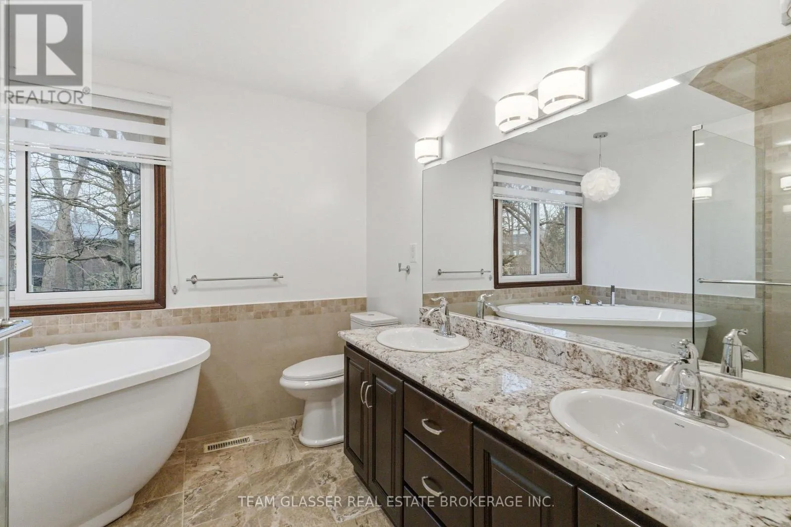 Cross Streets: Westbrook. ** Directions: Westbrook to blackburn. Nestled in the highly sought-after community of Kilworth, this exceptional 2-storey home is perfectly designed for modern family living, offering a blend of quality upgrades, thoughtful design, and outstanding outdoor space. This meticulously maintained, carpet-free home features beautiful hardwood in the family and formal dining room, along with engineered flooring throughout the upper level and vinyl plank in the basement and stairs. The refreshed kitchen showcases granite countertops, updated lighting, and modern finishes along with an eat-in kitchen area. Large covered front porch. Upstairs, all three bedrooms feature double closets, while the primary suite stands out with two walk-in closets and an updated ensuite with heated tile floors, fully tiled shower with multi-setting panel and a custom maple vanity crafted by Amish artisans. Extensive updates include attic insulation, water softener, concrete driveway, HRV system, tankless water heater and a cozy gas fireplace. Additional improvements include updated flooring throughout, Leaf Filter eavestrough protection, back hall built-ins, refinished stairwell, refreshed lighting, interior painting, roof and windows with 50 yr transferrable warranty and a new front door. Step outside to a backyard oasis featuring an expansive 800 sq ft wooden deck with a sliding roof for flexible outdoor enjoyment. The space is further enhanced by a natural gas BBQ hookup, in-ground sprinkler system, and a private setting backing onto a natural wooded area. Additional highlights include a large shed with loft, an oversized 2-car garage, and parking for six vehicles. A standout feature is the concrete RV pad with ample space to accommodate a 24' motorhome and additional trailer with room to spare. Situated in a quiet, upscale neighbourhood, this move-in ready home delivers the perfect combination of comfort, style, and practicality, an ideal opportunity for families looking to settle into the area's most desirable communities. (id:27476)