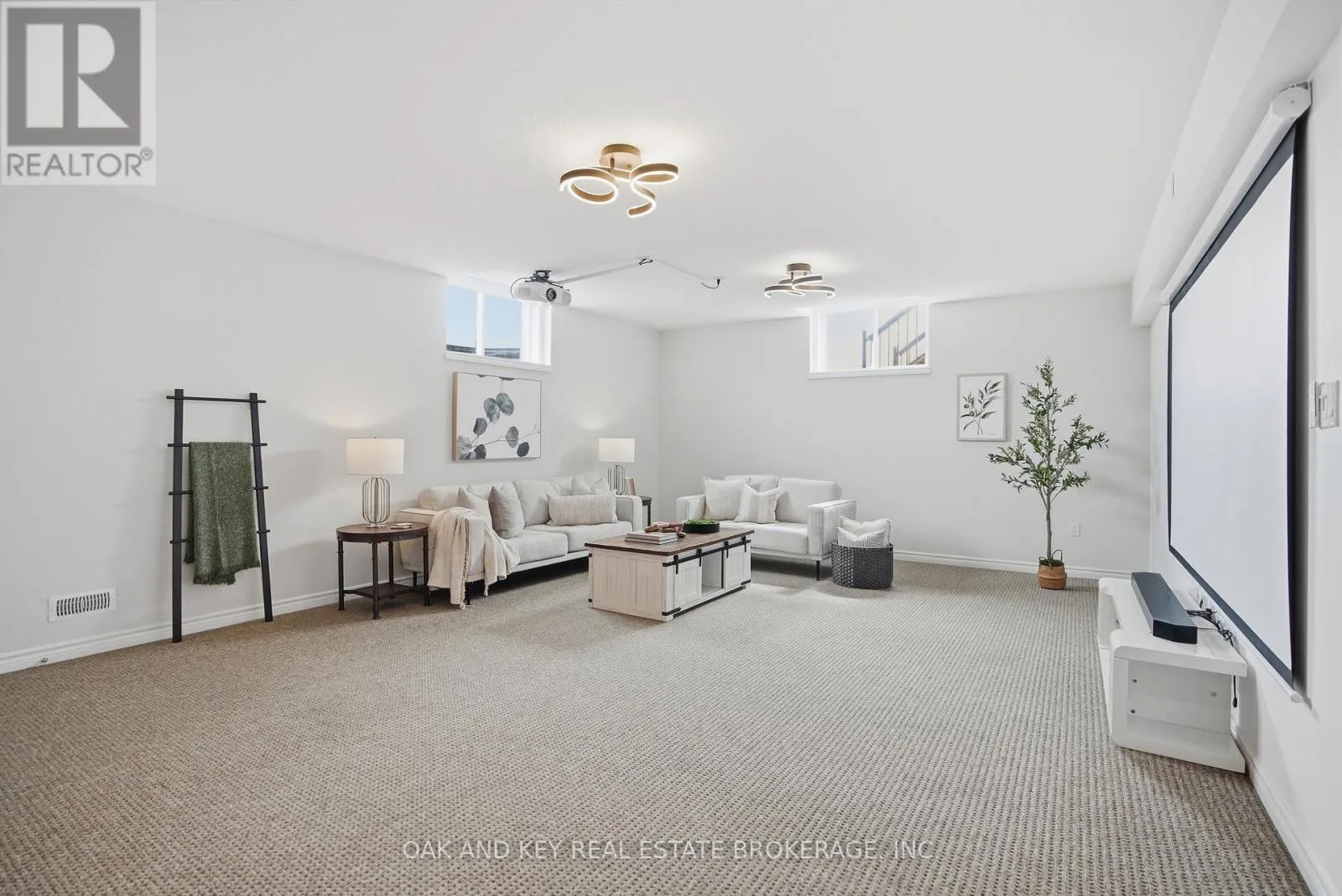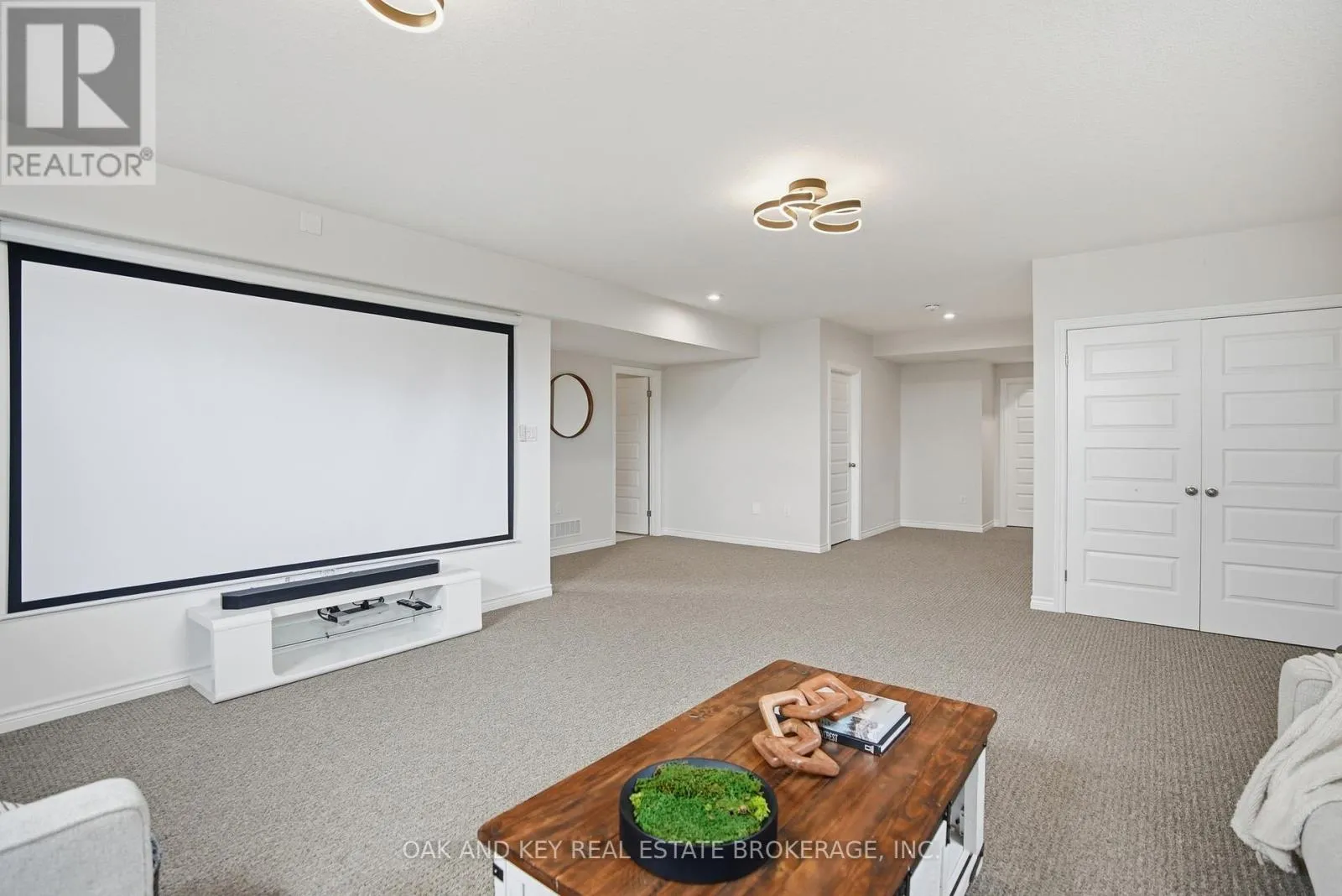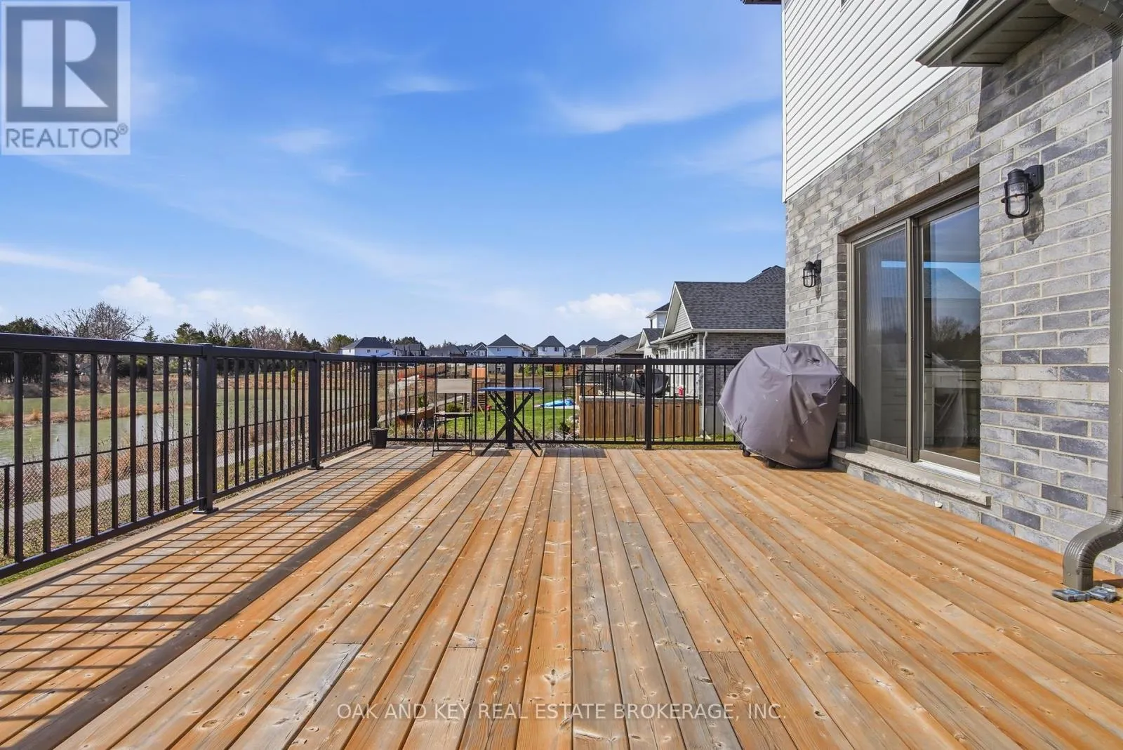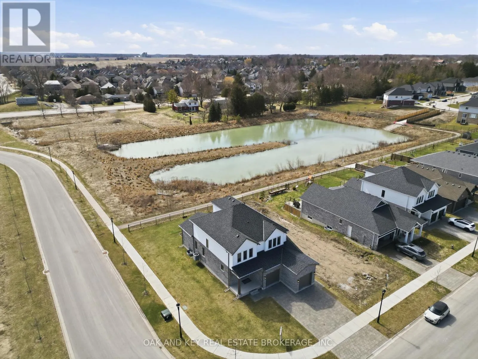 Cross Streets: Stonefield Lane and Bowman Drive. ** Directions: Ilderton Rd to Bowman Drive. Situated on a premium corner lot backing onto a scenic pond with walking trails, 11 Bowman Drive is a custom-built Ilderton home that raises the bar for what move-in-ready looks like. Over 3,600 square feet of finished living space across three levels, five bedrooms plus a main-floor office, five bathrooms, and a three-car garage - this is the kind of home most buyers design in their head but rarely find on the market. The main floor is bright, open, and thoughtfully laid out. A French double-door entry with tile foyer sets the tone. The living room delivers with soaring cathedral ceilings, a modern linear fireplace, and floor-to-ceiling windows that pull in natural light and unobstructed views of the pond. The kitchen matches the scale - granite countertops, built-in KitchenAid appliances including a gas cooktop and wall-mounted oven, a large centre island with seating, a custom pantry, and a dedicated coffee bar. A generous dining room, mudroom, and main-floor office complete the level. Step out to a spacious 16x20 deck with gas barbecue hookup overlooking the pond and walking trails - a setting that feels more like cottage country than subdivision. Upstairs features four bedrooms and three full bathrooms. The primary suite is a true retreat - five-piece ensuite with freestanding soaker tub, glass shower, double vanity, and linen closet. A fourth bedroom has its own dedicated ensuite, while two additional bedrooms share a Jack-and-Jill bath, upper-floor laundry with upgraded sink and gas-ready dryer hookup. The finished basement offers 12-foot ceilings, a dedicated theatre room with projector and screen, a fifth bedroom, a full bathroom, and plenty of storage. Remote-controlled blinds throughout the main floor and basement. Turnkey on one of Ilderton's best lots. (id:27476)