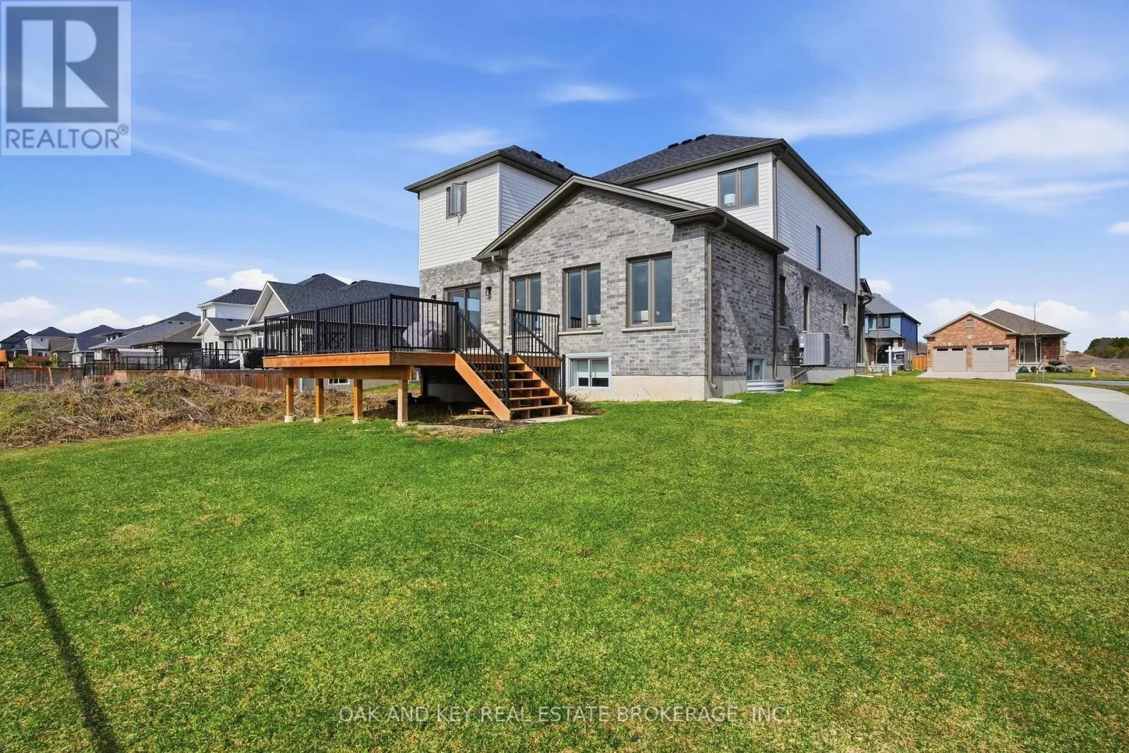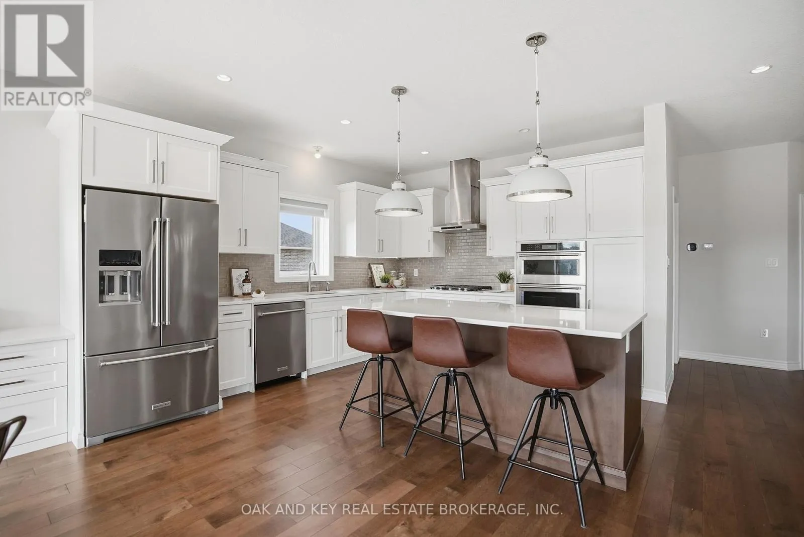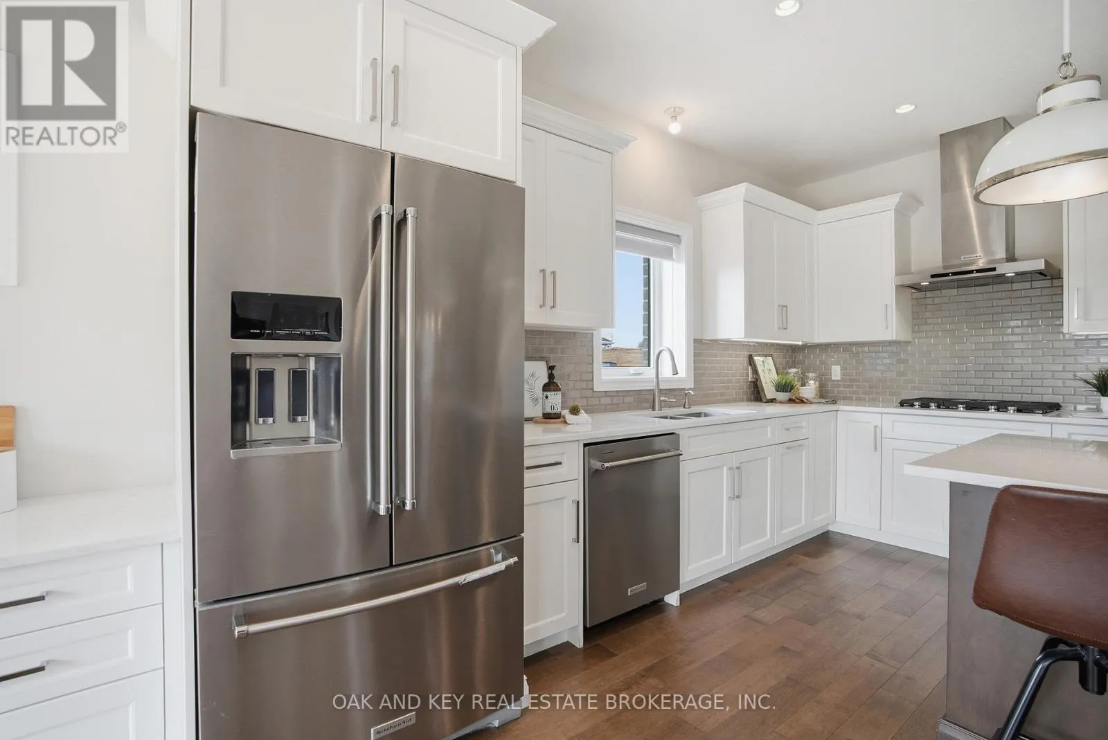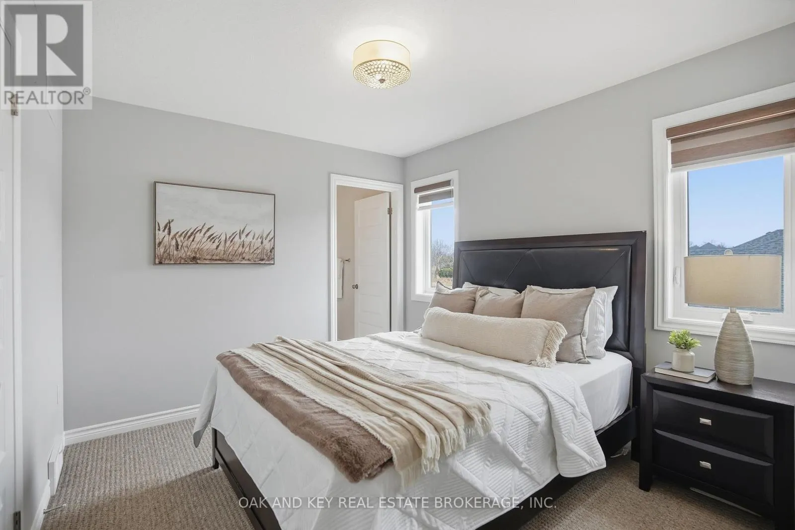 Cross Streets: Stonefield Lane and Bowman Drive. ** Directions: Ilderton Rd to Bowman Drive. Situated on a premium corner lot backing onto a scenic pond with walking trails, 11 Bowman Drive is a custom-built Ilderton home that raises the bar for what move-in-ready looks like. Over 3,600 square feet of finished living space across three levels, five bedrooms plus a main-floor office, five bathrooms, and a three-car garage - this is the kind of home most buyers design in their head but rarely find on the market. The main floor is bright, open, and thoughtfully laid out. A French double-door entry with tile foyer sets the tone. The living room delivers with soaring cathedral ceilings, a modern linear fireplace, and floor-to-ceiling windows that pull in natural light and unobstructed views of the pond. The kitchen matches the scale - granite countertops, built-in KitchenAid appliances including a gas cooktop and wall-mounted oven, a large centre island with seating, a custom pantry, and a dedicated coffee bar. A generous dining room, mudroom, and main-floor office complete the level. Step out to a spacious 16x20 deck with gas barbecue hookup overlooking the pond and walking trails - a setting that feels more like cottage country than subdivision. Upstairs features four bedrooms and three full bathrooms. The primary suite is a true retreat - five-piece ensuite with freestanding soaker tub, glass shower, double vanity, and linen closet. A fourth bedroom has its own dedicated ensuite, while two additional bedrooms share a Jack-and-Jill bath, upper-floor laundry with upgraded sink and gas-ready dryer hookup. The finished basement offers 12-foot ceilings, a dedicated theatre room with projector and screen, a fifth bedroom, a full bathroom, and plenty of storage. Remote-controlled blinds throughout the main floor and basement. Turnkey on one of Ilderton's best lots. (id:27476)