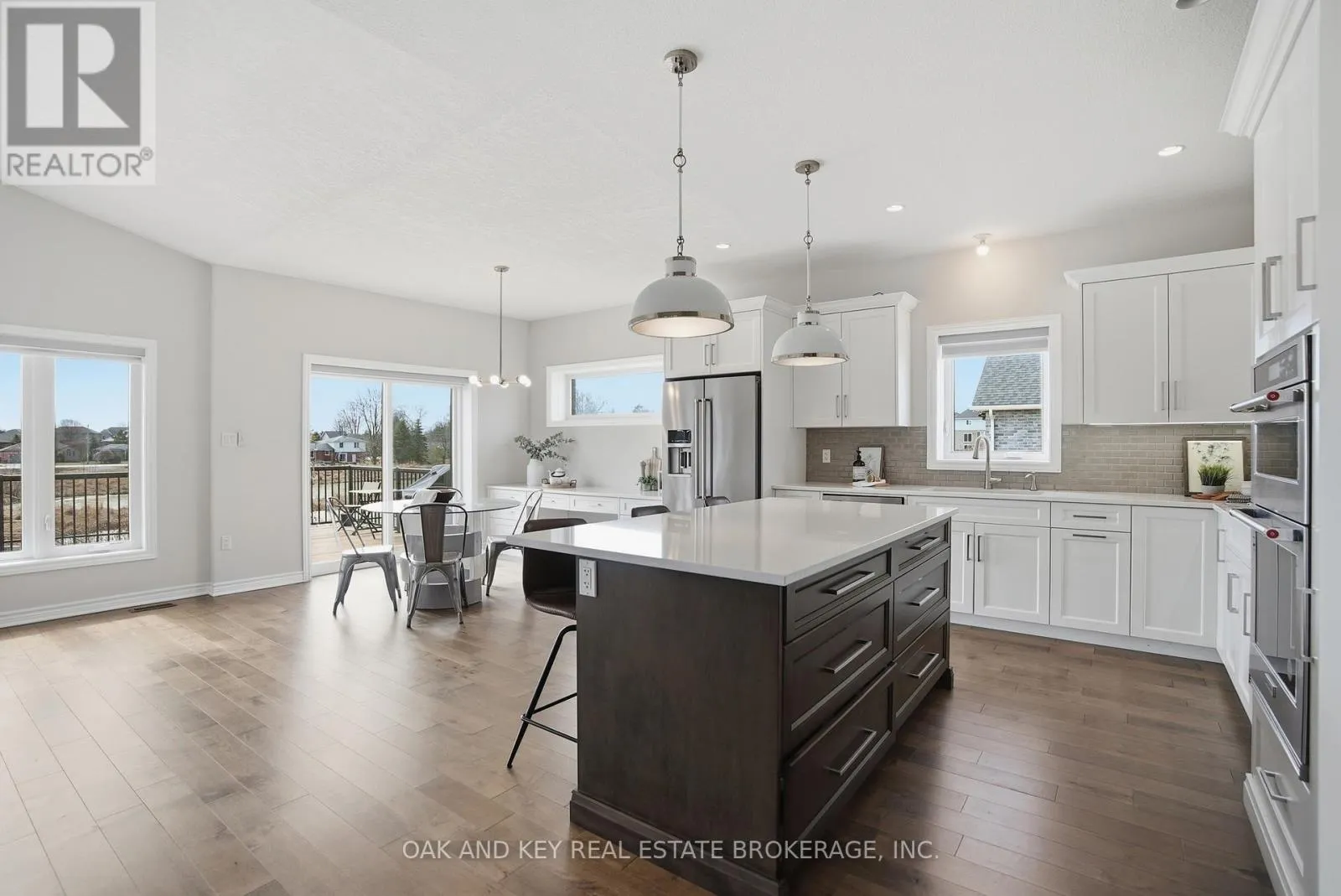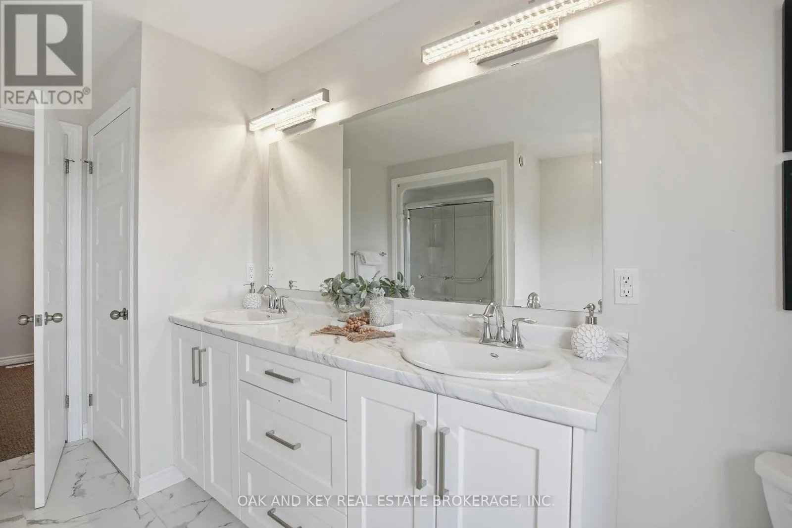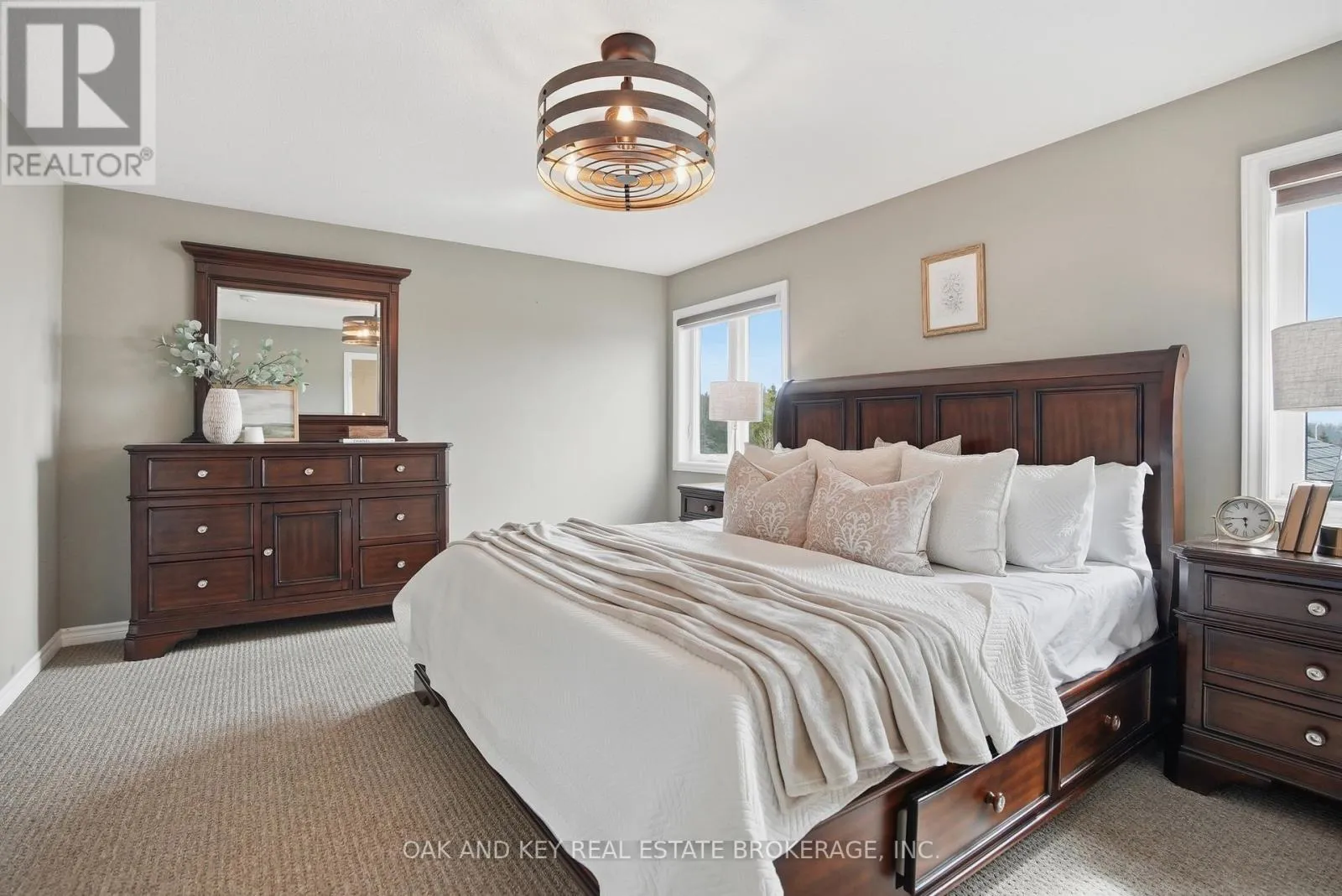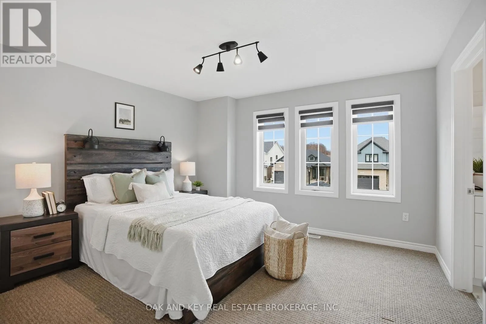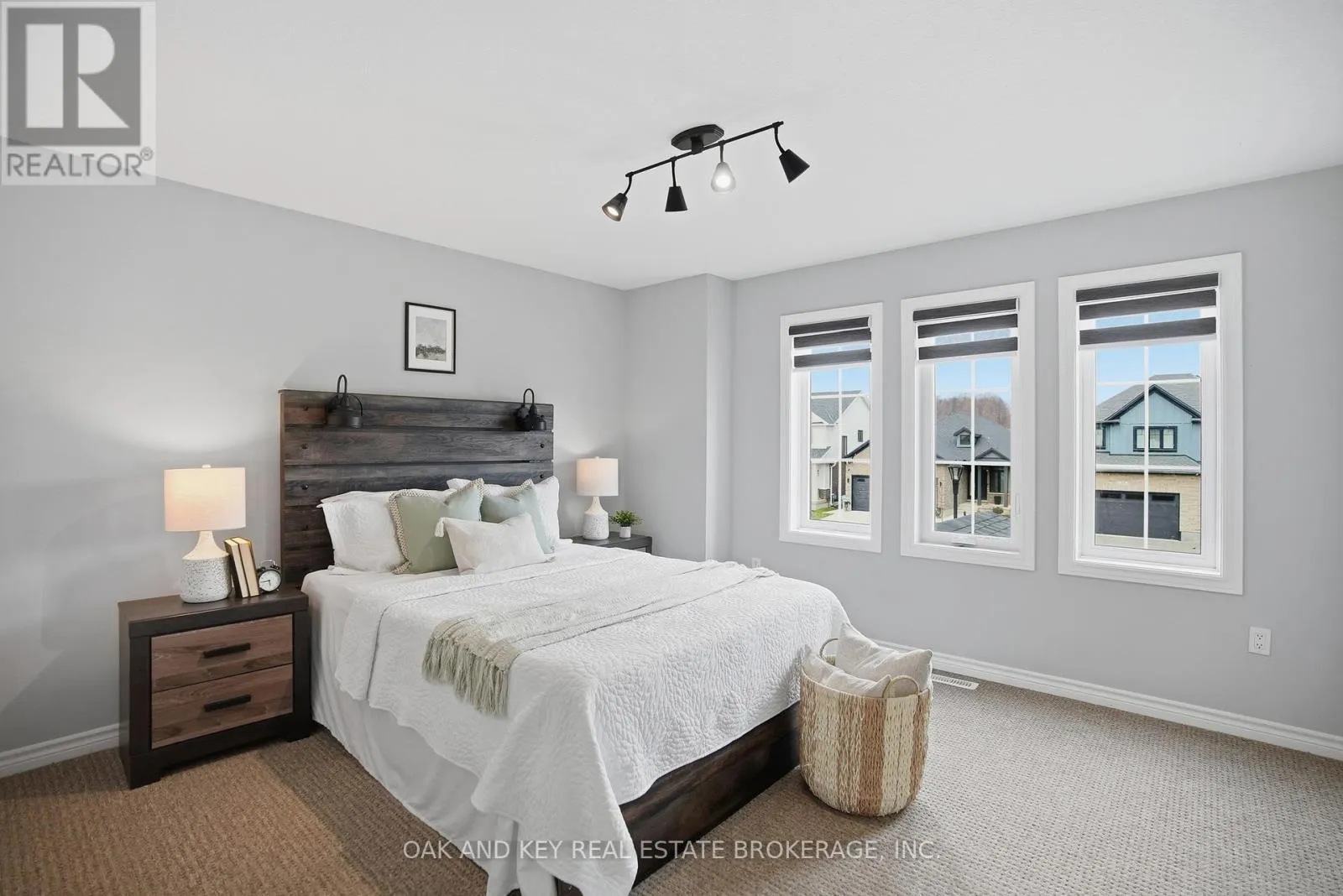 Cross Streets: Stonefield Lane and Bowman Drive. ** Directions: Ilderton Rd to Bowman Drive. Situated on a premium corner lot backing onto a scenic pond with walking trails, 11 Bowman Drive is a custom-built Ilderton home that raises the bar for what move-in-ready looks like. Over 3,600 square feet of finished living space across three levels, five bedrooms plus a main-floor office, five bathrooms, and a three-car garage - this is the kind of home most buyers design in their head but rarely find on the market. The main floor is bright, open, and thoughtfully laid out. A French double-door entry with tile foyer sets the tone. The living room delivers with soaring cathedral ceilings, a modern linear fireplace, and floor-to-ceiling windows that pull in natural light and unobstructed views of the pond. The kitchen matches the scale - granite countertops, built-in KitchenAid appliances including a gas cooktop and wall-mounted oven, a large centre island with seating, a custom pantry, and a dedicated coffee bar. A generous dining room, mudroom, and main-floor office complete the level. Step out to a spacious 16x20 deck with gas barbecue hookup overlooking the pond and walking trails - a setting that feels more like cottage country than subdivision. Upstairs features four bedrooms and three full bathrooms. The primary suite is a true retreat - five-piece ensuite with freestanding soaker tub, glass shower, double vanity, and linen closet. A fourth bedroom has its own dedicated ensuite, while two additional bedrooms share a Jack-and-Jill bath, upper-floor laundry with upgraded sink and gas-ready dryer hookup. The finished basement offers 12-foot ceilings, a dedicated theatre room with projector and screen, a fifth bedroom, a full bathroom, and plenty of storage. Remote-controlled blinds throughout the main floor and basement. Turnkey on one of Ilderton's best lots. (id:27476)