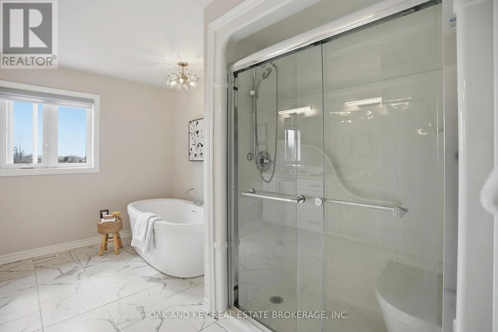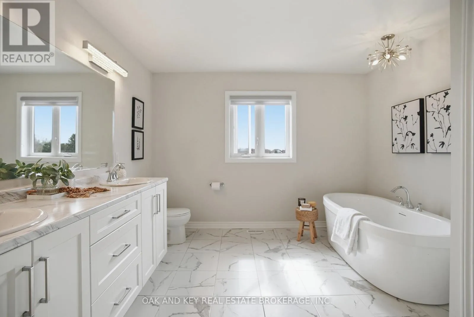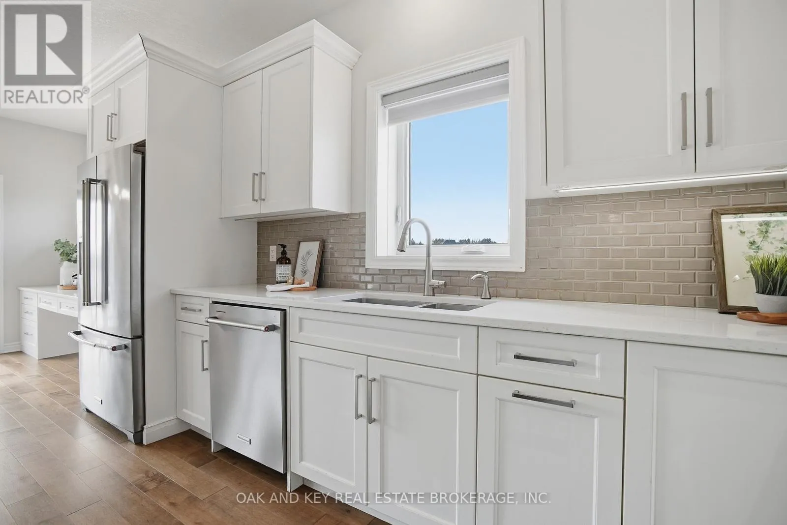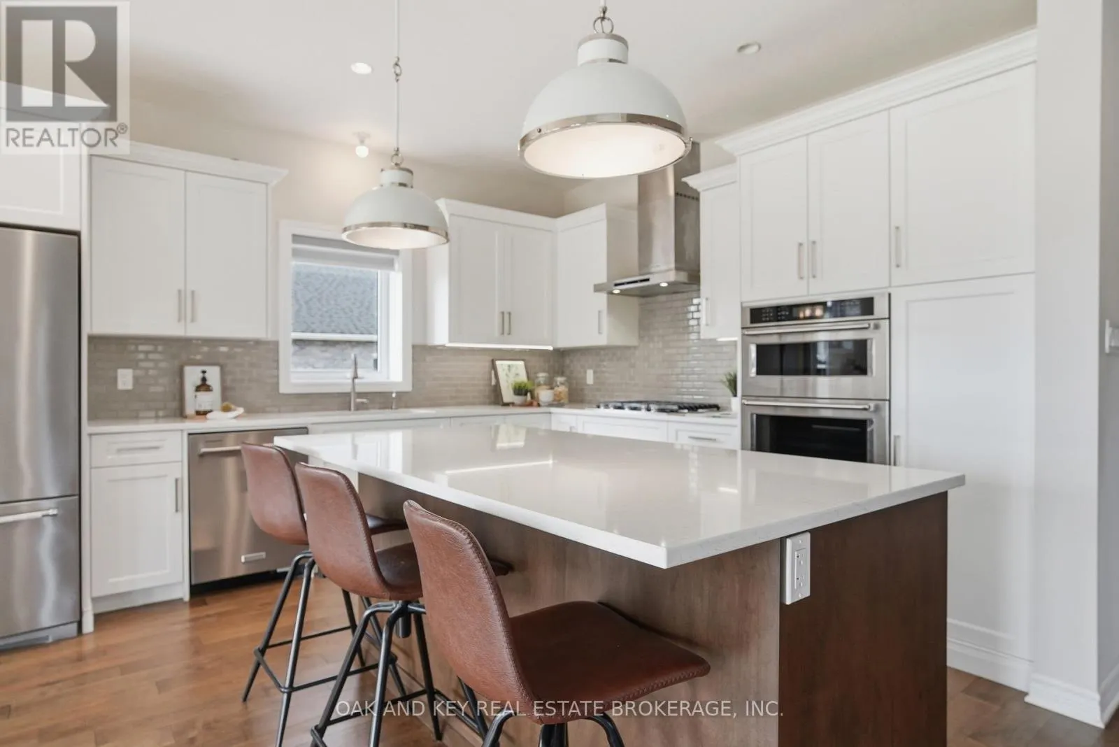 Cross Streets: Stonefield Lane and Bowman Drive. ** Directions: Ilderton Rd to Bowman Drive. Situated on a premium corner lot backing onto a scenic pond with walking trails, 11 Bowman Drive is a custom-built Ilderton home that raises the bar for what move-in-ready looks like. Over 3,600 square feet of finished living space across three levels, five bedrooms plus a main-floor office, five bathrooms, and a three-car garage - this is the kind of home most buyers design in their head but rarely find on the market. The main floor is bright, open, and thoughtfully laid out. A French double-door entry with tile foyer sets the tone. The living room delivers with soaring cathedral ceilings, a modern linear fireplace, and floor-to-ceiling windows that pull in natural light and unobstructed views of the pond. The kitchen matches the scale - granite countertops, built-in KitchenAid appliances including a gas cooktop and wall-mounted oven, a large centre island with seating, a custom pantry, and a dedicated coffee bar. A generous dining room, mudroom, and main-floor office complete the level. Step out to a spacious 16x20 deck with gas barbecue hookup overlooking the pond and walking trails - a setting that feels more like cottage country than subdivision. Upstairs features four bedrooms and three full bathrooms. The primary suite is a true retreat - five-piece ensuite with freestanding soaker tub, glass shower, double vanity, and linen closet. A fourth bedroom has its own dedicated ensuite, while two additional bedrooms share a Jack-and-Jill bath, upper-floor laundry with upgraded sink and gas-ready dryer hookup. The finished basement offers 12-foot ceilings, a dedicated theatre room with projector and screen, a fifth bedroom, a full bathroom, and plenty of storage. Remote-controlled blinds throughout the main floor and basement. Turnkey on one of Ilderton's best lots. (id:27476)