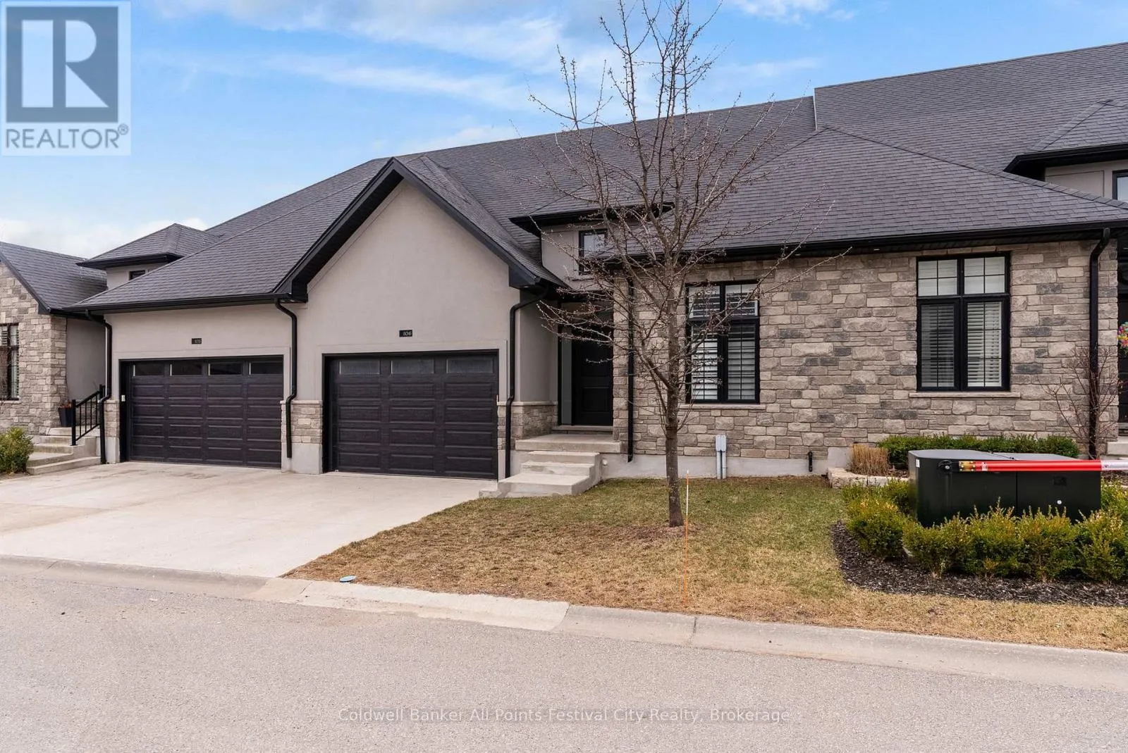 Cross Streets: Komoka Rd. ** Directions: West of Komoka, left onto 9861 Glendon, unit on left second road on left. Located just 20 minutes west of London, this stunning attached bungalow built in 2019 offers approximately 1,300 sqft of living space in one of Komoka's most desirable newer developments. Featuring 2 bedrooms, 2 full bathrooms, and a 1.5 car garage, this home combines modern convenience with timeless design. The exterior offers fantastic curb appeal with a beautiful blend of stone, stucco, and hardie board accents, giving the home a modern yet classic look. Step inside to a bright and welcoming foyer with impressive 14 foot ceilings, leading into a spacious great room with 9 foot ceilings throughout, plenty of pot lighting, and a cozy gas fireplace, perfect for relaxing or entertaining. The kitchen and living area offer a functional open layout, while the primary suite features a walk-in closet and a gorgeous 4pc ensuite designed for comfort and style. A second bedroom and full bathroom make this home ideal for downsizers, retirees, or anyone looking for low maintenance living. The unfinished basement provides endless possibilities and could easily be used as a gym, hobby space, workshop, or additional storage, with the option to finish to suit your needs. Enjoy easy living with a low monthly condo fee of $125, which includes maintenance of common elements, green space, and snow removal on the private road. This fantastic location is just steps from Komoka Provincial Park, offering scenic trails, river views, and outdoor recreation, and is also close to schools, parks, shipping, and quick access to Highway 402, making commuting simple. Komoka continues to be one of the most sought-after communities in the area - and this beautiful home is ready for its next owner. (id:27476)
