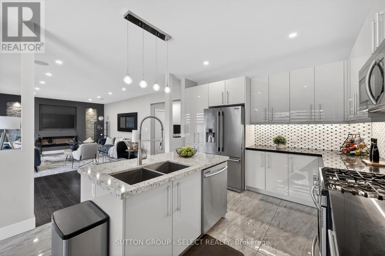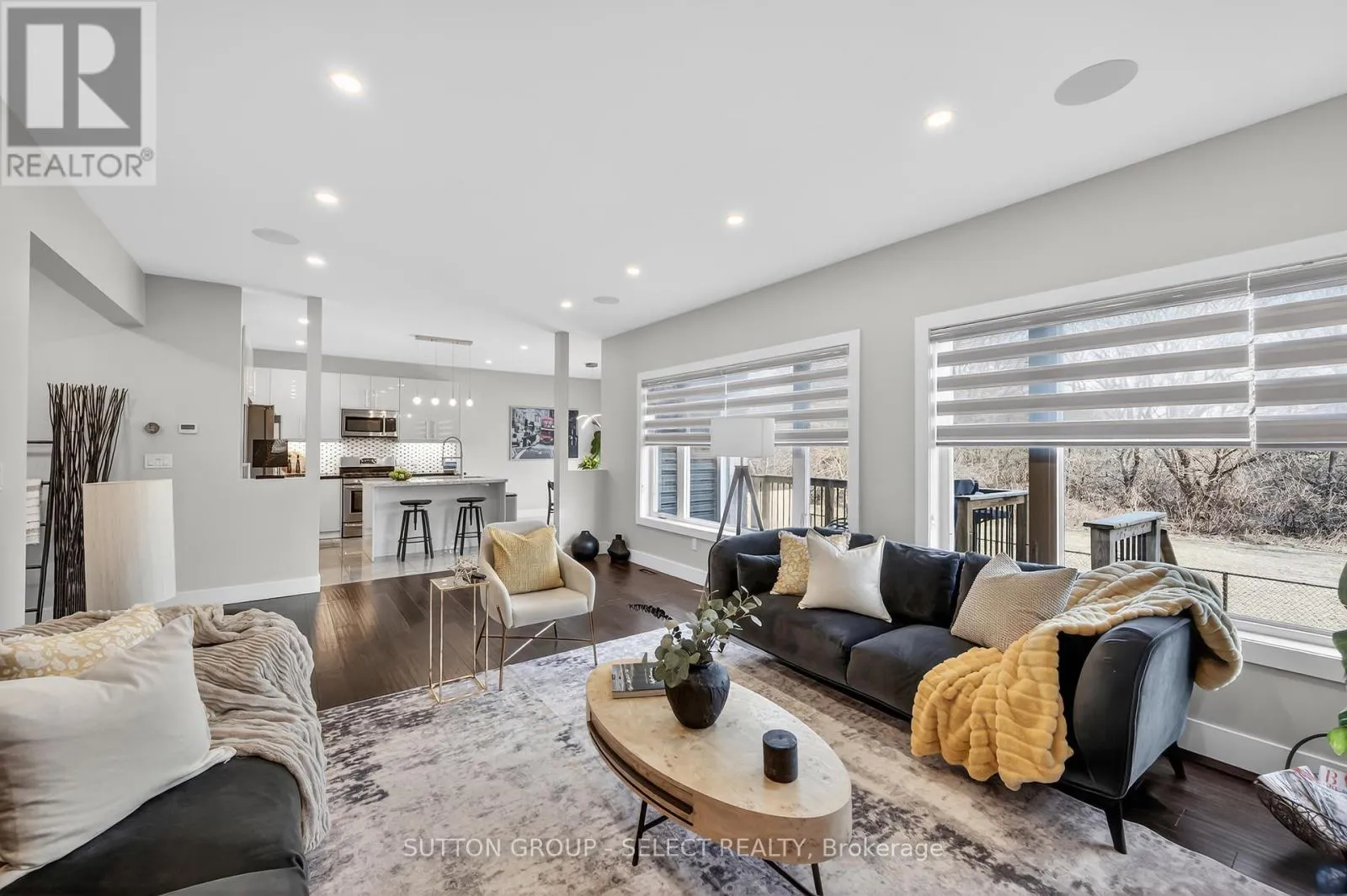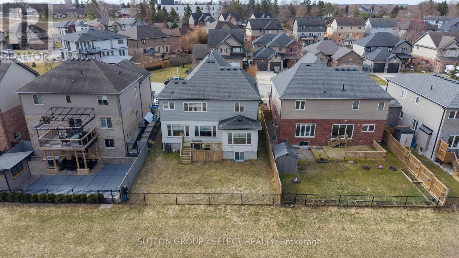 Cross Streets: Oxbow Dr/ Union Ave. ** Directions: Oxbow Dr to Union Ave. Welcome Home at the impressive 211 Union Avenue in quiet Komoka backing onto a green space. Modern and striking curb appeal stands apart with its deep hues, interlock brick drive, stone & stucco facade, and double-door front entry. Step into the soaring two-storey foyer beautifully illuminated by cascading chandeliers. The main floor offers a designated office space, a living room with a central gas fireplace - framed by a feature wall w/ linear stone wall niches with down lighting - and a sunshine-filled chef's kitchen + dining space featuring premium stainless steel appliances, a contrast centre island, quartz and granite surfaces, upscale pendant lighting and gleaming cabinetry, all overlooking the maturity of the green space, step-down deck, & fully fenced yard. 9' ceiling heights and gleaming hardwood throughout the main floor principal living areas as well. Four spacious bedrooms upstairs including the Primary, which offers 2 walk-in closets and a spa inspired 5pc ensuite. 4pc common bath. The bright lower level offers an additional bedroom, recreation room, full bath, a wet-bar rough in, and plenty of storage. Painted in contemporary, neutral tones throughout. Design and stunning attention to detail throughout. Bright open spaces and elevated finishes. (id:27476)