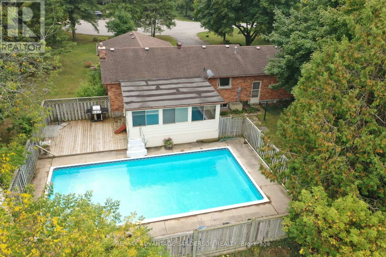 Cross Streets: Ilderton Road. ** Directions: Ilderton Road to Charles to Park to Currie. A rare gem! Tucked away on a peaceful court in Poplar Hill, just minutes northwest of London and a short walk from the community park and Coldstream Conservation Area. This charming brick bungalow sits on a mature, private lot on a tranquil street. Features include a 1.5-car attached garage, a detached storage shed, and an inground swimming pool. Inside, you'll find 3 bedrooms, 2 bathrooms, a spacious living room with hardwood floors, and a dining area that is open to the kitchen. The finished lower level boasts a cozy family room with a gas fireplace. Enjoy the beautiful 3-season sunroom overlooking the pool. Several updated windows and a new gas furnace in 2024. *Note: The heating system is forced air gas and the baseboard heaters can be removed. Prime location! (id:27476)