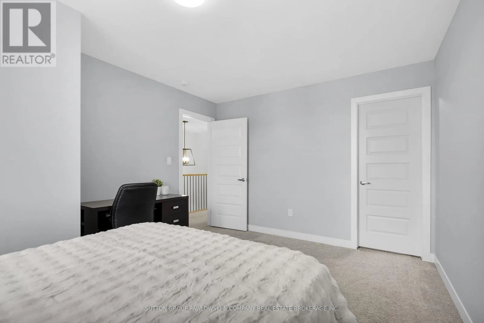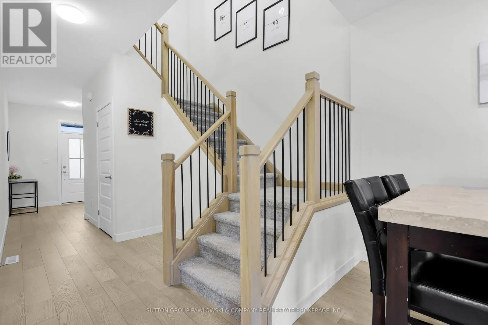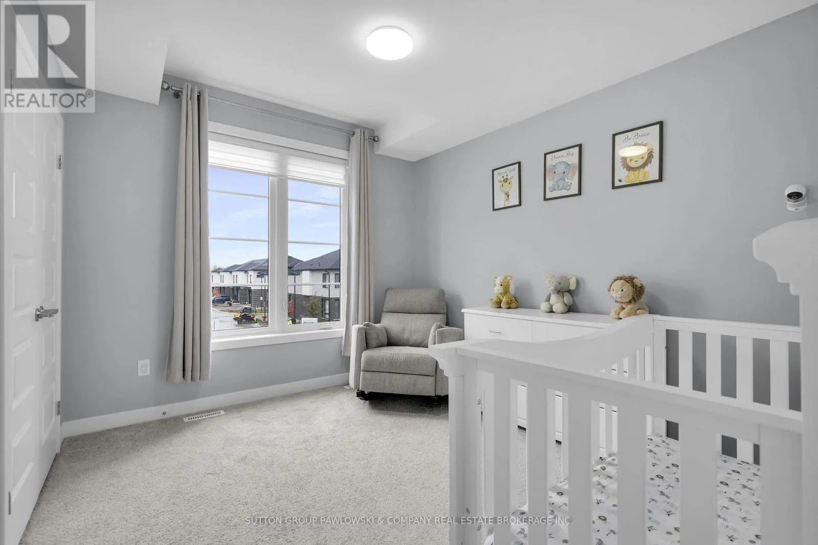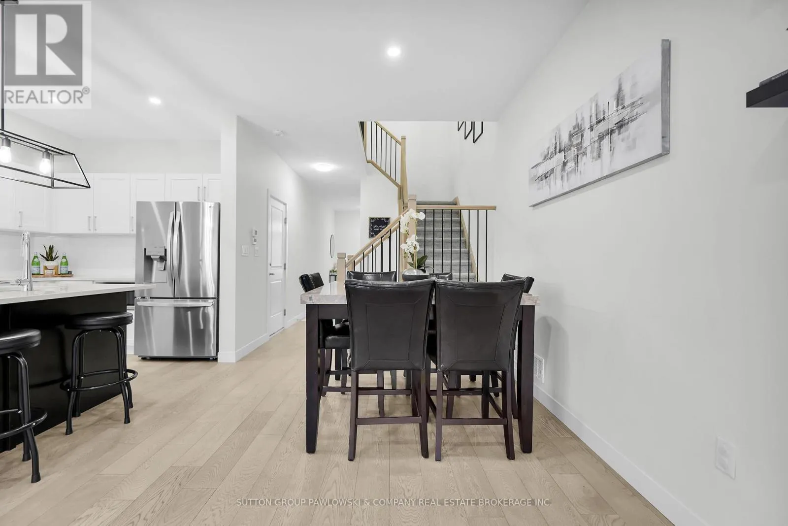 Cross Streets: Crestview Drive. ** Directions: . Welcome to this stylish freehold townhome in the highly sought-after Kilworth Heights West community. Offering approximately 1,745 sq ft of well-designed living space, this modern 2-storey home features 3 bedrooms, 2.5 bathrooms, and an attached single-car garage with inside entry - all with no condo fees. The bright, open-concept main floor is ideal for everyday living and entertaining, showcasing wide-plank flooring, a spacious living area with contemporary electric fireplace, and large windows that flood the space with natural light. The sleek kitchen is the heart of the home, complete with quartz countertops, modern cabinetry, stainless steel appliances, and a large island with seating. Patio doors lead to a private, fully fenced backyard with deck - perfect for outdoor dining and relaxation. Upstairs, the generous primary bedroom offers a walk-in closet and a beautifully finished ensuite with double vanity and glass shower. Two additional bedrooms, a full bathroom, and convenient upper-level laundry complete the second floor. The unfinished lower level provides excellent potential for future living space or storage. Located in a family-friendly neighbourhood close to parks, schools, shopping, and amenities, with quick access to Highways 401 and 402. A move-in-ready opportunity in one of Kilworth's most desirable communities. (id:27476)