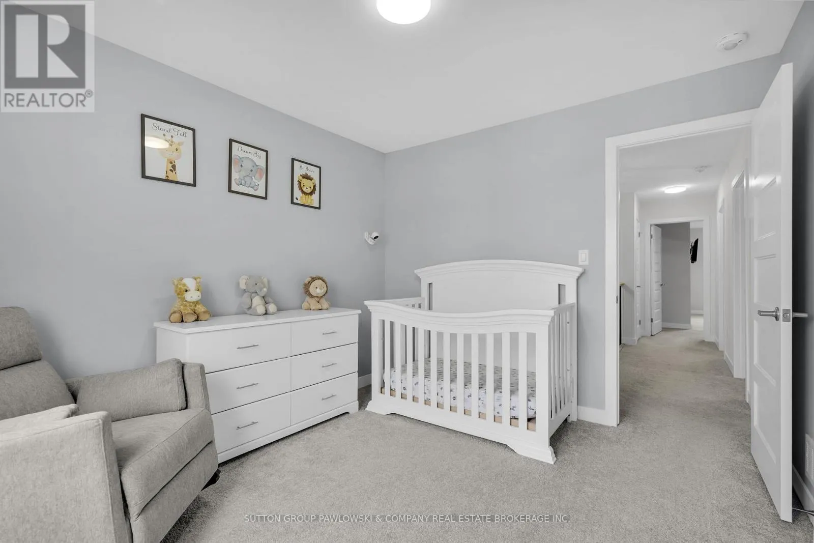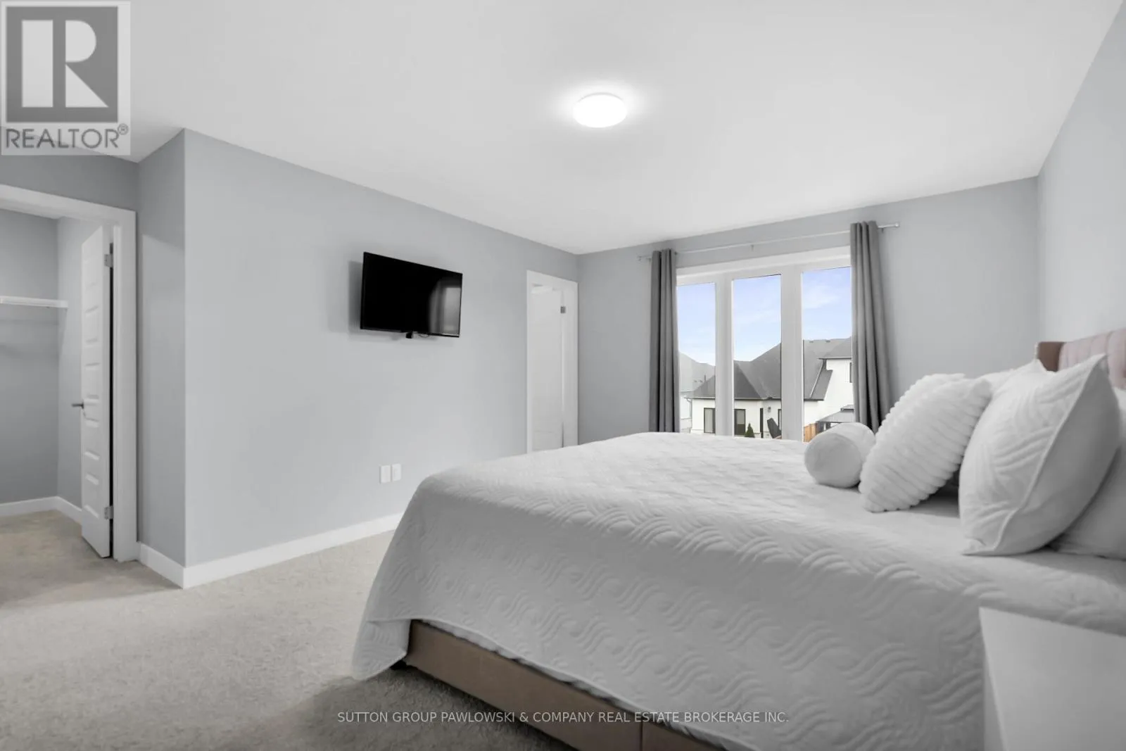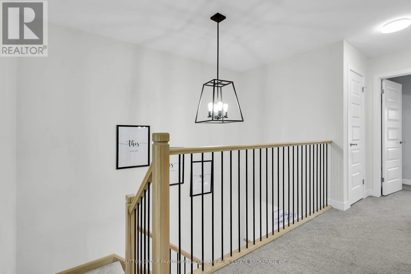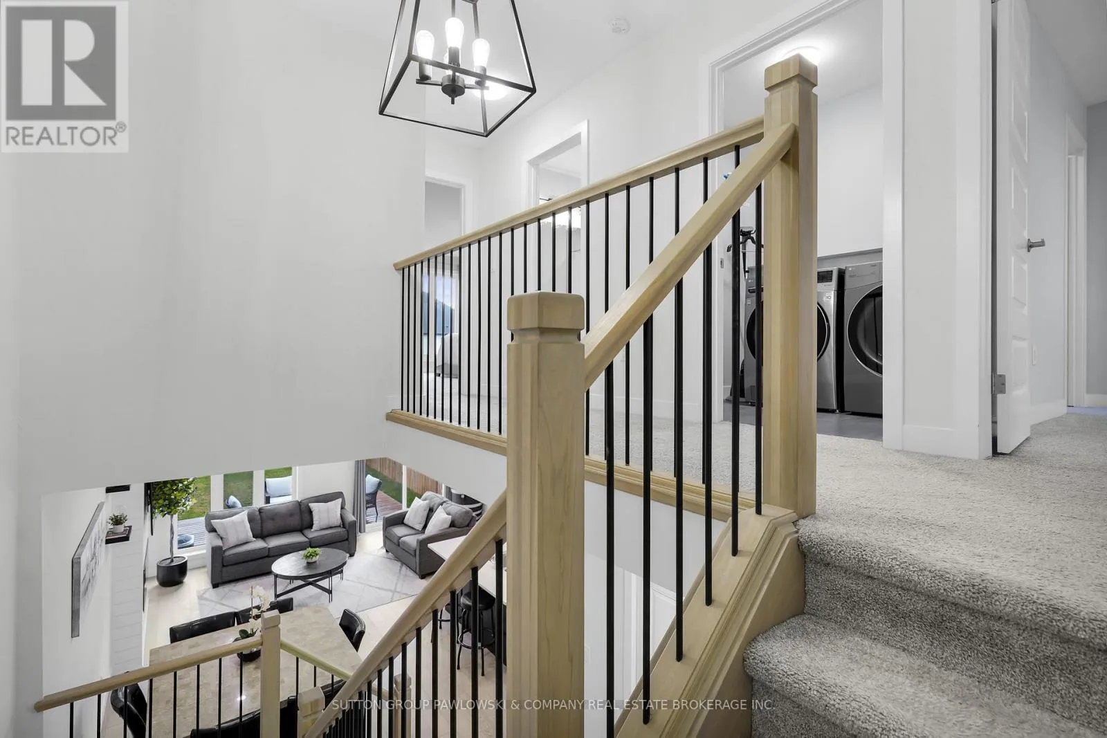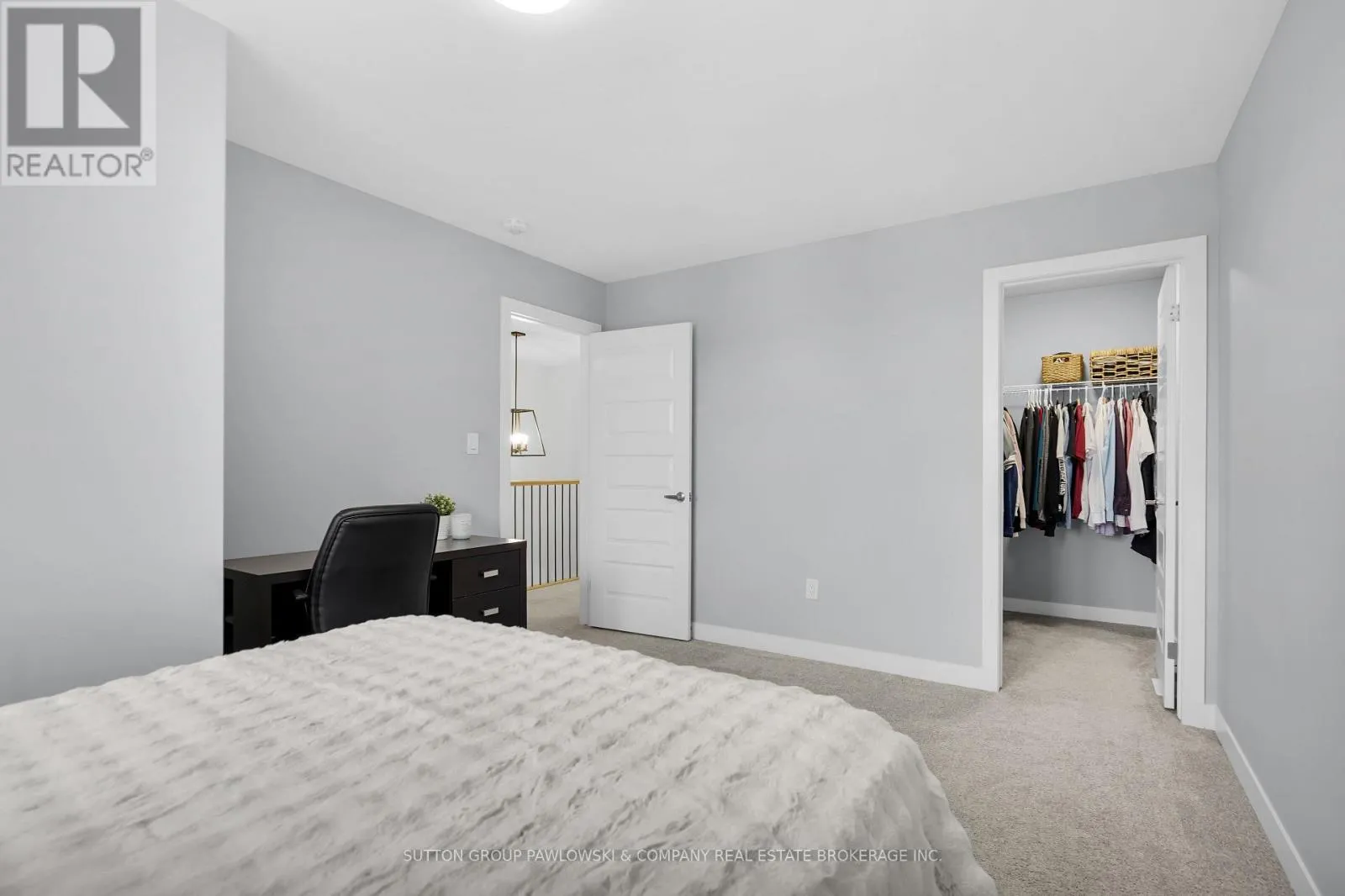 Cross Streets: Crestview Drive. ** Directions: . Welcome to this stylish freehold townhome in the highly sought-after Kilworth Heights West community. Offering approximately 1,745 sq ft of well-designed living space, this modern 2-storey home features 3 bedrooms, 2.5 bathrooms, and an attached single-car garage with inside entry - all with no condo fees. The bright, open-concept main floor is ideal for everyday living and entertaining, showcasing wide-plank flooring, a spacious living area with contemporary electric fireplace, and large windows that flood the space with natural light. The sleek kitchen is the heart of the home, complete with quartz countertops, modern cabinetry, stainless steel appliances, and a large island with seating. Patio doors lead to a private, fully fenced backyard with deck - perfect for outdoor dining and relaxation. Upstairs, the generous primary bedroom offers a walk-in closet and a beautifully finished ensuite with double vanity and glass shower. Two additional bedrooms, a full bathroom, and convenient upper-level laundry complete the second floor. The unfinished lower level provides excellent potential for future living space or storage. Located in a family-friendly neighbourhood close to parks, schools, shopping, and amenities, with quick access to Highways 401 and 402. A move-in-ready opportunity in one of Kilworth's most desirable communities. (id:27476)
