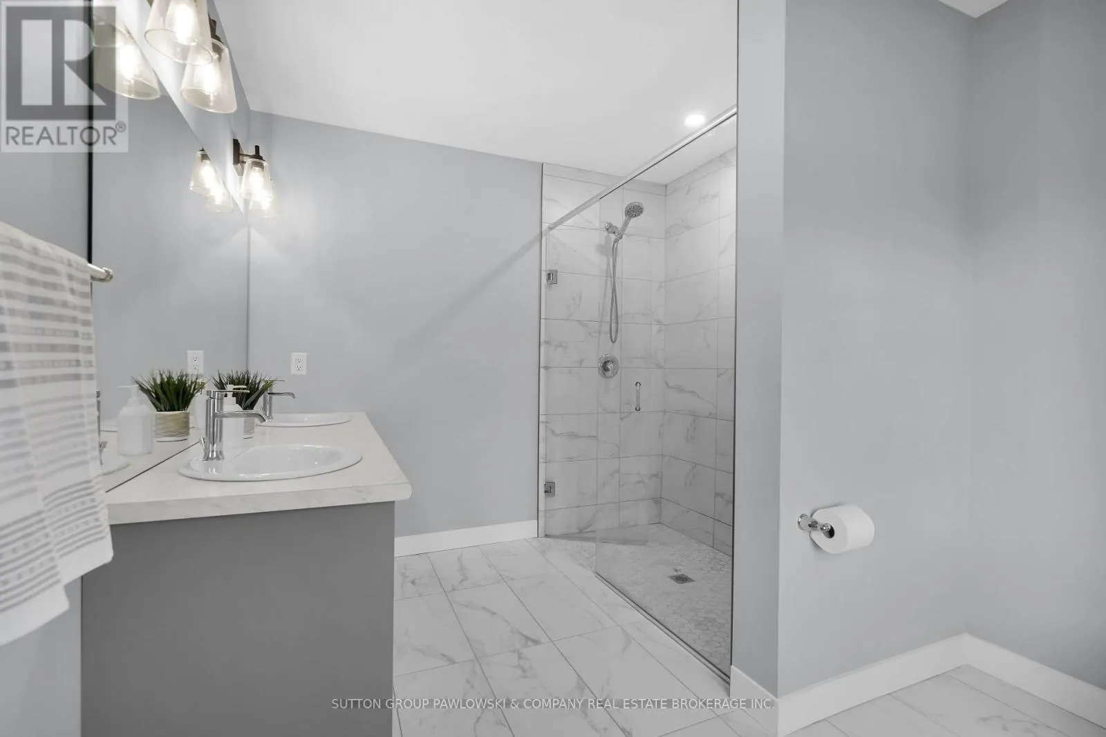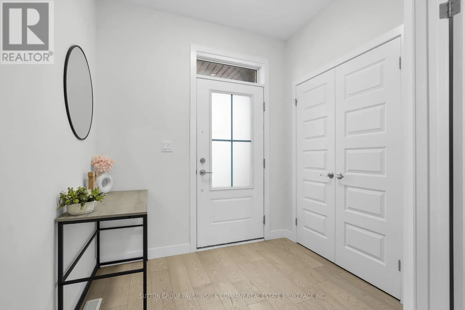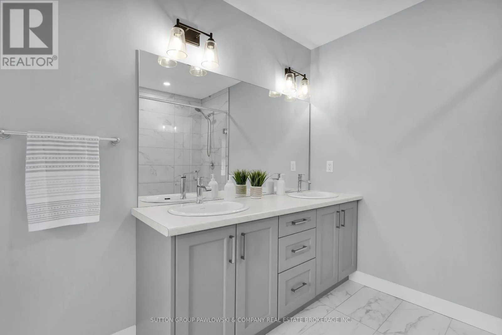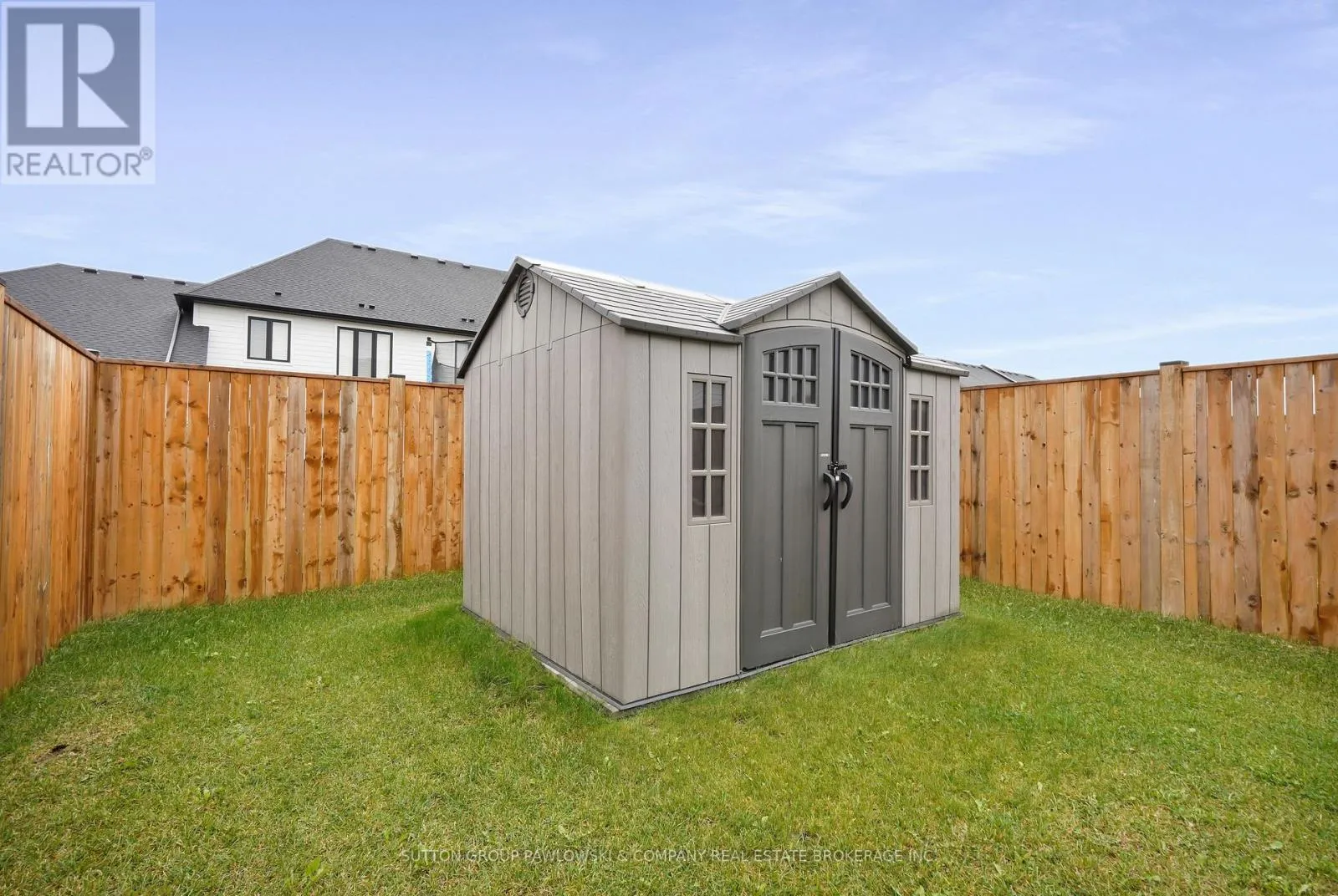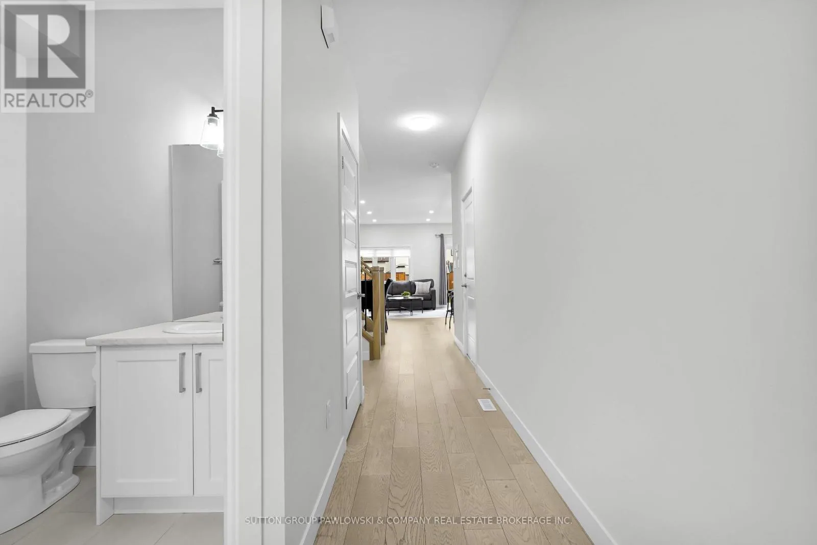 Cross Streets: Crestview Drive. ** Directions: . Welcome to this stylish freehold townhome in the highly sought-after Kilworth Heights West community. Offering approximately 1,745 sq ft of well-designed living space, this modern 2-storey home features 3 bedrooms, 2.5 bathrooms, and an attached single-car garage with inside entry - all with no condo fees. The bright, open-concept main floor is ideal for everyday living and entertaining, showcasing wide-plank flooring, a spacious living area with contemporary electric fireplace, and large windows that flood the space with natural light. The sleek kitchen is the heart of the home, complete with quartz countertops, modern cabinetry, stainless steel appliances, and a large island with seating. Patio doors lead to a private, fully fenced backyard with deck - perfect for outdoor dining and relaxation. Upstairs, the generous primary bedroom offers a walk-in closet and a beautifully finished ensuite with double vanity and glass shower. Two additional bedrooms, a full bathroom, and convenient upper-level laundry complete the second floor. The unfinished lower level provides excellent potential for future living space or storage. Located in a family-friendly neighbourhood close to parks, schools, shopping, and amenities, with quick access to Highways 401 and 402. A move-in-ready opportunity in one of Kilworth's most desirable communities. (id:27476)