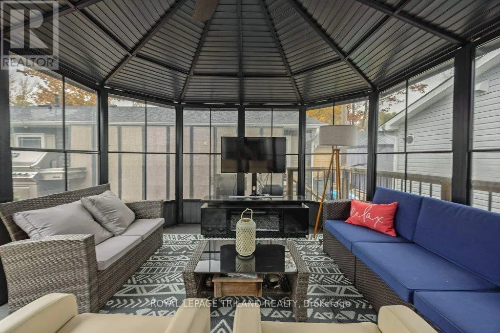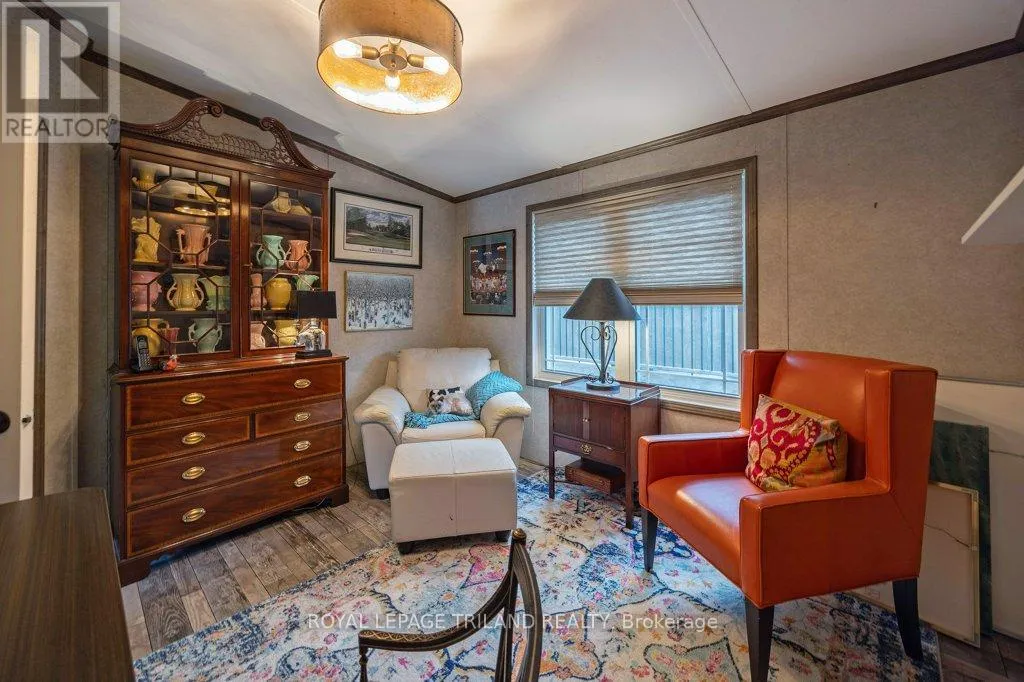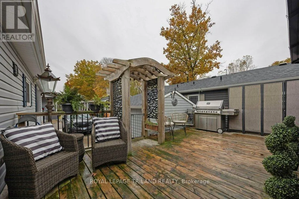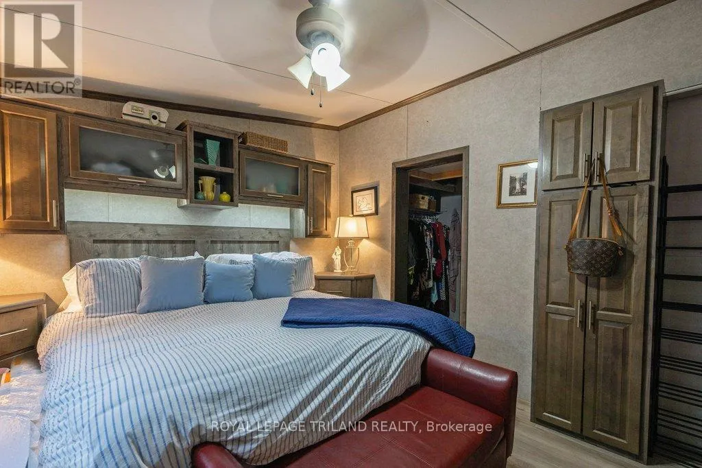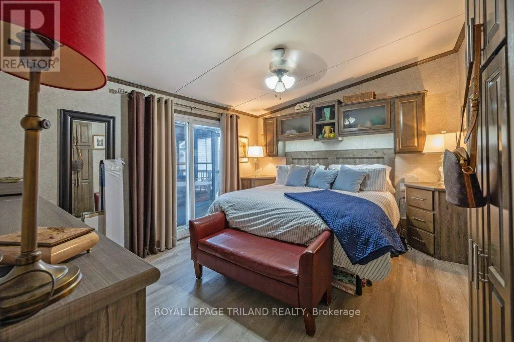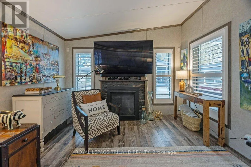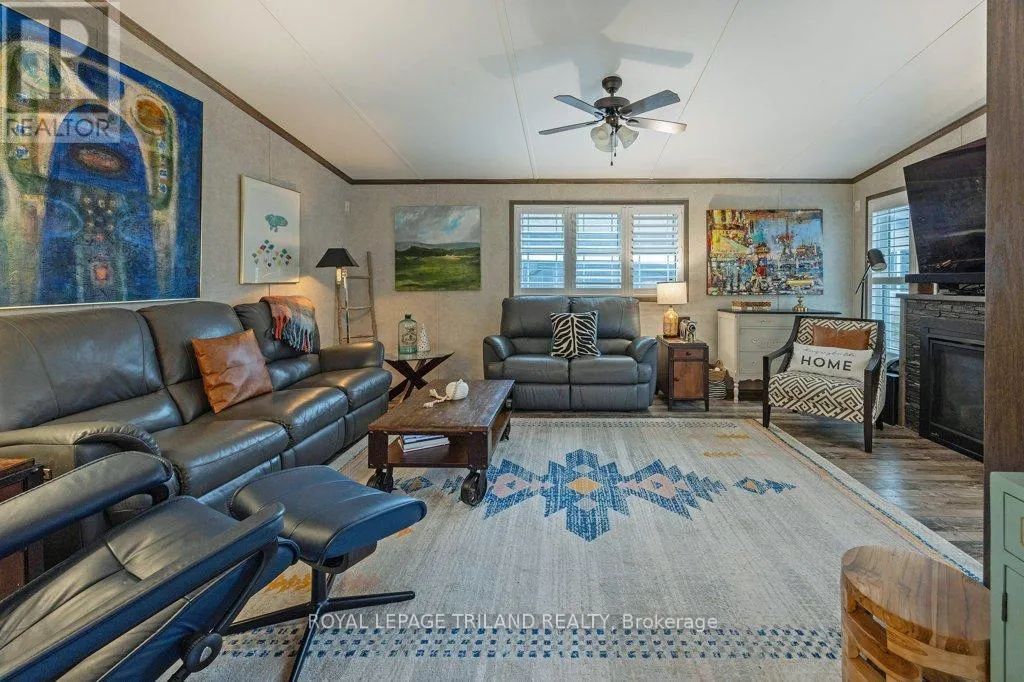 Cross Streets: AMIENS RD / GLENDON DRIVE. ** Directions: GLENDON DRIVE TO AMIENS RD. PARK LOCATED AT THE CORNER OF AMIENS RD AND OXBOW DRIVE. Welcome to unit #130 - this has to be one of the best units in the park! Original owners bought this unit in 2017. Foyer is spacious and bright with laminate wood flooring. Kitchen was just renno in 2024 and it is a dream space to work in. It's a mixture of white with black accents (farm sink). White subway tile backsplash and quartz countertops. Under cabinet lighting. Island. Appliances 2024. Eating area has patio doors leading to covered porch with propane fire table (included). Spacious great room has propane fireplace and lots of windows for natural light. Laundry has tons of storage. Dryer is propane. Primary is oversized with king bed and lots of built in furniture (included). Walk through closet and three piece en-suite with built ins. Second bedroom is awesome use of space with Murphy bed (included) that becomes a desk when not in use. Lots of room for a reading room or office when not entertaining guests. Main bath 4 piece with quartz countertop and backsplash (2024). The best part is the extra large deck (approx 400 square feet) with 3 season gazebo that is approx 12 ft x 17 ft. Adds so much space to unit and great to watch the game or a cozy summer movie. Electric fireplace and TV included on gazebo. Golf cart included. Propane BBQ included. Shed. Storage under the house. Double driveway. (id:27476)