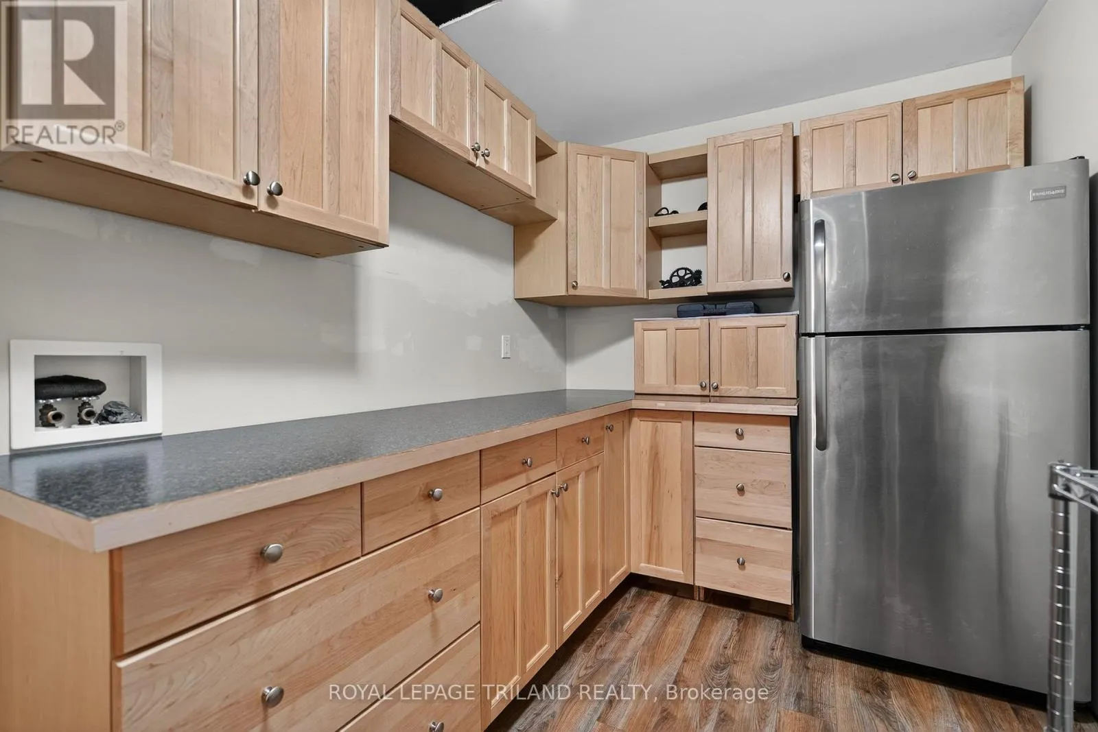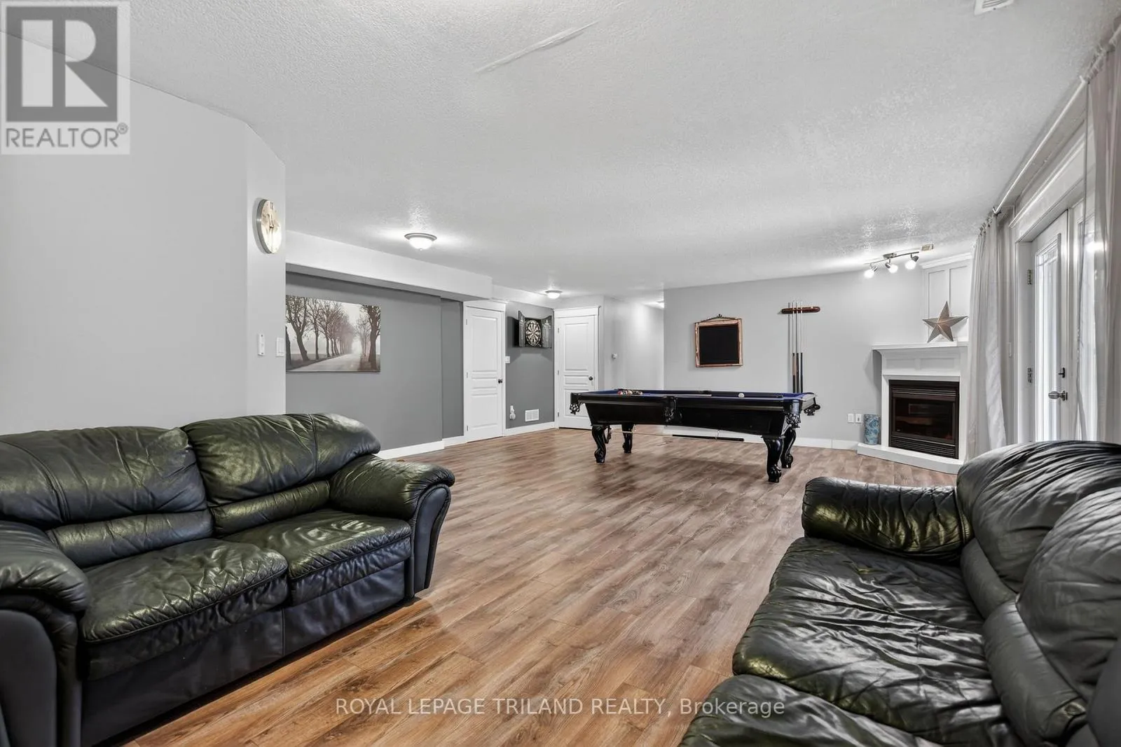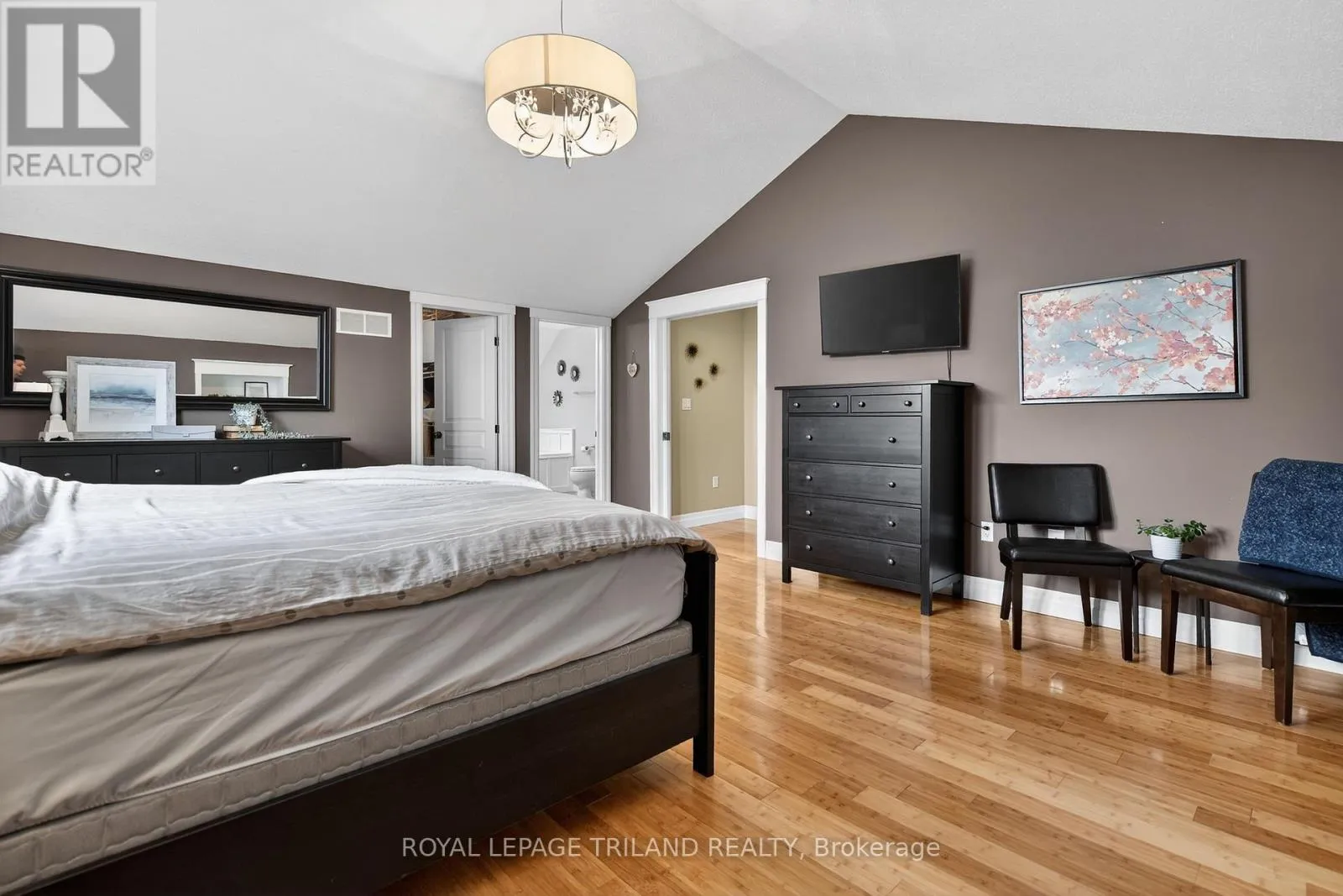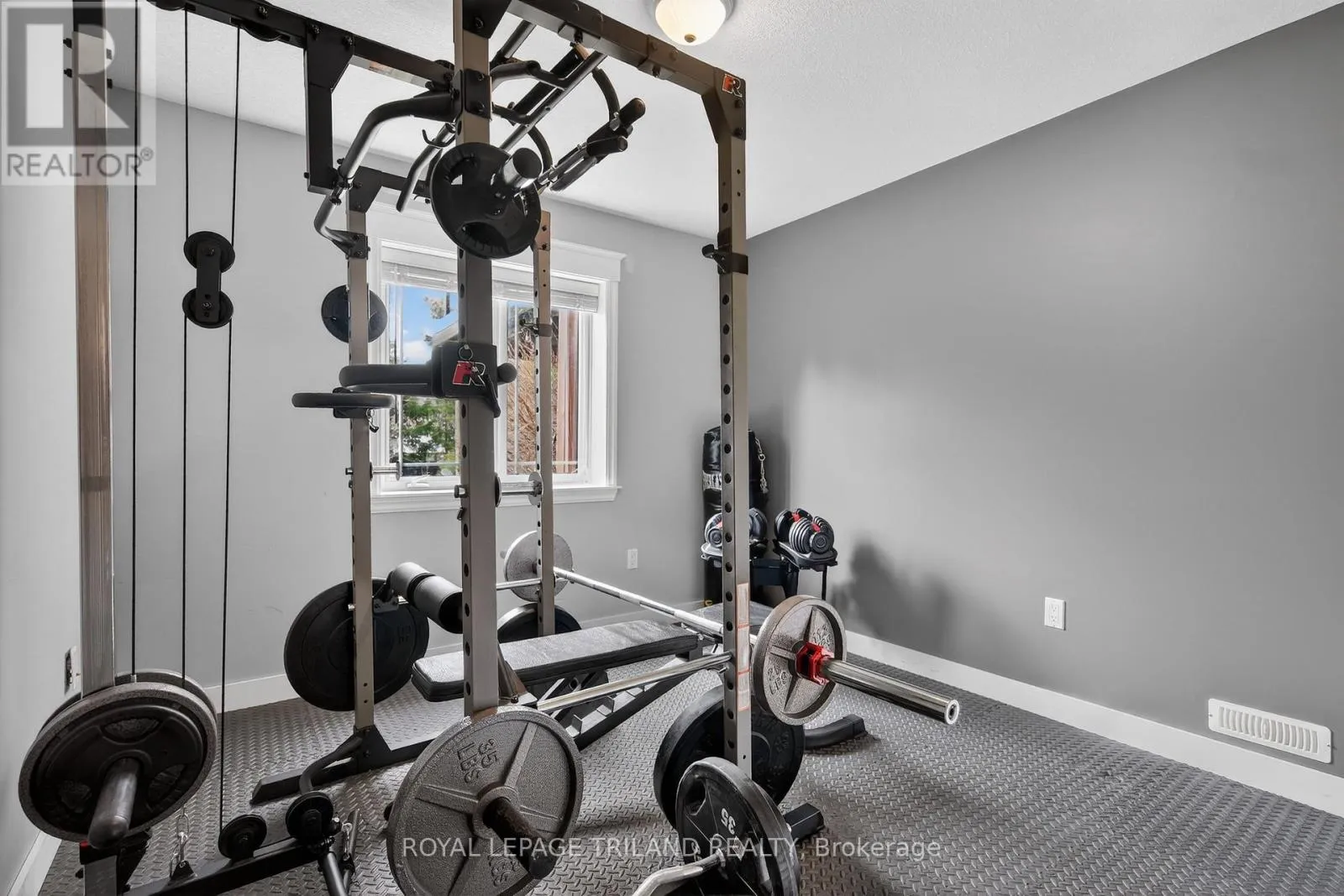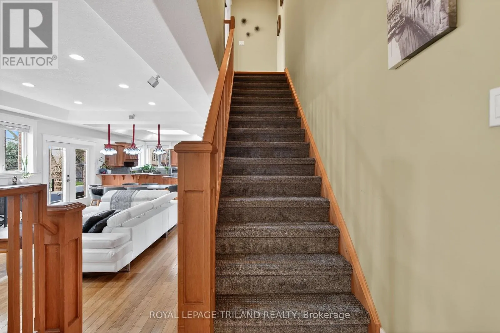 Cross Streets: EARLSCOURT AND BARON. ** Directions: TAKE OXFORD STREET WEST OVER BRIDGE TO KILWORTH IT TURNS INTO GLENDON THEN SOUTH ON KILWORTH PARK DRIVE AND THEN RIGHT ON BIRCHCREST AND RIGHT AGAIN ON EARLSCOURT SUBJECT IS ON LEFT HAND SIDE. Nestled on an outstanding 1/3-acre lot in desirable Kilworth, this beautifully landscaped property offers the perfect blend of privacy and outdoor enjoyment. Fully fenced and surrounded by mature trees, the backyard is a true retreat, complete with an Stone fire pit area-ideal for relaxing or entertaining. Built with quality and efficiency in mind, this home features durable ICF (insulated concrete form) construction. The striking exterior showcases a modern aesthetic with a sophisticated mix of stone, stucco, and brick. Step inside to a welcoming foyer that overlooks an expansive great room, creating an impressive first impression. The kitchen is both functional and inviting, highlighted by a skylight that fills the space with natural light, a large island, and an additional bank of cabinetry for ample storage. A dedicated office with soaring 14-foot ceilings adds a unique and inspiring workspace. This thoughtfully designed bungaloft layout places the primary bedroom retreat on the upper level, offering exceptional privacy and a luxurious feel. Enjoy vaulted ceilings and a spa-like 5-piece ensuite complete with a stand-up shower and separate tub. Main floor offers two well-appointed bedrooms-one featuring vaulted ceilings the other Coffered Ceilings with a shared spacious 5-piece bathroom between them. Convenient main floor laundry room is oversized. The fully finished lower level adds incredible versatility, featuring a walkout and direct access from the garage. This lower level space includes a second kitchen, games room, two additional bedrooms (one currently used as a gym), and a bonus cardio room-perfect for multi-generational living or accommodating a growing family.Located in the sought-after Kilworth within the Parkview School catchment, this home is close to golf courses, a two-pad arena and community centre, scenic trails, the river, and more. (id:27476)