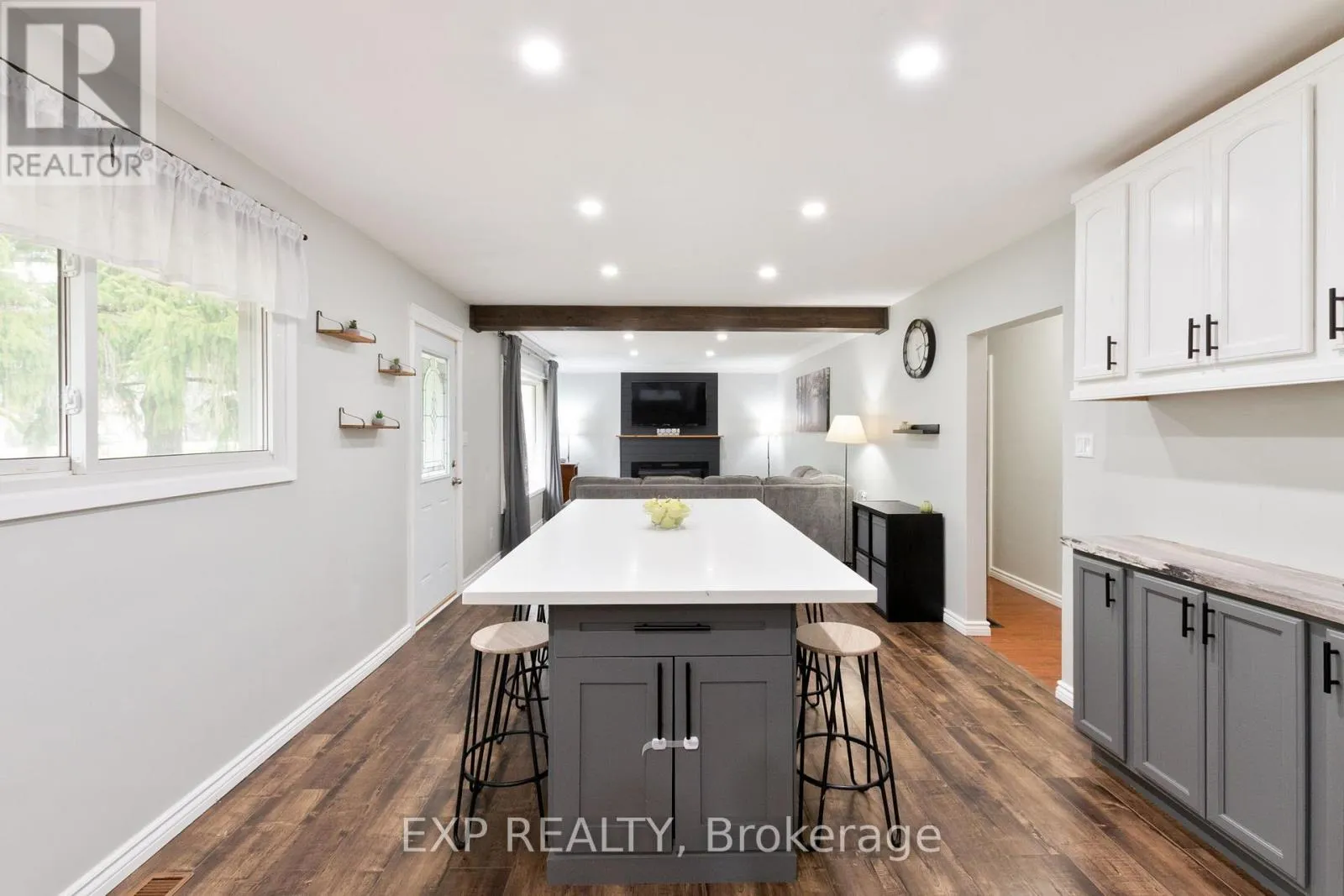 Cross Streets: Longwoods and Wilson. ** Directions: Coming off the 402 its the second house on the right driving into Delaware. Country Living with City Convenience! This 0.4-acre property backs onto scenic farmland and the Thames River, located just seconds from Hwy 402. Perfectly suited for families or hobbyists, this home features a bright, open-concept updated kitchen and living area with large bay windows.A functional breezeway connects the attached garage to the main floor, which offers 3 bedrooms and a 4-piece bath. The versatile finished lower level includes a gas fireplace, 3-piece bath, and plenty of space or extra bedrooms.The exterior is a dream for storage and projects, boasting parking for 8+ vehicles, a 60AMP RV hookup, and two workshops (one 15'x11' insulated with hydro). Enjoy the peace of the country with amenities just minutes away! (id:27476)