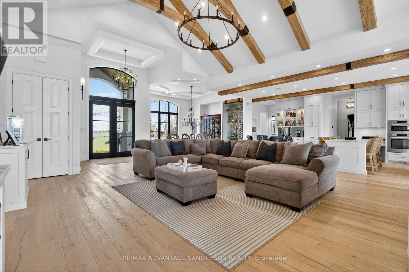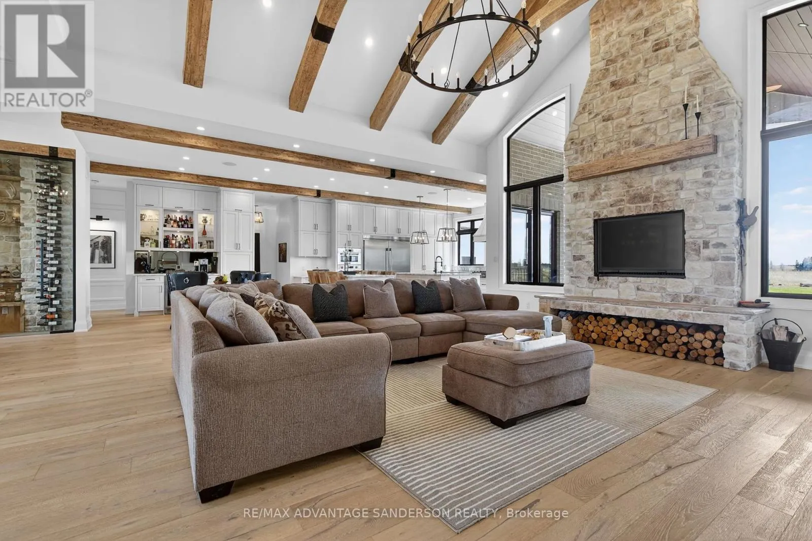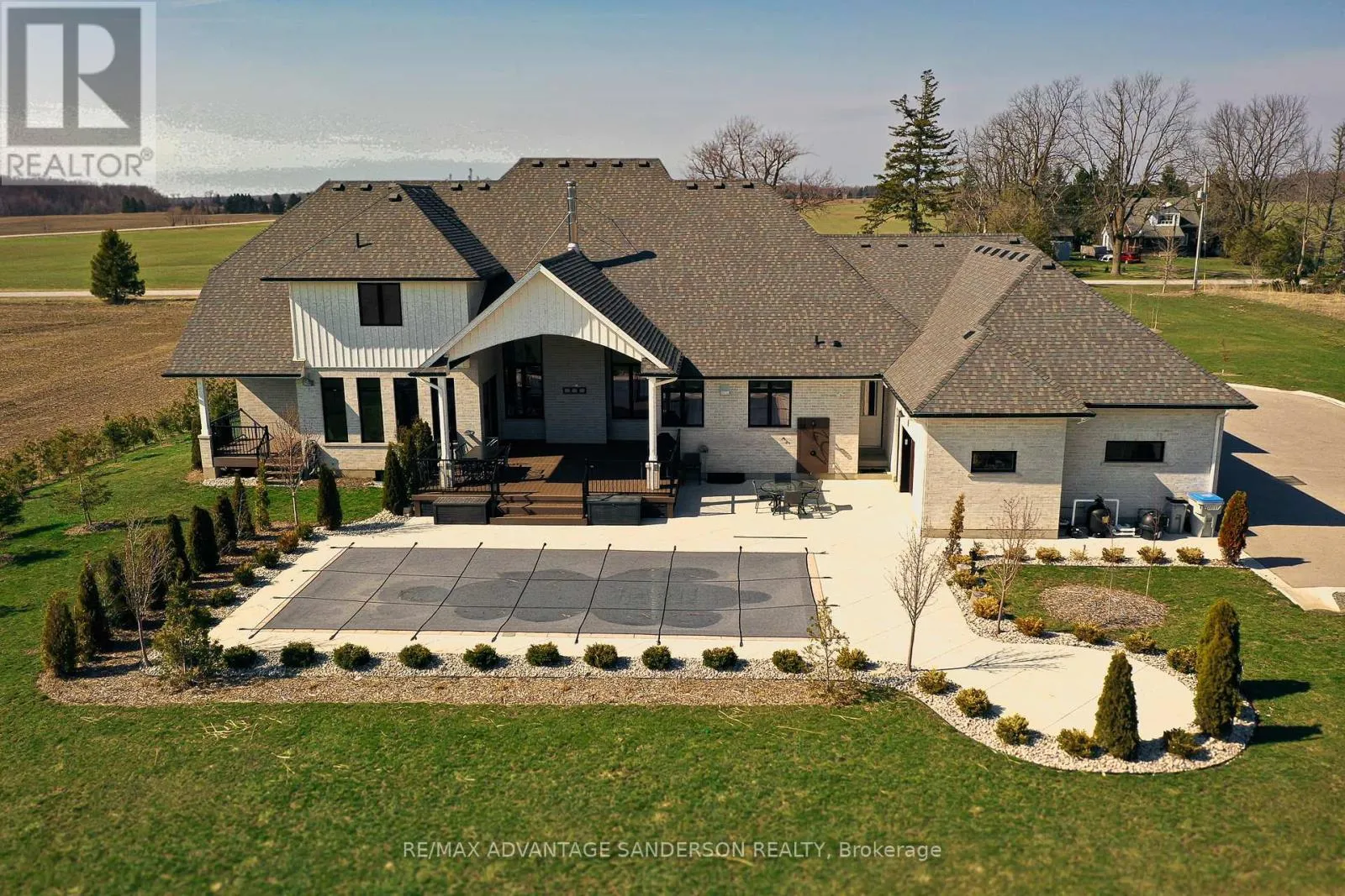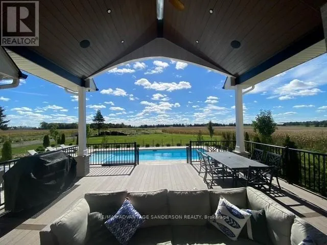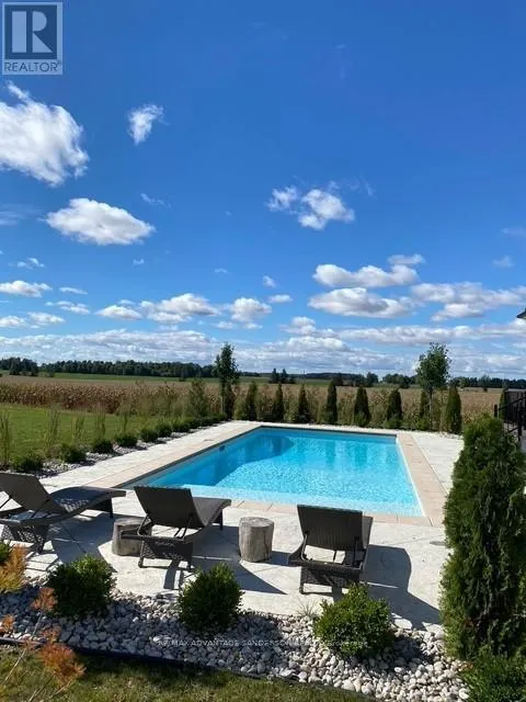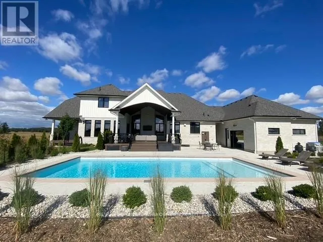 Cross Streets: Hyde Park Road. ** Directions: Hyde Park Road east on Thirteen Mile Road. Situated in a picturesque setting on almost 2 acres surrounded by farms and beautiful countryside just 10 min north of London on the outskirts of Ilderton awaits this 3 year old stunning bungaloft home with 4338 sf of living space above grade. Set well back from the road with a long asphalt drive an concrete gutters awaits your new home. Magnificent curb appeal! 4 car garage with epoxy floors, speaker system, kitchen with gas stove and smaller 5th rear access door. Inground saltwater swimming pool (sports pool) with stamped concrete surrounding. 2 rear covered decks with composite decking are perfect for entertaining! The interior of the home is stunning with a great room featuring cathedral ceilings with wood beams and floor to ceiling wood burning high end Napolean wood burning fireplace with built-in wood box. The main floor has beautifully engineered 8 inch wide hardwood. The chef's gourmet kitchen has custom built-in high appliances and features double islands and walk-in pantry. Coffee bar off the dining area and custom glass wine cabinet. You'll enjoy the cigar/sunroom at the rear overlooking beautiful countryside panoramic views. 5 bedrooms: Main floor master retreat with 5 piece ensuite with heated flooring plus 2 main floor bedrooms both with 3 piece ensuites. The 2 upper bedrooms share a 4 piece ensuite. The lower level is framed and electrical awaiting your finishing touches. Garage has in-floor heating roughed in. (id:27476)
