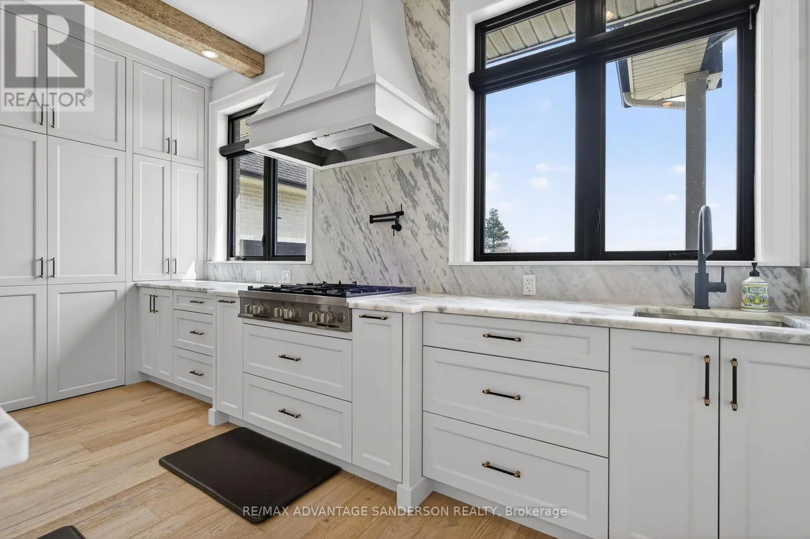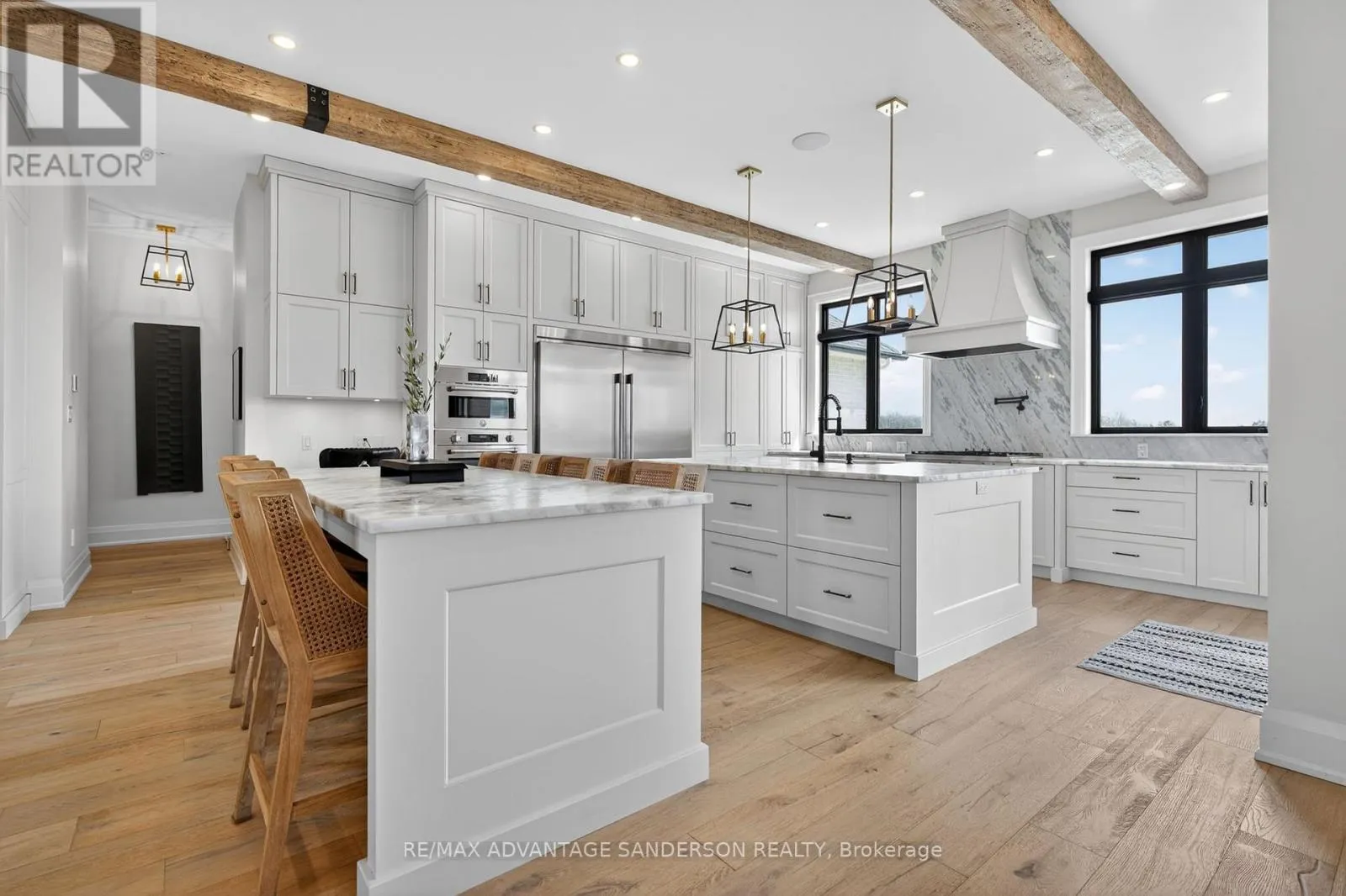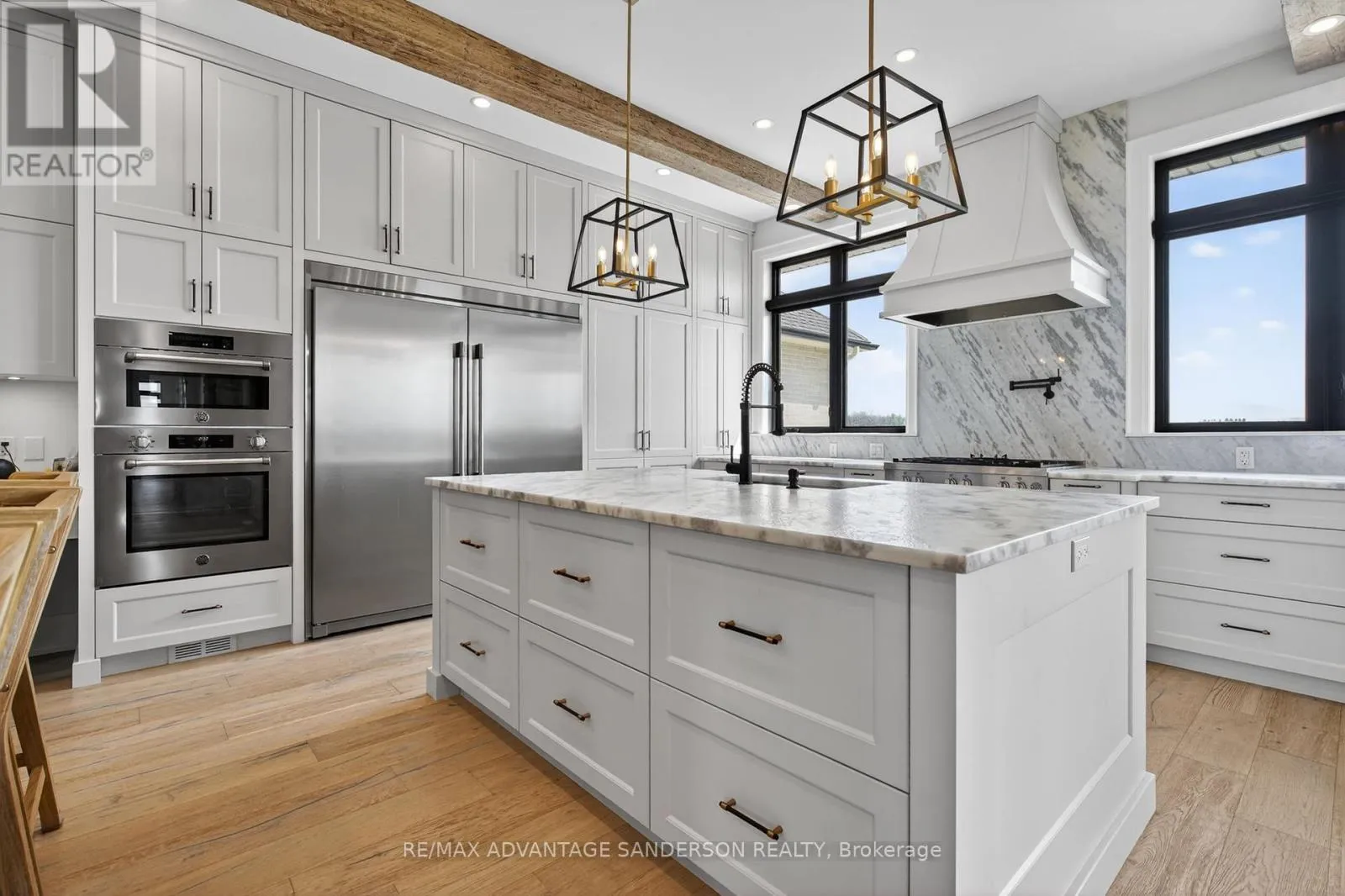 Cross Streets: Hyde Park Road. ** Directions: Hyde Park Road east on Thirteen Mile Road. Situated in a picturesque setting on almost 2 acres surrounded by farms and beautiful countryside just 10 min north of London on the outskirts of Ilderton awaits this 3 year old stunning bungaloft home with 4338 sf of living space above grade. Set well back from the road with a long asphalt drive an concrete gutters awaits your new home. Magnificent curb appeal! 4 car garage with epoxy floors, speaker system, kitchen with gas stove and smaller 5th rear access door. Inground saltwater swimming pool (sports pool) with stamped concrete surrounding. 2 rear covered decks with composite decking are perfect for entertaining! The interior of the home is stunning with a great room featuring cathedral ceilings with wood beams and floor to ceiling wood burning high end Napolean wood burning fireplace with built-in wood box. The main floor has beautifully engineered 8 inch wide hardwood. The chef's gourmet kitchen has custom built-in high appliances and features double islands and walk-in pantry. Coffee bar off the dining area and custom glass wine cabinet. You'll enjoy the cigar/sunroom at the rear overlooking beautiful countryside panoramic views. 5 bedrooms: Main floor master retreat with 5 piece ensuite with heated flooring plus 2 main floor bedrooms both with 3 piece ensuites. The 2 upper bedrooms share a 4 piece ensuite. The lower level is framed and electrical awaiting your finishing touches. Garage has in-floor heating roughed in. (id:27476)