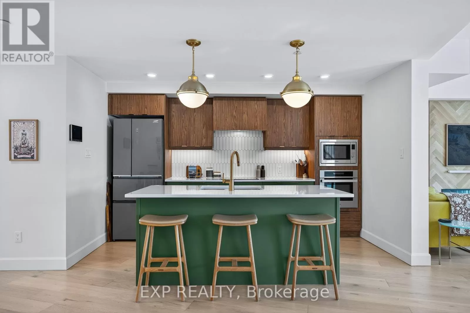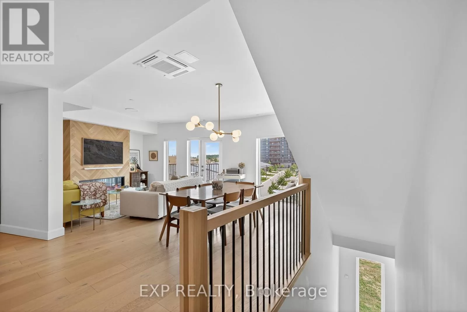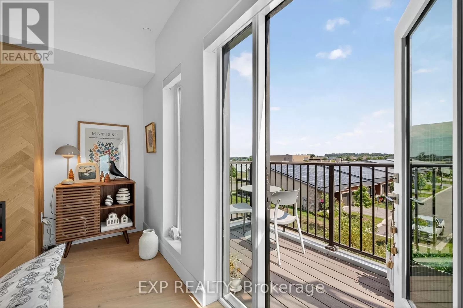 Cross Streets: Oxford?Westdel Bourne. ** Directions: Oxford to Westdel Bourne to Lumen. Nestled on the west side of the city in lovely Riverbend is this exquisite 3-bed, 2.5 bath condo in a London's premier net zero community. Here, they have seamlessly blended modern luxury with sustainable living in this cutting edge development. Perfectly situated within walking distance of some of the best nature trails along the river in the entire area, this home offers a serene escape while remaining close to urban conveniences, creating a nice balance of accessibility and modern flare. Step inside to find expansive windows that flood the space with loads of natural light, illuminating the San Marino Canyon hardwood floors that flow effortlessly through the main living areas, bedrooms and hallways. An electric fireplace sits in the living area, wrapped in hardwood, herringbone style It is definitely the focal point of the area, and it should be. The gourmet kitchen is an absolute masterpiece with gorgeous countertops, specialized cabinets and a beautiful Moen align brushed gold faucet that adds a touch of elegance, flanked by Panasonic energy efficient appliances. A large island doubles as a breakfast bar and just off the kitchen is where the dedicated home office space is perfect for those who might still be working from home. Heading upstairs, the primary bedroom is like a private retreat with a spacious walk-in closet and a luxurious en suite featuring all the extras, with great views via loads of windows. Sustainability is definitely at the core of this home, with a smart home system, included 1.5 GBPS fibre Internet, and construction using eco-friendly, natural materials. A unique parking tower valued at $30K, includes electric vehicle charging, complemented by a Tesla car share option. This unit also includes two storage units, permanently tied to the unit offer ample space. Blackout blinds in the bedrooms and 3% screen blinds elsewhere enhance your comfort and loaded with amenities make this an easy place to call home. (id:27476)