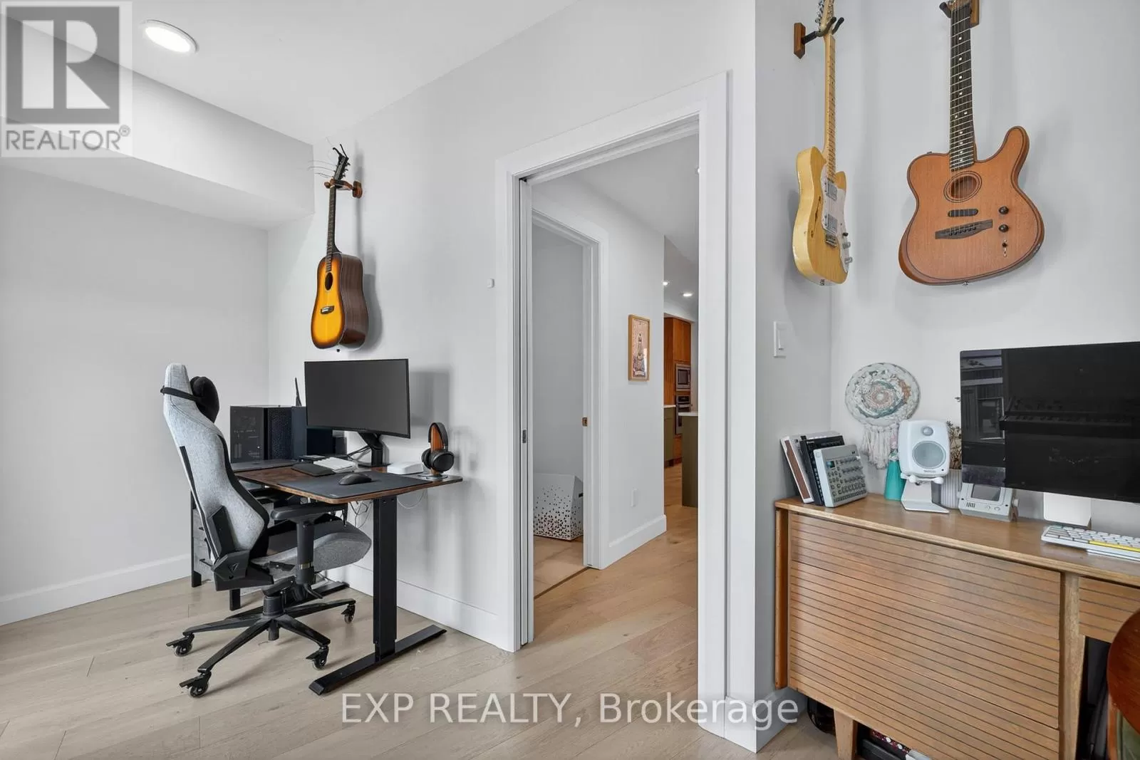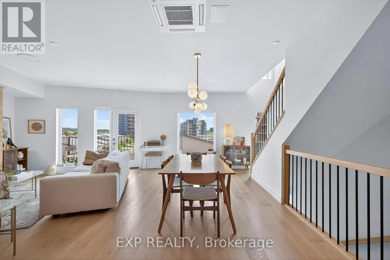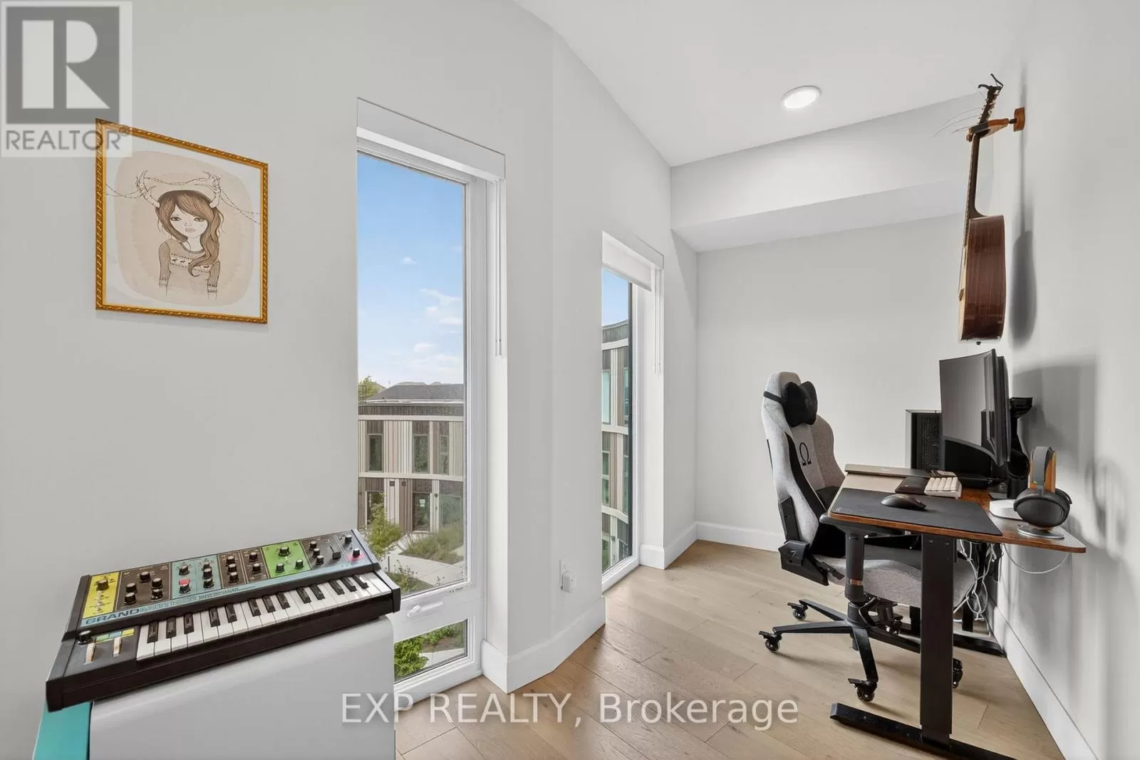 Cross Streets: Oxford?Westdel Bourne. ** Directions: Oxford to Westdel Bourne to Lumen. Nestled on the west side of the city in lovely Riverbend is this exquisite 3-bed, 2.5 bath condo in a London's premier net zero community. Here, they have seamlessly blended modern luxury with sustainable living in this cutting edge development. Perfectly situated within walking distance of some of the best nature trails along the river in the entire area, this home offers a serene escape while remaining close to urban conveniences, creating a nice balance of accessibility and modern flare. Step inside to find expansive windows that flood the space with loads of natural light, illuminating the San Marino Canyon hardwood floors that flow effortlessly through the main living areas, bedrooms and hallways. An electric fireplace sits in the living area, wrapped in hardwood, herringbone style It is definitely the focal point of the area, and it should be. The gourmet kitchen is an absolute masterpiece with gorgeous countertops, specialized cabinets and a beautiful Moen align brushed gold faucet that adds a touch of elegance, flanked by Panasonic energy efficient appliances. A large island doubles as a breakfast bar and just off the kitchen is where the dedicated home office space is perfect for those who might still be working from home. Heading upstairs, the primary bedroom is like a private retreat with a spacious walk-in closet and a luxurious en suite featuring all the extras, with great views via loads of windows. Sustainability is definitely at the core of this home, with a smart home system, included 1.5 GBPS fibre Internet, and construction using eco-friendly, natural materials. A unique parking tower valued at $30K, includes electric vehicle charging, complemented by a Tesla car share option. This unit also includes two storage units, permanently tied to the unit offer ample space. Blackout blinds in the bedrooms and 3% screen blinds elsewhere enhance your comfort and loaded with amenities make this an easy place to call home. (id:27476)