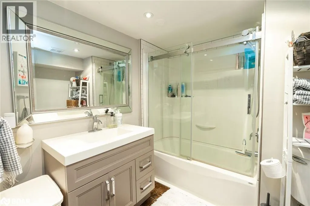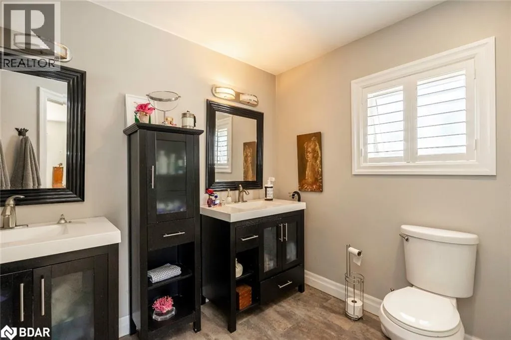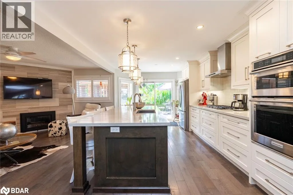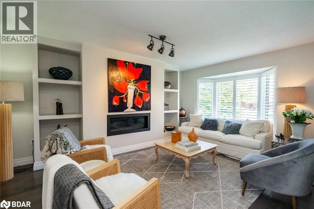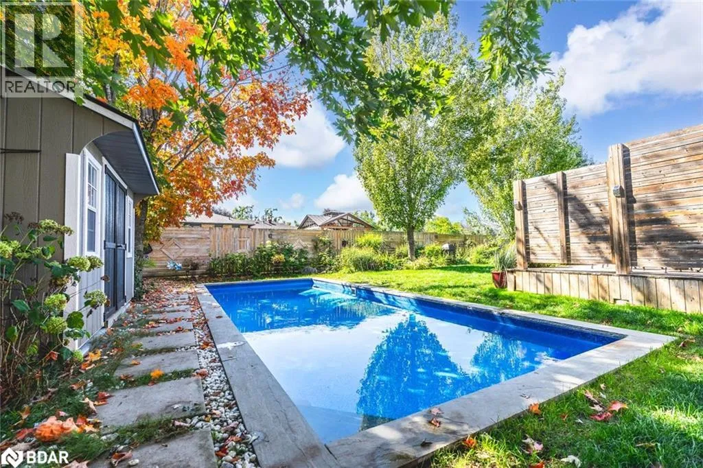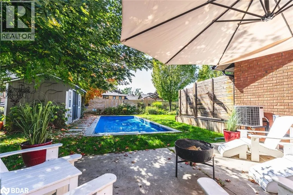 Bayfield St/Glen Echo Dr/Heatherwood Dr/Lilac Ln IMPRESSIVE MIDHURST BUNGALOW WITH DESIGNER FINISHES & RESORT-STYLE YARD WITH INGROUND SALTWATER POOL! Set on an impressive 107 x 146 ft lot in Midhurst, this all-brick bungalow delivers sophistication at every turn, starting with bold black accents, manicured landscaping, a lawn sprinkler system, and parking for 4 in the driveway plus 2 in the attached double garage. The fenced backyard is a true showpiece with a newer saltwater pool, expansive deck with glass railing and privacy wall, spacious wood gazebo, patio, and a shed. Elegance takes centre stage with California shutters, pot lights, modern fixtures, and a refined neutral palette. At the heart of the home, the kitchen impresses with timeless white cabinetry contrasted by a dark island, quartz counters, subway tile backsplash, high-end appliances, including some KitchenAid, microwave/wall oven combo, gas cooktop, dual stainless sink, and designer pendant lighting, complete with a walkout to the backyard. A formal dining room with a built-in sideboard and a KitchenAid beverage fridge sets the stage for gatherings, while a family room with a gas fireplace and a living room with its own fireplace, custom built-ins, and a bay window add warmth and grandeur. The primary suite is an indulgent escape with a walkout to the backyard, a walk-in closet, and a spa-like ensuite featuring dual vanities and a glass shower. The finished basement expands the lifestyle with a spacious rec room, two bedrooms, and a full bath. Less than 5 minutes to Barrieâs urban amenities, this home is surrounded by top-rated schools, parks, trails, green spaces, shops, restaurants, and everyday essentials, with quick Highway 400 access to the GTA and cottage country. An elegant lifestyle in a coveted Midhurst setting awaits at this #HomeToStay. (id:27476)