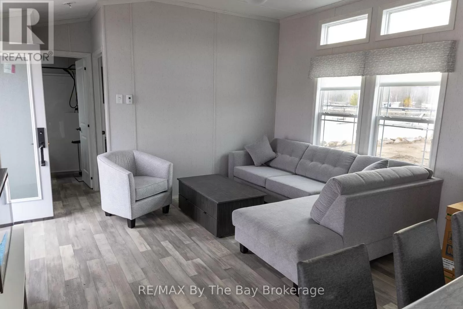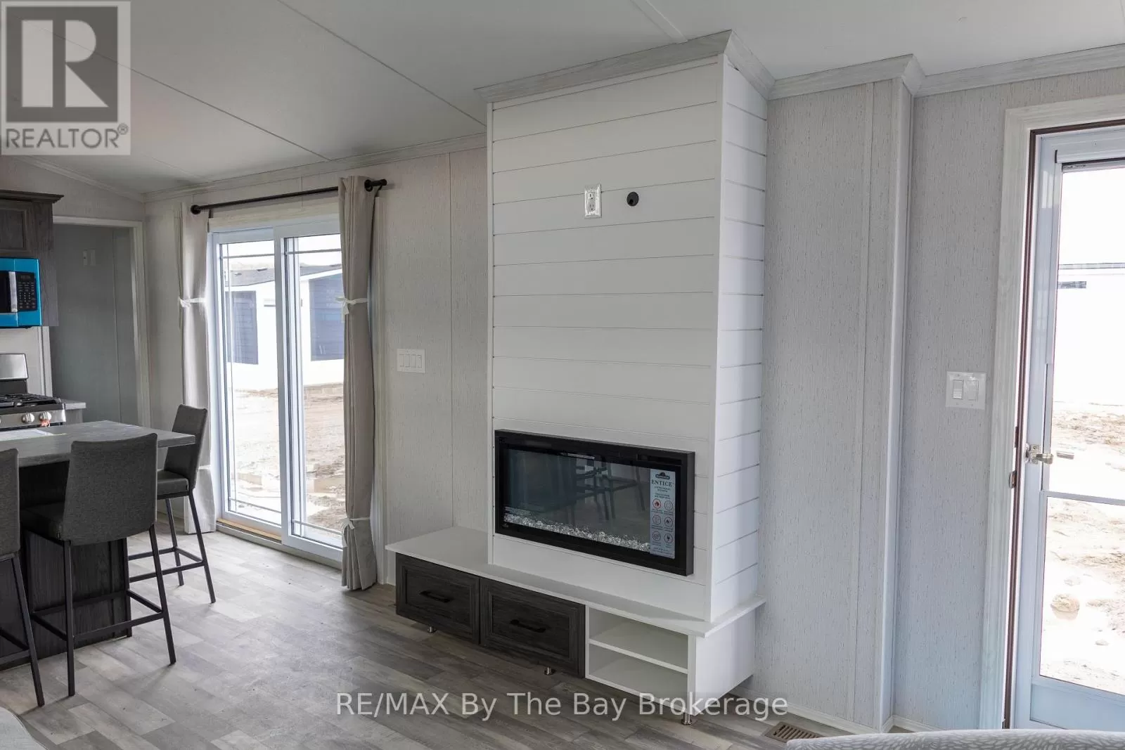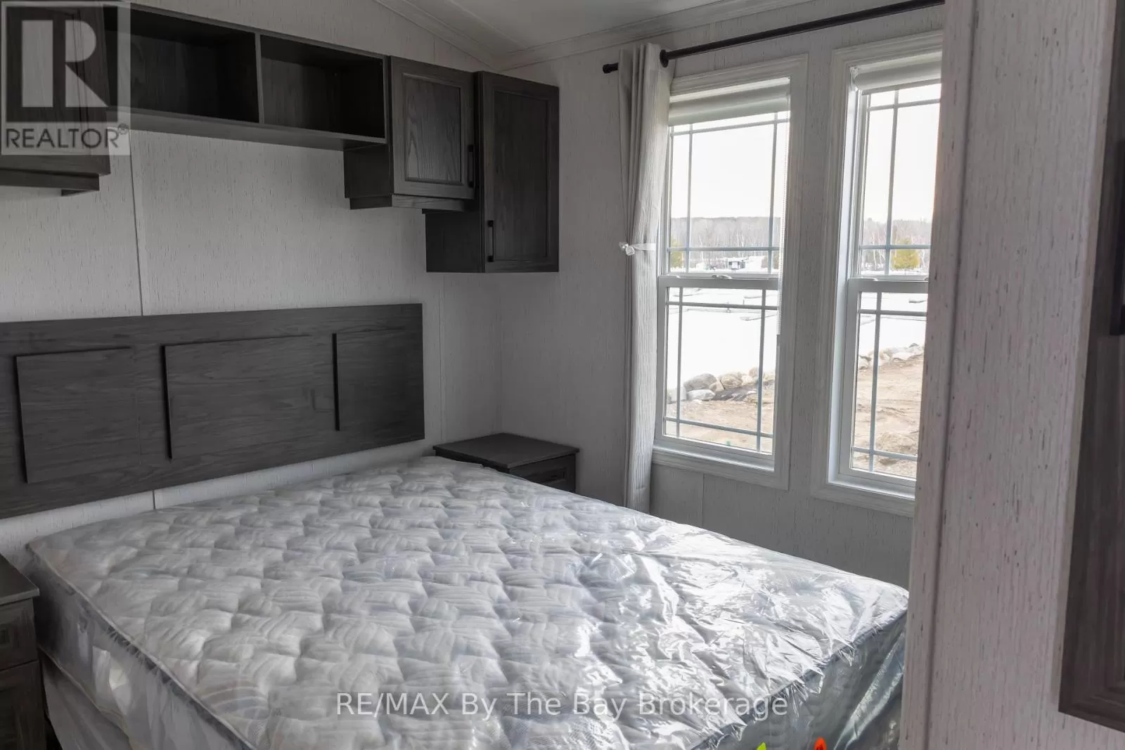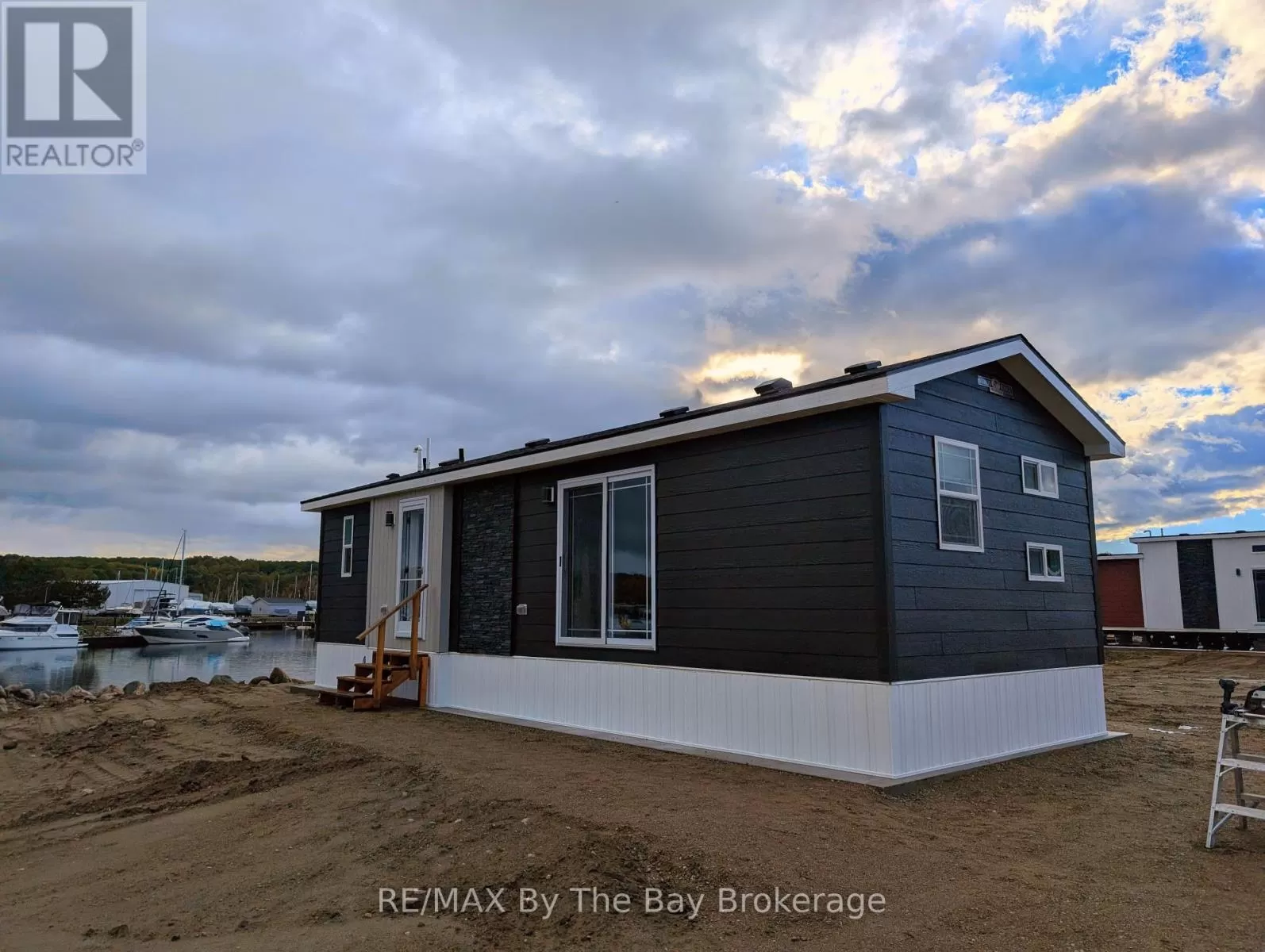 Cross Streets: HWY 12 TO OGDENS BEACH ROAD. ** Directions: HWY 12 TO OGDENS BEACH ROAD TO WYE HERITAGE MARINA RESORT. Nestled on an interior waterfront lot with stunning views of the marina harbour, this charming 3-bedroom, 1-bathroom Wanakita Model offers an affordable opportunity for those looking to embrace the relaxed, resort lifestyle on Georgian Bay. At 540 sq ft, this cozy cottage is designed for comfort and functionality, making it the perfect retreat for families or small groups. Priced under $200,000, its an excellent choice for those eager to start enjoying the 2025 cottage season. This fully-furnished cottage is move-in ready and includes everything you need to settle in and unwind. The master bedroom features a queen pillow-top bed with a headboard and bedding set, while the second bedroom is equipped with a double pillow-top bed, headboard, frame, and bedding. The third bedroom includes a set of bunk beds ideal for kids or guests. The living area offers a queen sectional sofa with a hide-a-bed, along with a tub chair and lift-up coffee table for added convenience. Additionally, there are four bar stools and an end table, ensuring a comfortable space for all to gather. Central air conditioning keeps things cool during warm summer days. Situated in the heart of Wye Heritage Marine Resort, this cottage allows you to take full advantage of the resort's fantastic amenities, including heated swimming pools, sports courts (pickleball, tennis, basketball), a sandy beach, a playground, and a marina with guaranteed boat slip access for cottage owners. Plus, you'll enjoy a 20% discount on slip fees, making it the perfect base for all your boating adventures. This affordable cottage is available for immediate occupancy, so dont miss your chance to own a piece of waterfront paradise and experience the best of cottage life at Wye Heritage Marine Resort. (id:27476)