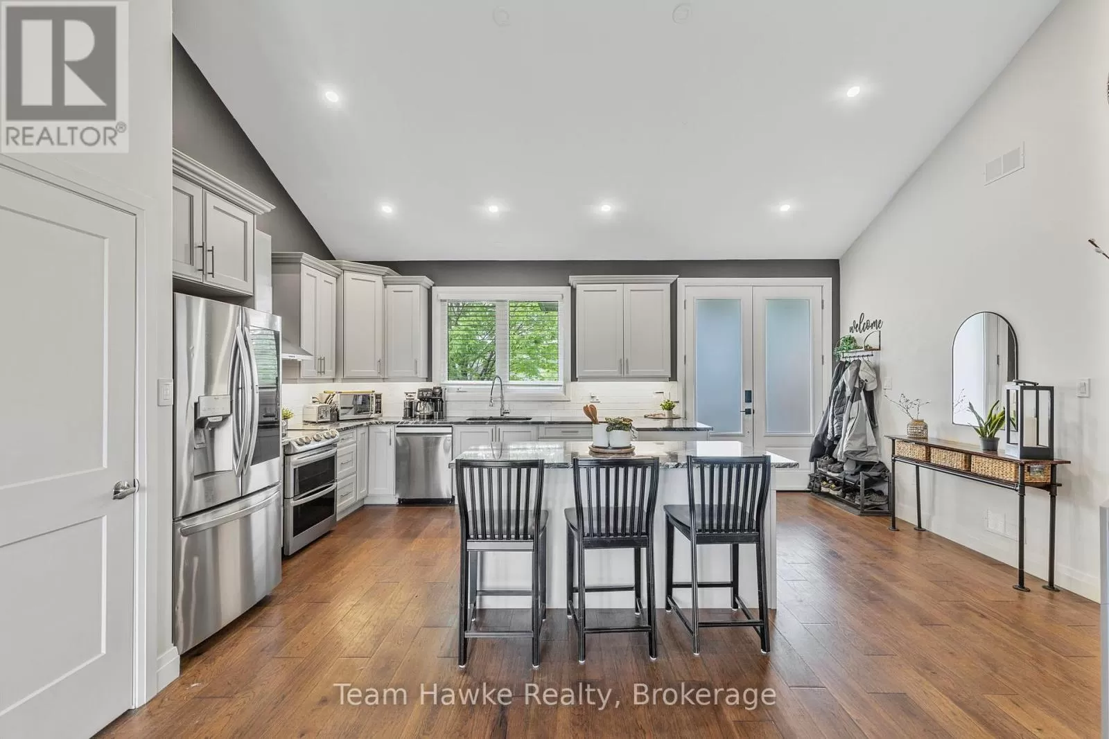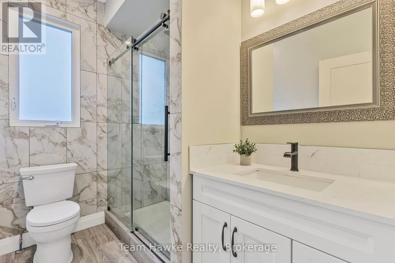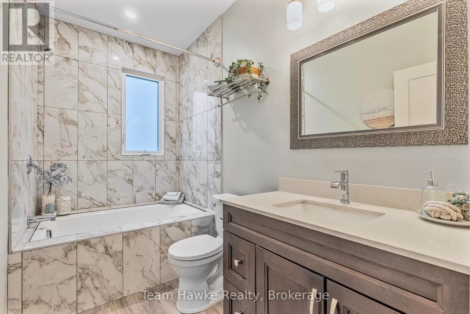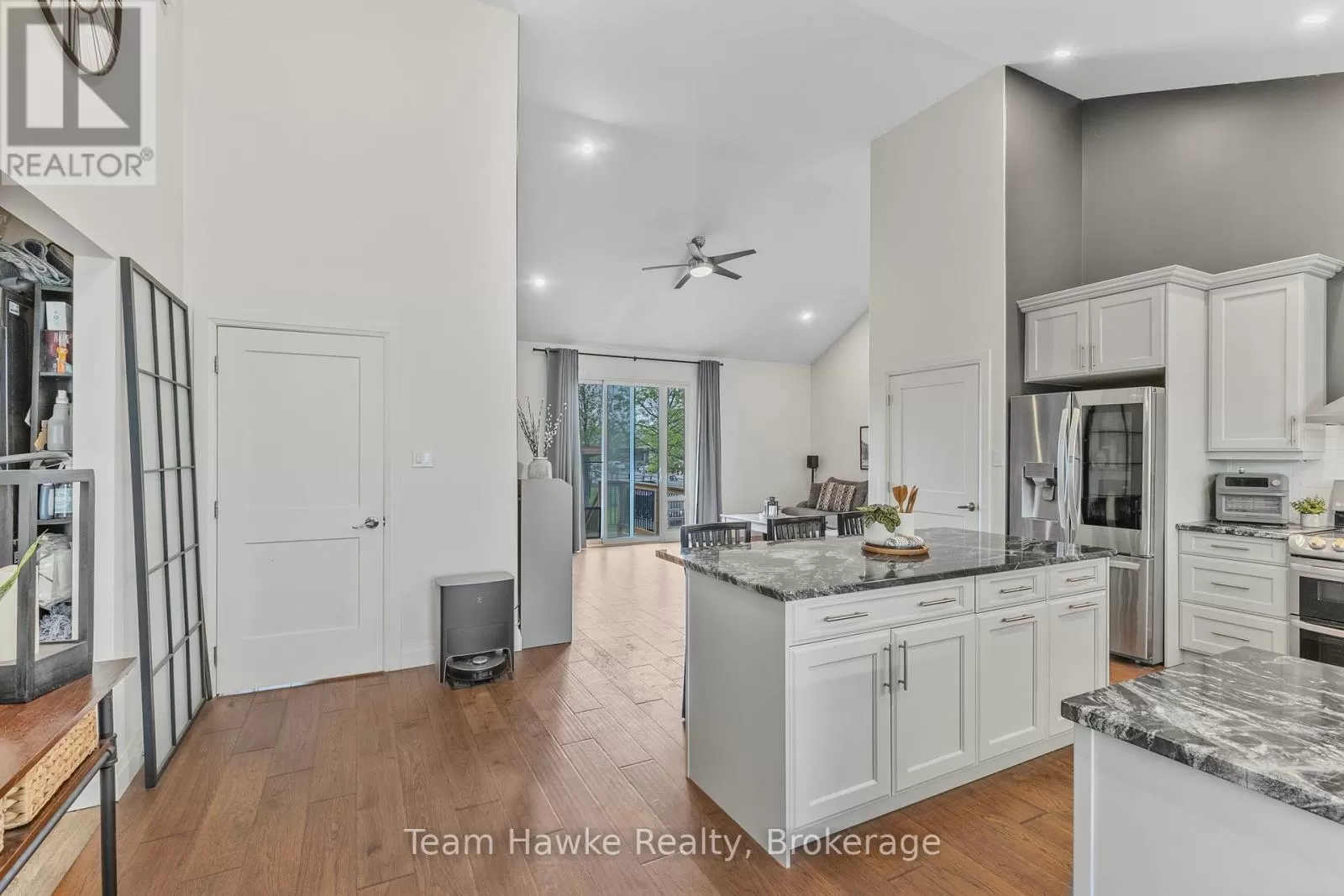 Hwy 12 - William St Built in 2021, this home offers a stylish, functional layout with quality finishes throughout, ideal for modern living! Step inside to find hardwood floors and a spacious open-concept design with soaring cathedral ceilings that give the main living areas an airy, welcoming feel. The kitchen is well-equipped with stainless steel appliances, a large granite island and plenty of cupboard space, giving you the ultimate prep space, and made for entertaining. The main floor includes two comfortable bedrooms, including a primary with its own private 3-piece ensuite and wall to wall closet. The second bathroom on this level stands out, featuring a deep soaker tub and elegant tile with creamy tones and rich, rust-coloured veining, paired with quartz counters, these features all bring a spa-like touch to the space. Youll also find the convenience of main floor laundry tucked neatly into the layout. Off the living room, walk out to your back deck and enjoy a fully fenced backyard that feels private and peaceful, filled with mature trees and only one direct residential neighbour. The finished basement expands your living space with a generous rec room, a third bedroom, and a full four-piece bathroom. Theres also a kitchen area ready for appliances, ideal for extended family, guests, or in-law potential. If youre looking for a move-in-ready home with flexible space, thoughtful design, and privacy, this one is well worth a look! (id:27476)