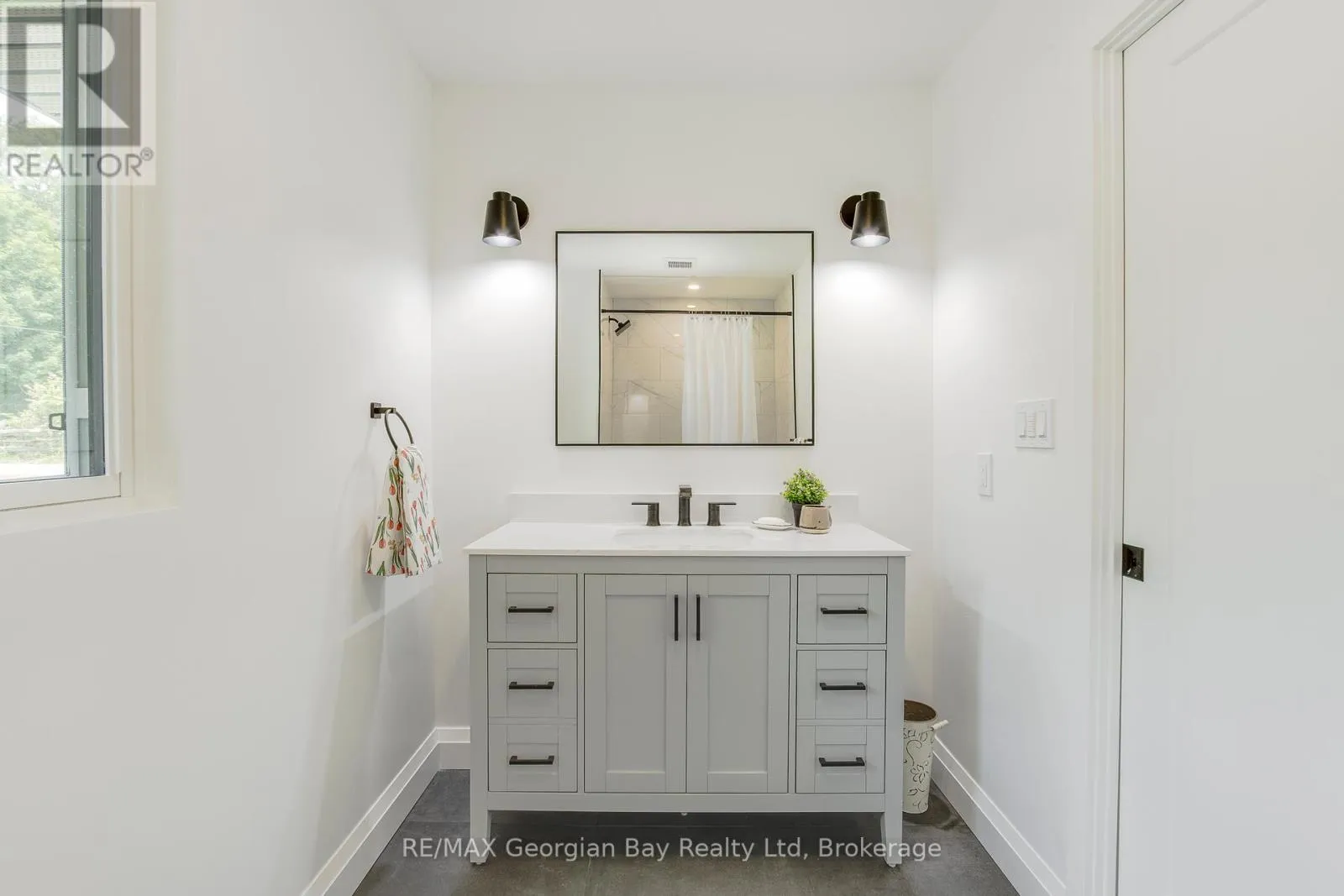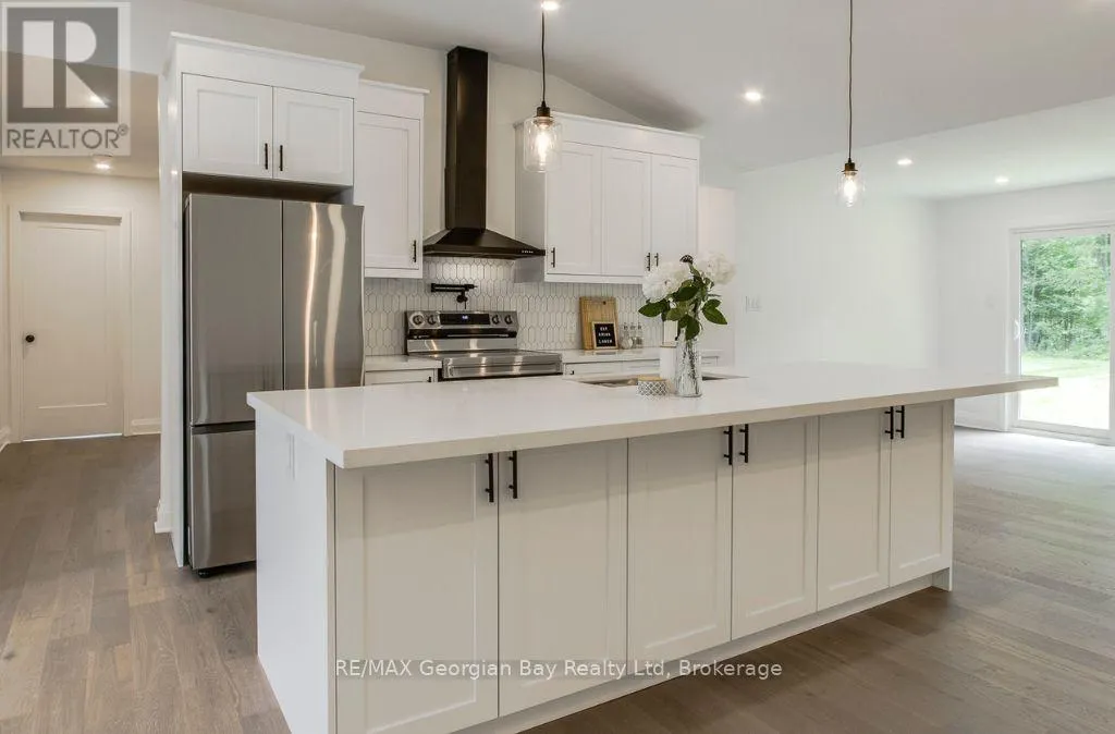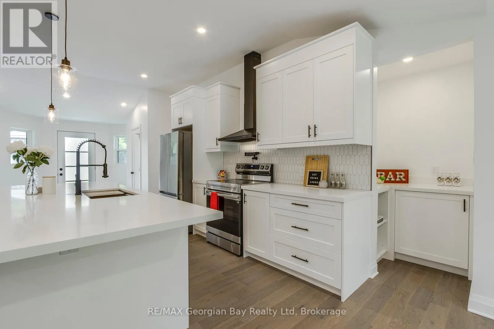 Cross Streets: Sunnyside Drive & Everton Road. ** Directions: Highway 400, to County Road 93 to Midland, right on Hugel Avenue, left on Fifth Street which changes to Harbourview Drive, left on Sunnyside Drive, left on Everton Road, to sign on left. Come visit this beautifully renovated bungalow on a generous property of over 1/2 an acre in Sunnyside, near downtown amenities, marinas, trails and the sparkling shores of Georgian Bay. This stunning 3 bedroom, 2 bathroom home offers the perfect blend of modern living, natural charm and sophistication. Nestled on an expansive lot backing onto trees, this home provides a peaceful retreat just minutes from the heart of downtown Midland for your shopping and dining pleasure. Step inside to discover a thoughtfully curated interior featuring stylish finishes, open-concept living spaces, and an abundance of natural light. Whether you're relaxing in the living room, preparing meals in this gorgeous kitchen, or entertaining friends and family, every corner of this home has been designed with comfort and elegance in mind. Outside, enjoy the tranquility of your spacious yard ideal for gardening, playing, entertaining, or simply soaking in the serene surroundings with your favourite summertime beverage in hand. Gain peace of mind from all the improved elements of this home, new in 2024-2025 including windows and doors, kitchen and bathroom fixtures, appliances, water heater, engineered hardwood flooring and tile, septic system, exterior cladding, shingles and much more. Here is your chance to own this move-in-ready gem, surrounded in nature near Georgian Bay. Some images are virtually staged and one exterior image includes a detached garage rendering, for concept only. Zoning allows for an accessory building, accessory dwelling unit, etc. Buyers to make their own inquiries regarding potential uses for the property to ensure it meets their needs. Schedule your personal visit today. (id:27476)