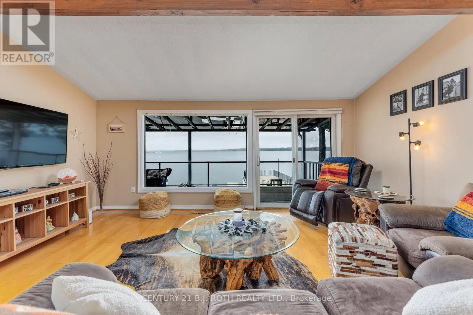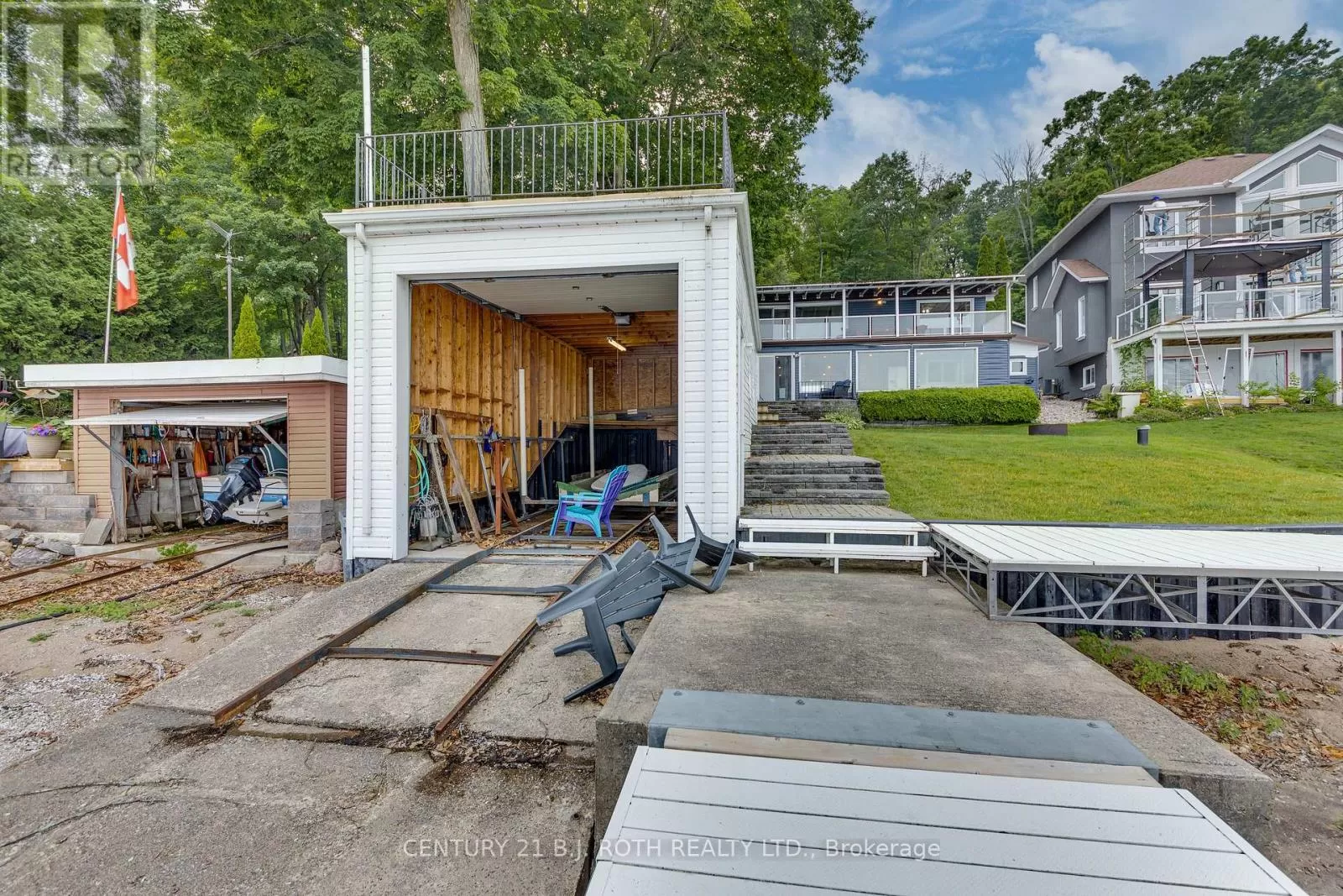 Cross Streets: Midland Point/Curry Rd/Pheasant. ** Directions: Midland Point Rd to Curry Rd to 409 Pheasant Lane. Can you imagine waking up each day to the serene beauty and adventure that Georgian Bay has to offer? This rare waterfront gem sits on a quiet lane and offers the perfect blend of year-round comfort and cottage-style charm. Nestled on a 51 x 223-foot lot with crystal-clear waters and a sandy-bottom shoreline, this 4-season home is your gateway to a relaxed yet active lifestyle.Enjoy over 2,000 sq.ft. of living space designed to maximize the panoramic bay views. The open-concept main level features a wall of windows that flood the living and dining areas with natural light and frame the stunning water vistas. Step out onto the deck to savour your morning coffee or unwind with evening drinks while soaking in the sunset.With 3 bedrooms and 2 full baths, there is loads of room for family and guests. The bright, walk-out lower level offers nearly 1,100 sq.ft. of flexible space including a second kitchen, cozy family room with gas fireplace, 2 additional bedrooms, bathroom, and laundry; perfect for the in-laws, guests, or entertaining. A rare boathouse with marine railway and steel break wall is already in place and a valuable asset in this region. Your boat will be safe, sheltered, and ready for your next adventure on the Trent Waterway or enjoying trips to the breathtaking 30,000 Islands of Georgian Bay. The oversized four-car garage (1,200+ sq.ft.) is ideal for storing vehicles, water toys, or setting up a workshop. Whether you are swimming from the beach, diving into deep waters off the dock, or just lounging with a book, every day feels like a getaway.Just minutes to downtown Midland's shops, restaurants, and charming waterfront. This home offers both an incredible lifestyle and incredible value with room to grow. Whether you keep it as your peaceful retreat or build your dream escape, this is waterfront living at its finest. (id:27476)