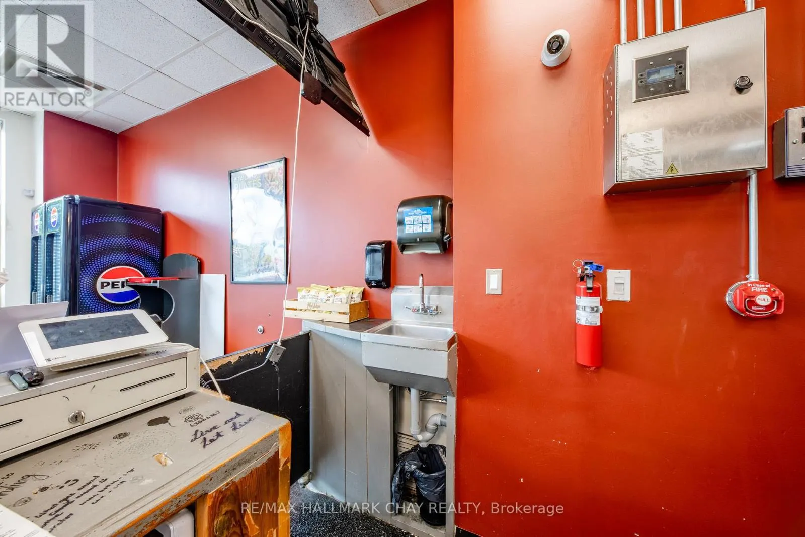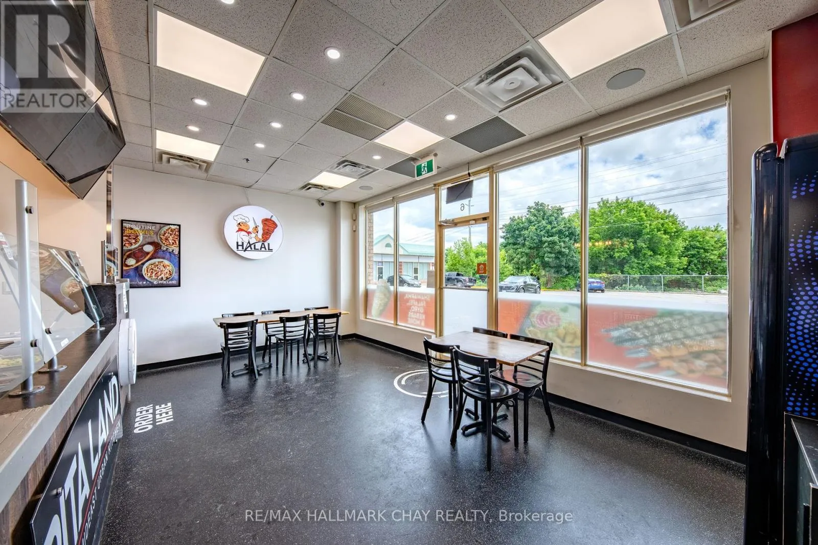 Cross Streets: King St. ** Directions: King St & Heritage Dr. Excellent Opportunity to Own and Operate a Successful Shawarma Restaurant Business in Midland in a busy commercial plaza, A profitable Shawarma Restaurant Business, located in the heart of Midland. Low gross rent of $2,525 per month (including TMI and HST) Current lease in place with a 5-year renewal option. The well-designed 1185 sq ft layout is optimized for low labour costs, making it ideal for streamlined operations. This is a fully operational, franchise approved location with strong brand recognition and a loyal customer base. Prime location with excellent visibility and high foot traffic, Fully equipped kitchen with modern fixtures and Walk in Fridge and Freezer, Strong weekly sales with room for growth. Ample parking and easy accessibility ongoing support and training from the franchise, Ideal for owner-operators or investors, Whether you're an experienced business owner or looking for a stable, turnkey opportunity, this is your chance to own a reputable and growing franchise in the fast casual dining space. Please do not go direct or speak with employees. (id:27476)