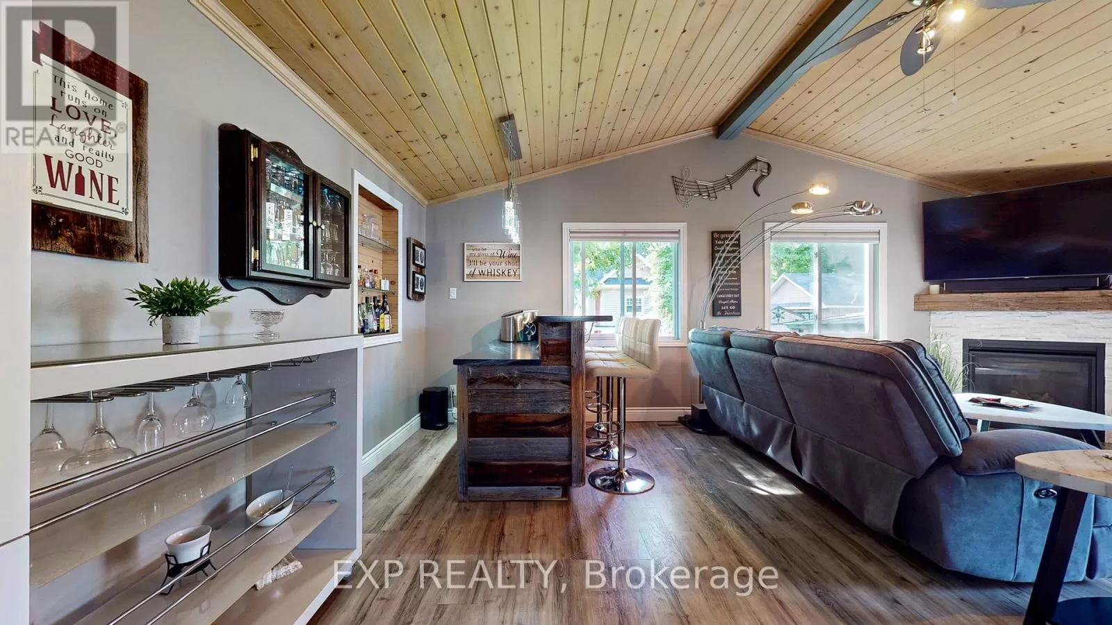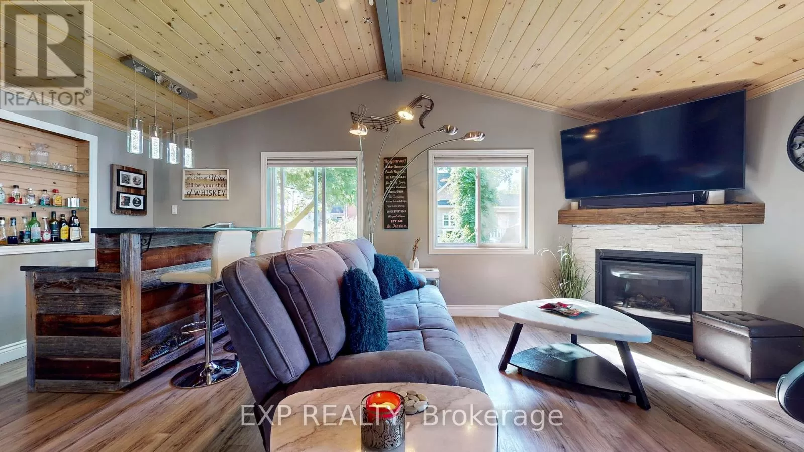 Cross Streets: Russell St and Yonge St. ** Directions: Yonge to Russell to Horrell. Welcome to 369 Horrell Avenue, a beautifully maintained and thoughtfully updated home nestled in the heart of Midland. This property blends modern upgrades with timeless appeal, making it the perfect choice for families, downsizers, or those seeking a year-round retreat near Georgian Bay.Enjoy the convenience of being just minutes from Midlands vibrant downtown, offering boutique shops, restaurants, and local cafes. Families will appreciate the proximity to schools, parks, and trails, while outdoor enthusiasts can take advantage of the nearby waterfront, marinas, and scenic Wye Marsh Wildlife Centre. With beaches, golf courses, and ski hills all within easy reach, this location offers four-season lifestyle living.Inside, the home showcases extensive renovations and stylish finishes, including a gas fireplace, rain shower bathroom, and modern appliances and bar. The kitchen has been enhanced with a new floor, sink, and taps, completed with the recent living room addition. The walk-out basement provides additional storage and versatile space, making it perfect for hobbies, seasonal items, or creating a personalized retreat. Outdoors, relax under the gazebo. With major updates to roof, appliances, and mechanicals already complete, this home is truly move-in ready. (id:27476)