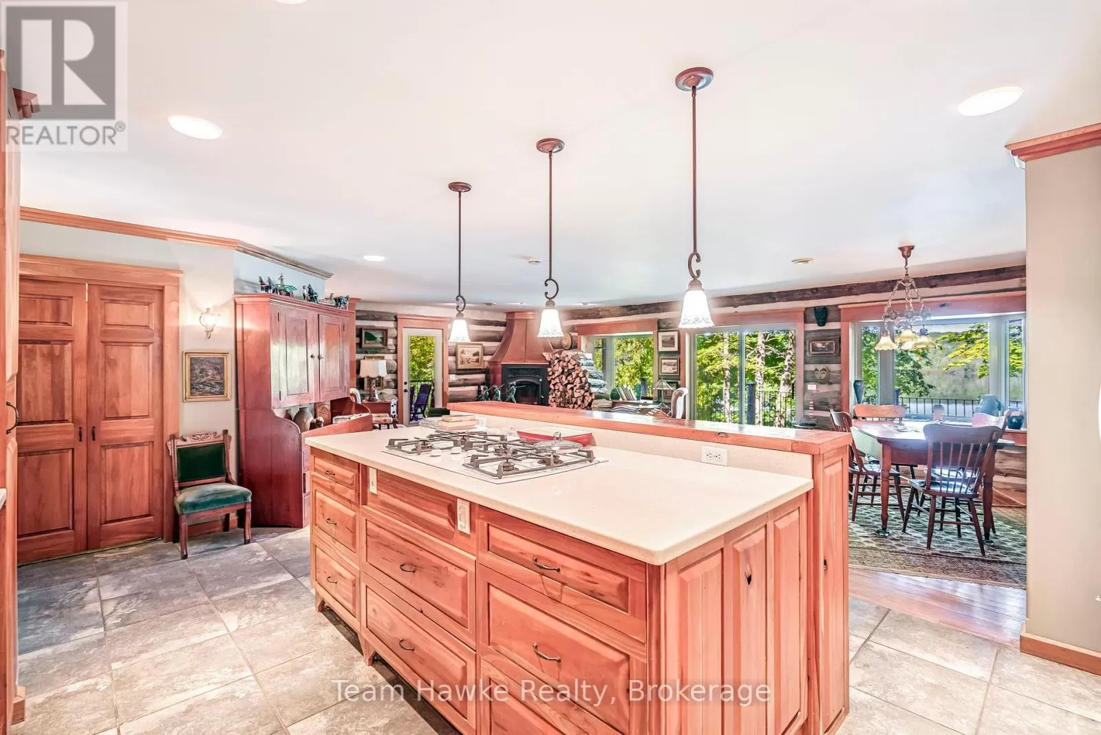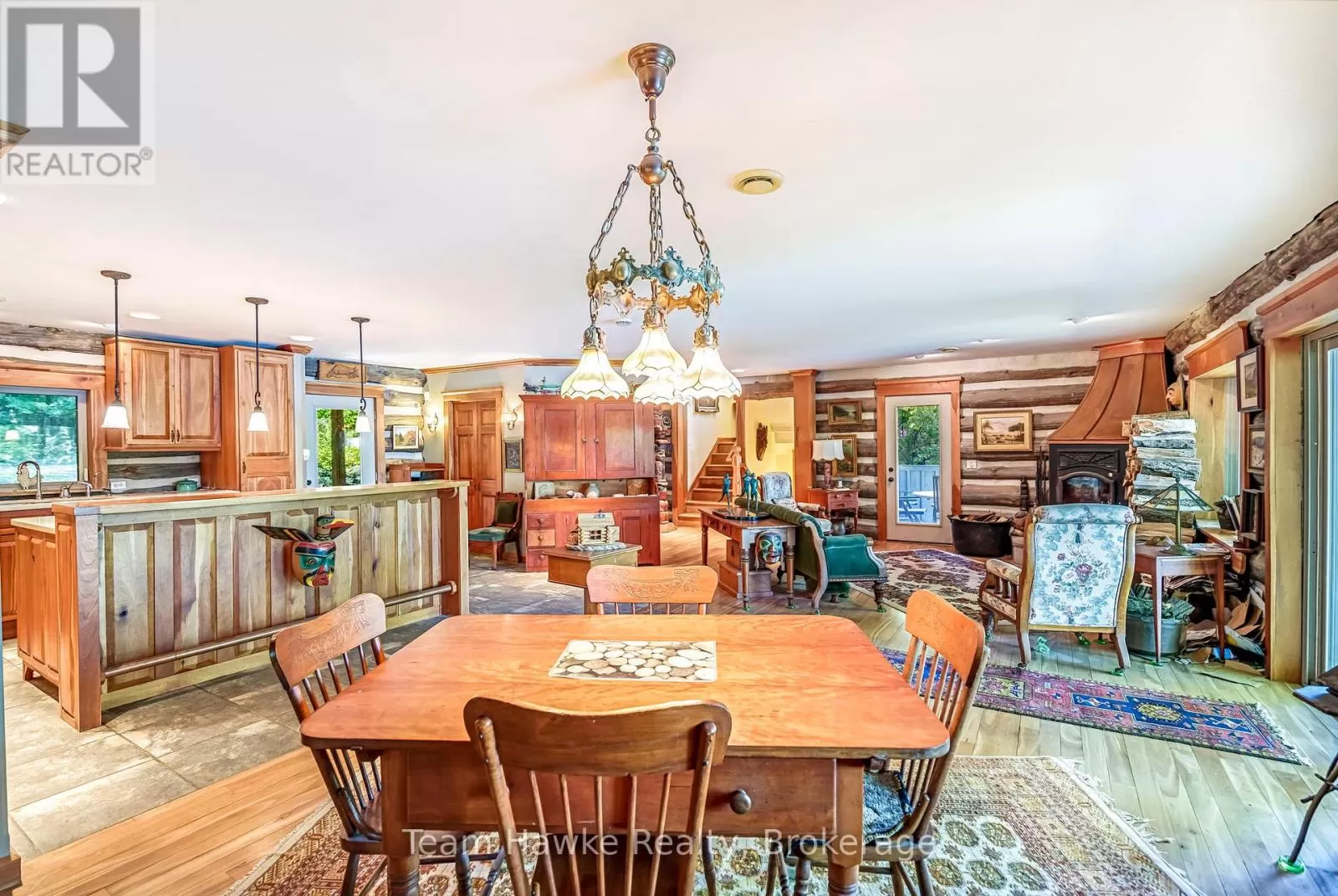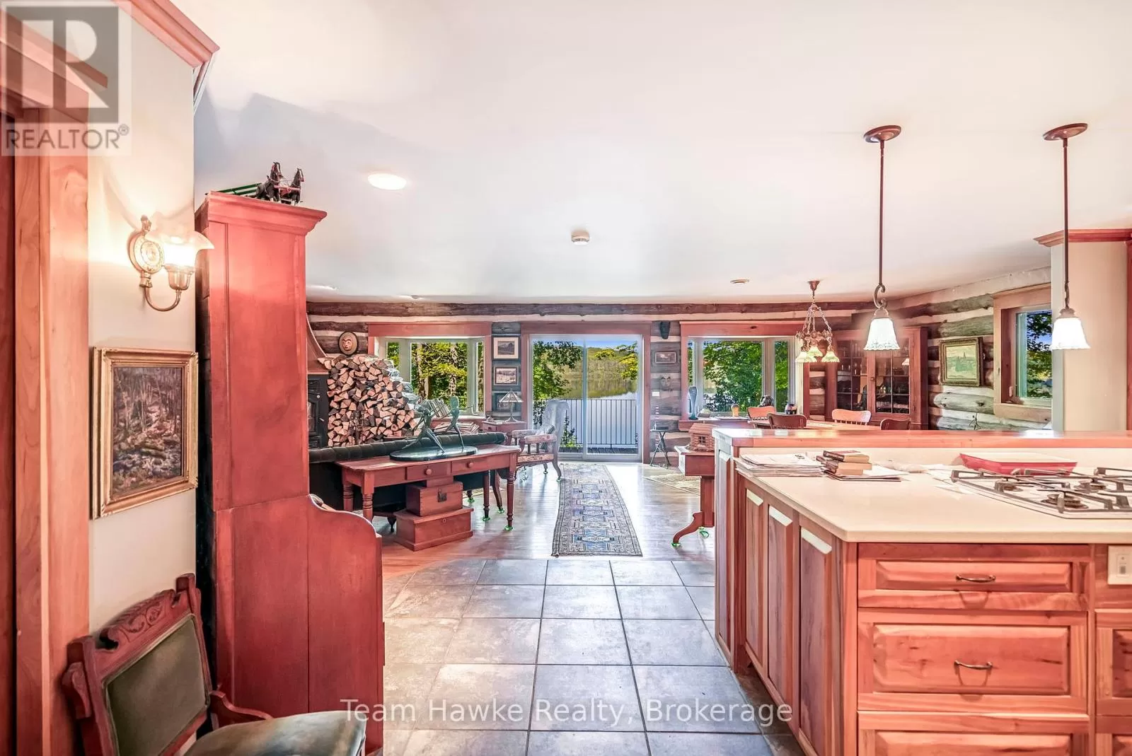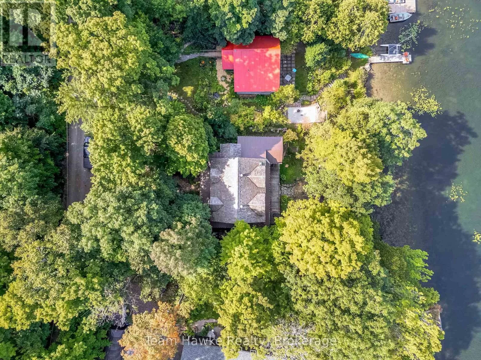Cross Streets: Heritage Drive. ** Directions: Heritage Drive - Sumac Lane. One of only eleven waterfront properties on Sumac Lane, this stunning four-season log home, built in 2005, offers just under 74 feet of frontage on Little Lake. Tucked away on a privately maintained road, the home screams rustic charm, creating an ideal year-round residence or weekend retreat. Inside, the heart of the home is the large chefs kitchen, complete with a generous island and open to the main floor living and dining areas, perfect for entertaining family and friends. Beautiful cherry floors and cupboards complement the natural log construction, while three copper-surround fireplaces (one on each level, including in the primary bedroom) add warmth and character throughout. The spacious primary suite spans the full length of the home along the water side, offering breathtaking views. The walk-out basement features a large recreation room, sauna, and easy access to the outdoors. Enjoy the wrap-around porch, expansive back deck overlooking the water, and a fully screened-in sunroom off the main living room. Only 90 minutes from the GTA, this property offers a rare combination of privacy, comfort, and peaceful waterfront living that could either be your home away from home, or your full time residence. (id:27476)