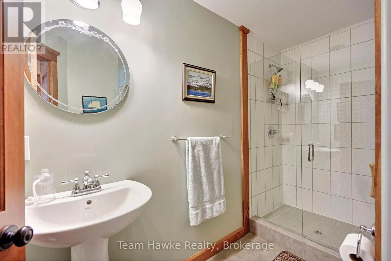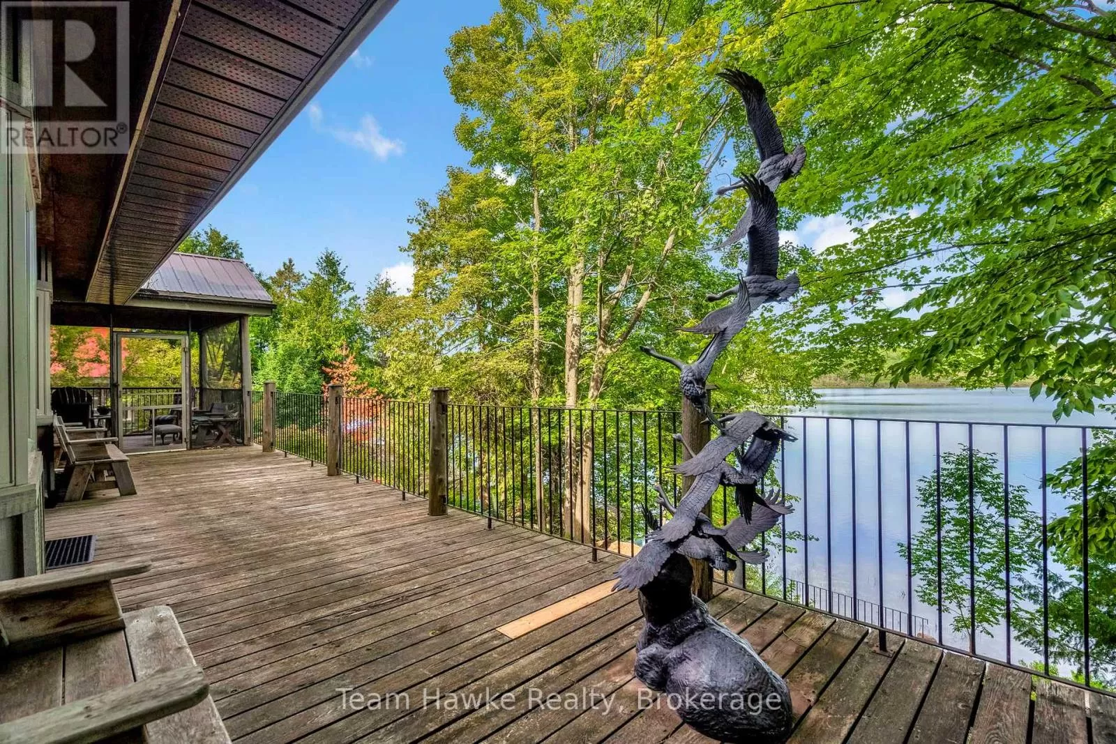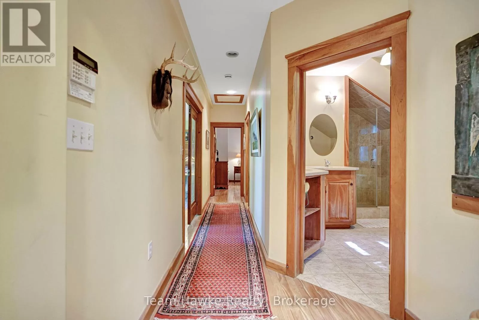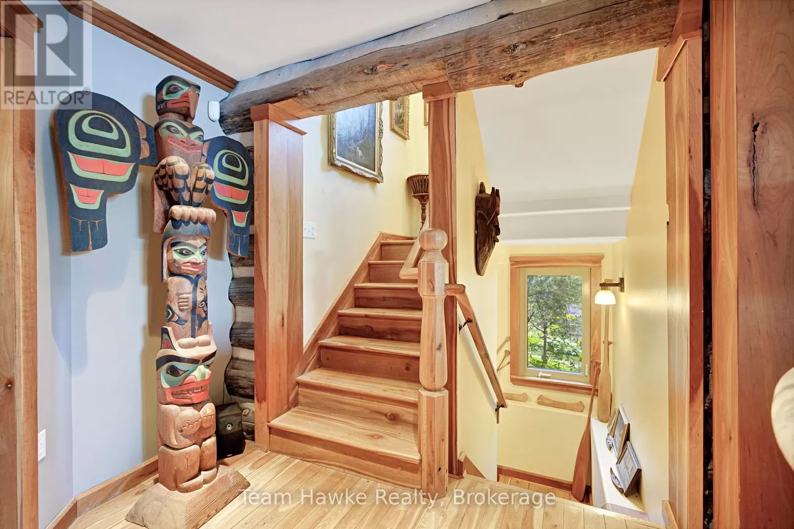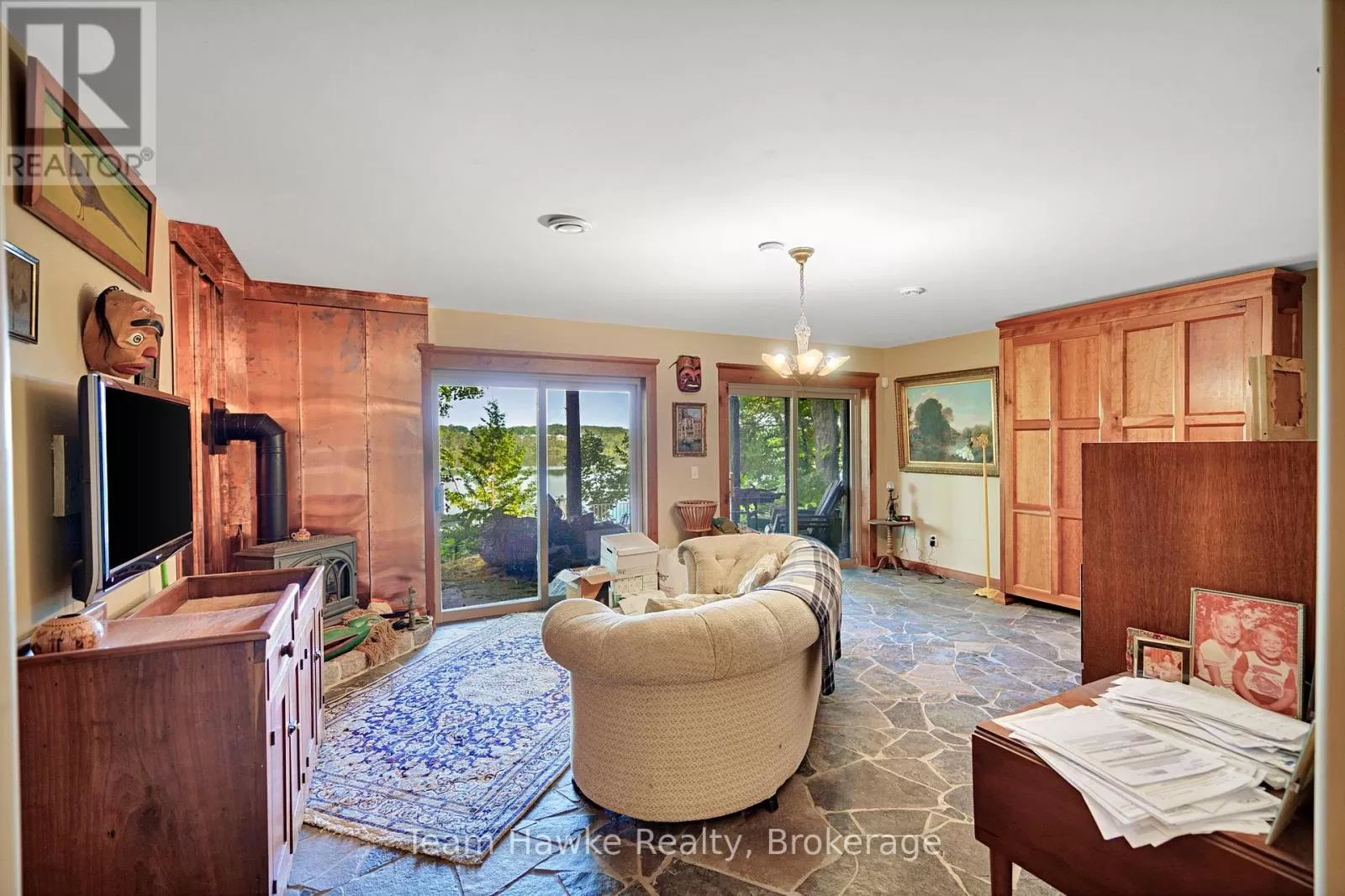 Cross Streets: Heritage Drive. ** Directions: Heritage Drive - Sumac Lane. One of only eleven waterfront properties on Sumac Lane, this stunning four-season log home, built in 2005, offers just under 74 feet of frontage on Little Lake. Tucked away on a privately maintained road, the home screams rustic charm, creating an ideal year-round residence or weekend retreat. Inside, the heart of the home is the large chefs kitchen, complete with a generous island and open to the main floor living and dining areas, perfect for entertaining family and friends. Beautiful cherry floors and cupboards complement the natural log construction, while three copper-surround fireplaces (one on each level, including in the primary bedroom) add warmth and character throughout. The spacious primary suite spans the full length of the home along the water side, offering breathtaking views. The walk-out basement features a large recreation room, sauna, and easy access to the outdoors. Enjoy the wrap-around porch, expansive back deck overlooking the water, and a fully screened-in sunroom off the main living room. Only 90 minutes from the GTA, this property offers a rare combination of privacy, comfort, and peaceful waterfront living that could either be your home away from home, or your full time residence. (id:27476)