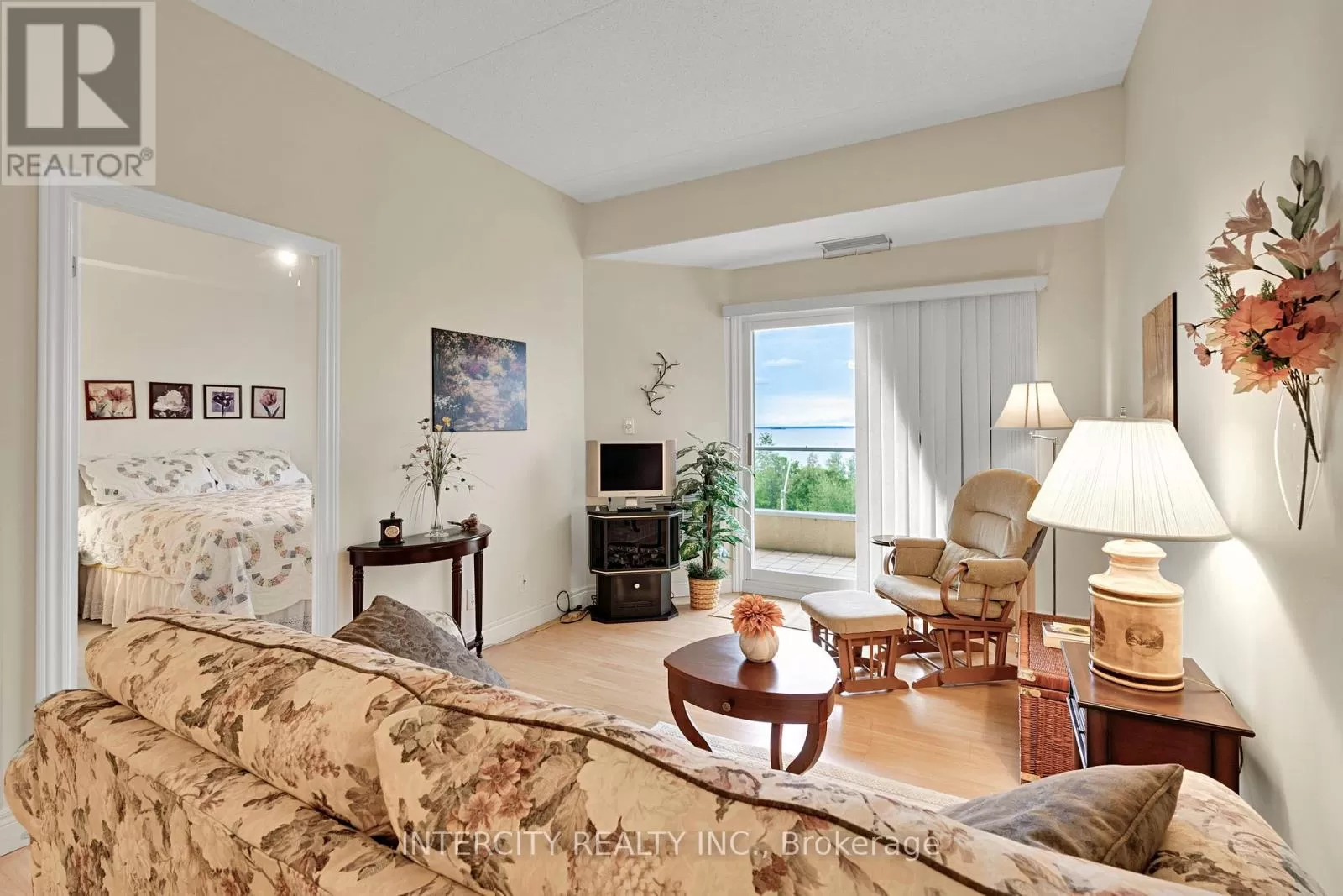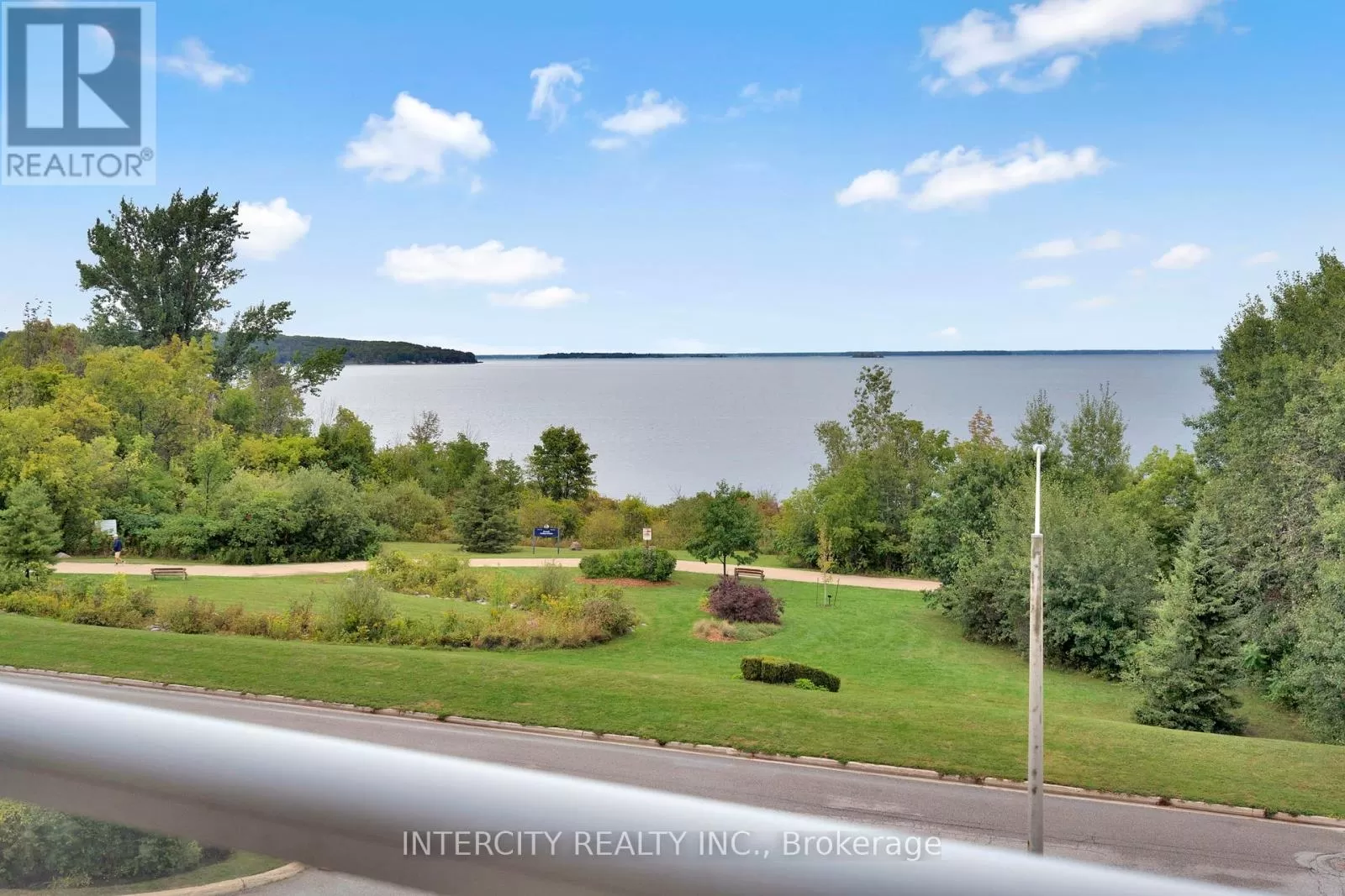 Bay Street & Aberdeen Welcome to PH12 a beautiful open one bedroom penthouse condo in the sought after tiffin waterfront community. Full length spacious balcony to enjoy your gorgeous view of Georgian Bay. Laundry Room & Double wide master closet. One convenient parking space owned, close to entrance. Attention Investors and Users alike- all furniture available at no extra cost! BBQ allowed. Steps to Marina & Trans Canada Trail. Heavily discounted boat slip available with this unit specifically, just up the street. Minutes to town. Don't miss the opportunity to enjoy a carefree lifestyle in this wonderful community. Party room, games room & more. Life's too short to live anywhere else! (id:27476)