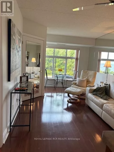 Yonge Street & Aberdeen Boulevard Lovely home overlooking beautiful Georgian Bay. Miles of waterfront trails just steps from the front door. Enjoy the sailboats and sunrises from the bedroom, great room, or private balcony or walk to the nearby marinas for a closer look. Practical layout with separate laundry room/walk-in pantry off the kitchen and a den that can be used for storage, office, or guests. 2 large mirrored double closets, plus a large den ensures lots of storage space and a sense of openess. A comfortable space to live in plus 2 walkouts to balcony to enjoy the fresh lake air. Enjoy the immaculate grounds with beautiful landscaping and a gazebo that someone else maintains leaving you free to relax and read in the gazebo in warm weather. Two owned parking spots. Midland has much to enjoy with vibrant downtown shops, restaurants, craft brewery, a Cultural Centre, festivals, hospital, curling, dog park (at little Lake), walking trails, golf courses, and so much more. A great active lifestyle awaits you. Affordable living! Hydro: $75-$110 monthly. Gas $55-$70 monthly. Enjoyed by the same family for over 20 years, ready for a new adventure with a new owner-will it be you? Come see your new home and fall in love with all that is has to offer. (id:27476)