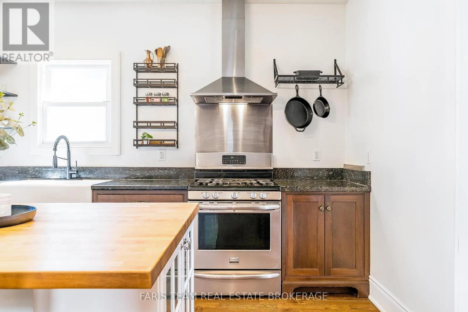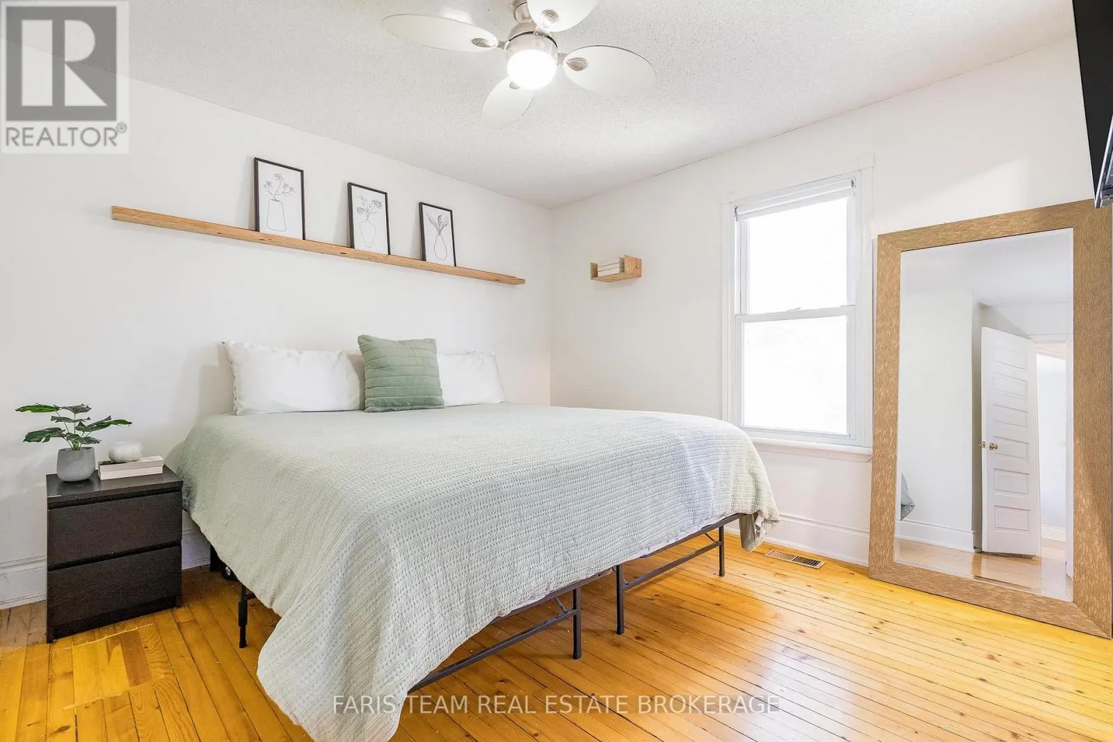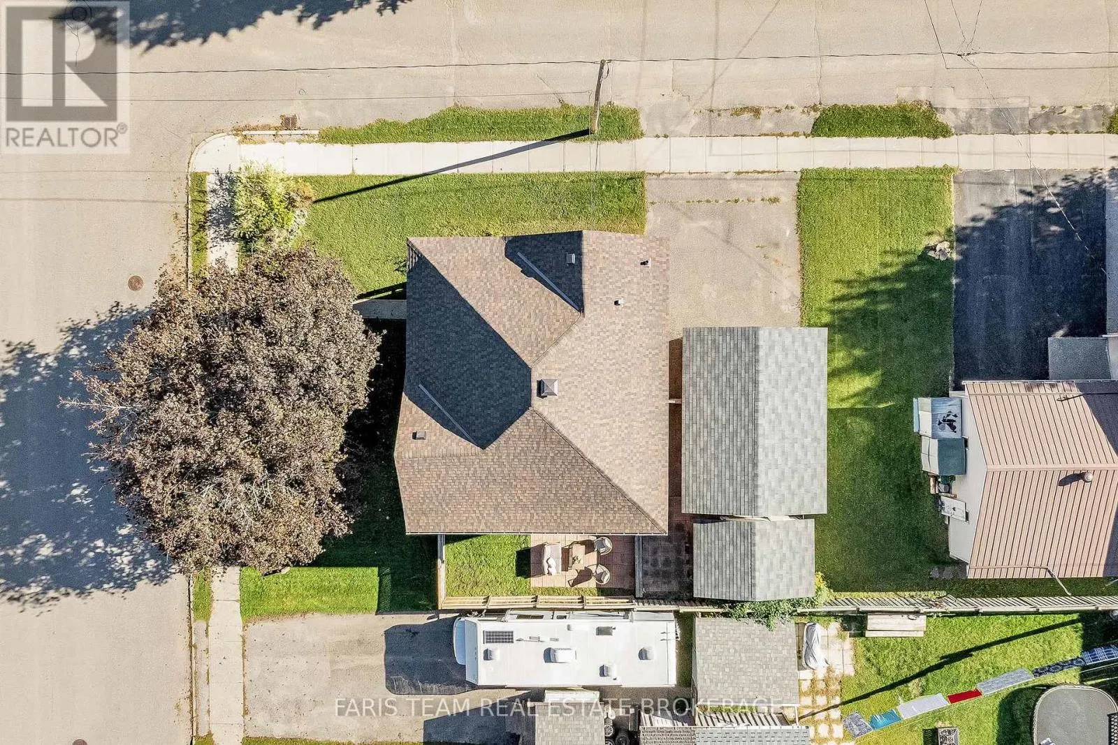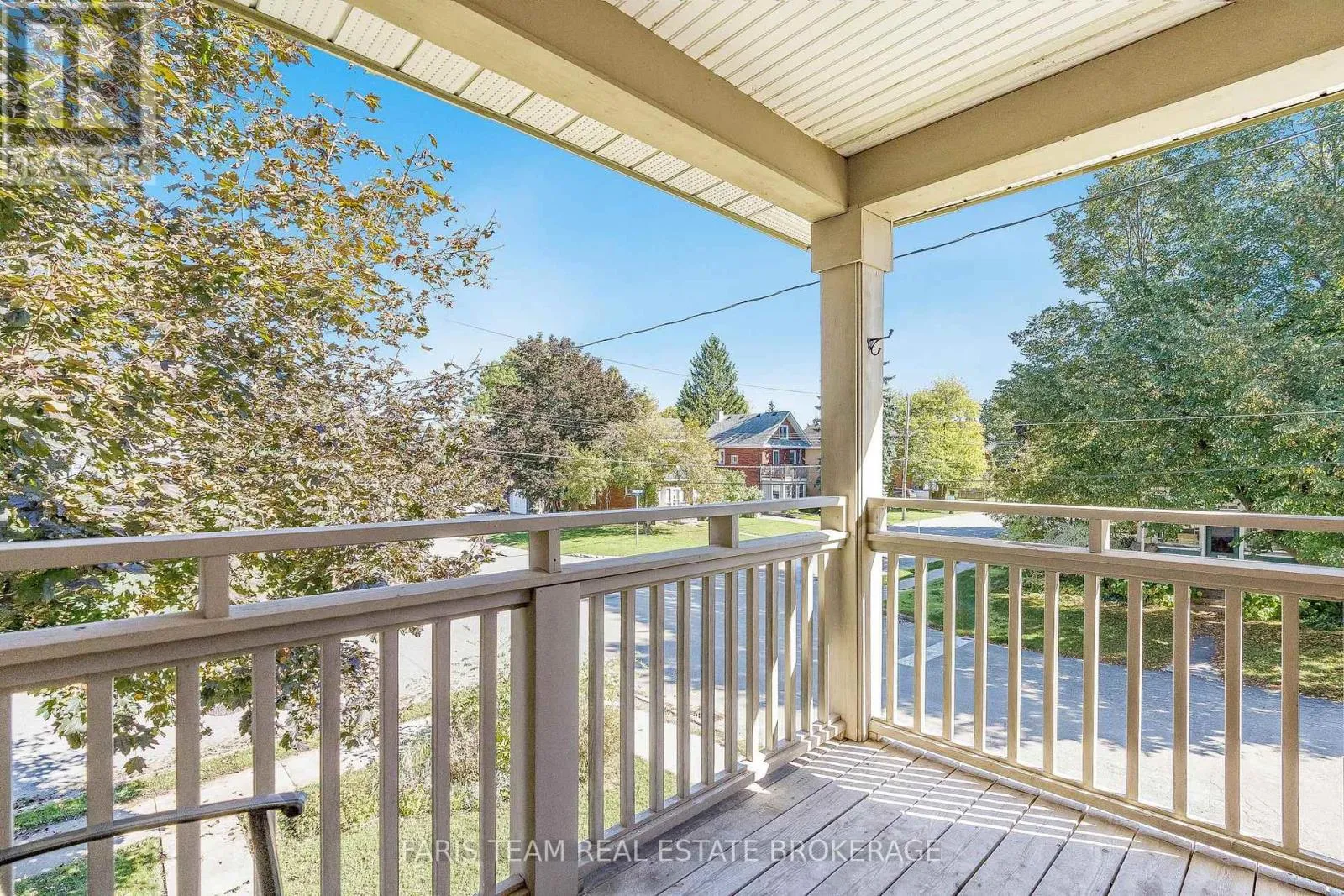 Hannah St/Manly St Top 5 Reasons You Will Love This Home: 1) Perfect for first-time buyers or small families, this charming three bedroom century home delivers timeless character, modern comfort, and thoughtful updates, truly checking all the boxes 2) Step into the welcoming foyer with high 9' ceilings, a tastefully updated kitchen featuring a gas range, granite countertops, and a farmhouse-style sink, and hardwood floors flowing through the freshly painted main level, where you'll find a cozy living area, a formal dining room with double doors to the backyard, and a convenient two-piece bathroom; outside, enjoy a fully fenced, low-maintenance deck and patio, perfect for entertaining or quiet evenings at home 3) The finished basement extends your living space with a family-friendly recreation room for movie and game nights, plus a functional laundry area with a new washer and dryer (2024), ample cabinetry for storage, and a spacious utility room with a newer furnace and a brand-new Napoleon air conditioner (2024) 4) Upstairs, the freshly painted level offers three comfortable bedrooms, including a primary retreat with a large walk-in closet featuring built-in storage, along with an upper level balcony where you can sip your morning coffee or unleash your creativity in the spacious unfinished loft with vaulted ceilings, ready to be transformed into the space of your dreams 5) With exterior updates including new brick (2019) and a new roof (2024), plus a spacious shop for vehicle storage and a garden shed, this home delivers peace of mind inside and out, all within walking distance to downtown Midland and the sparkling shores of Georgian Bay. 1,679 sq.ft. plus a paritally finished basement. (id:27476)