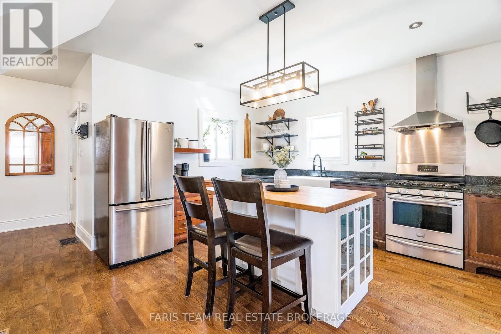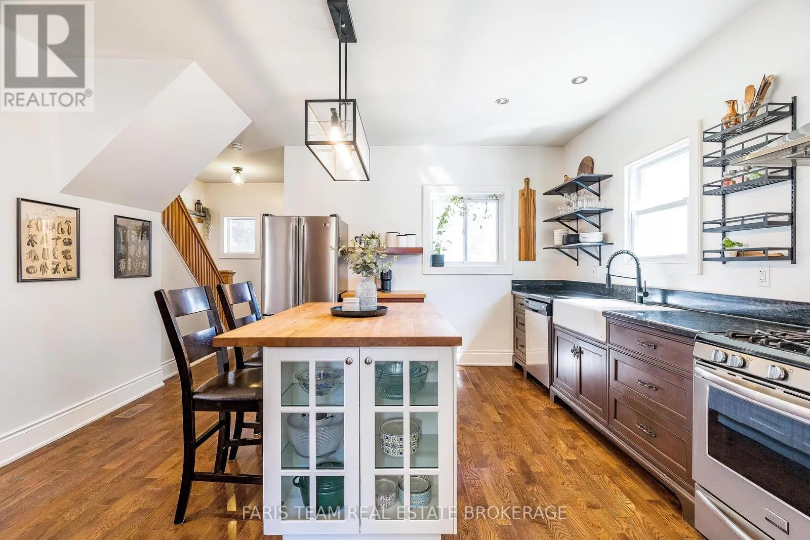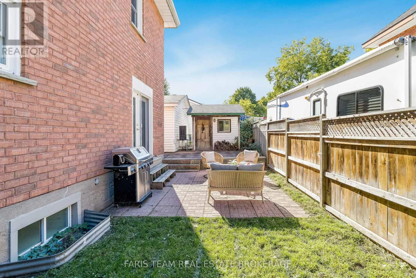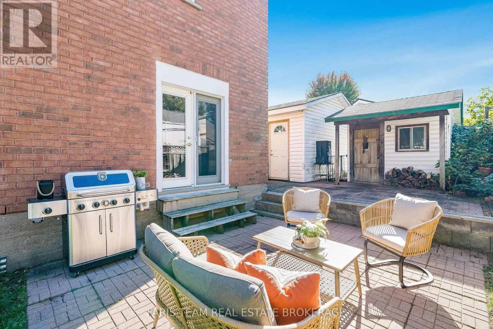 Hannah St/Manly St Top 5 Reasons You Will Love This Home: 1) Perfect for first-time buyers or small families, this charming three bedroom century home delivers timeless character, modern comfort, and thoughtful updates, truly checking all the boxes 2) Step into the welcoming foyer with high 9' ceilings, a tastefully updated kitchen featuring a gas range, granite countertops, and a farmhouse-style sink, and hardwood floors flowing through the freshly painted main level, where you'll find a cozy living area, a formal dining room with double doors to the backyard, and a convenient two-piece bathroom; outside, enjoy a fully fenced, low-maintenance deck and patio, perfect for entertaining or quiet evenings at home 3) The finished basement extends your living space with a family-friendly recreation room for movie and game nights, plus a functional laundry area with a new washer and dryer (2024), ample cabinetry for storage, and a spacious utility room with a newer furnace and a brand-new Napoleon air conditioner (2024) 4) Upstairs, the freshly painted level offers three comfortable bedrooms, including a primary retreat with a large walk-in closet featuring built-in storage, along with an upper level balcony where you can sip your morning coffee or unleash your creativity in the spacious unfinished loft with vaulted ceilings, ready to be transformed into the space of your dreams 5) With exterior updates including new brick (2019) and a new roof (2024), plus a spacious shop for vehicle storage and a garden shed, this home delivers peace of mind inside and out, all within walking distance to downtown Midland and the sparkling shores of Georgian Bay. 1,679 sq.ft. plus a paritally finished basement. (id:27476)