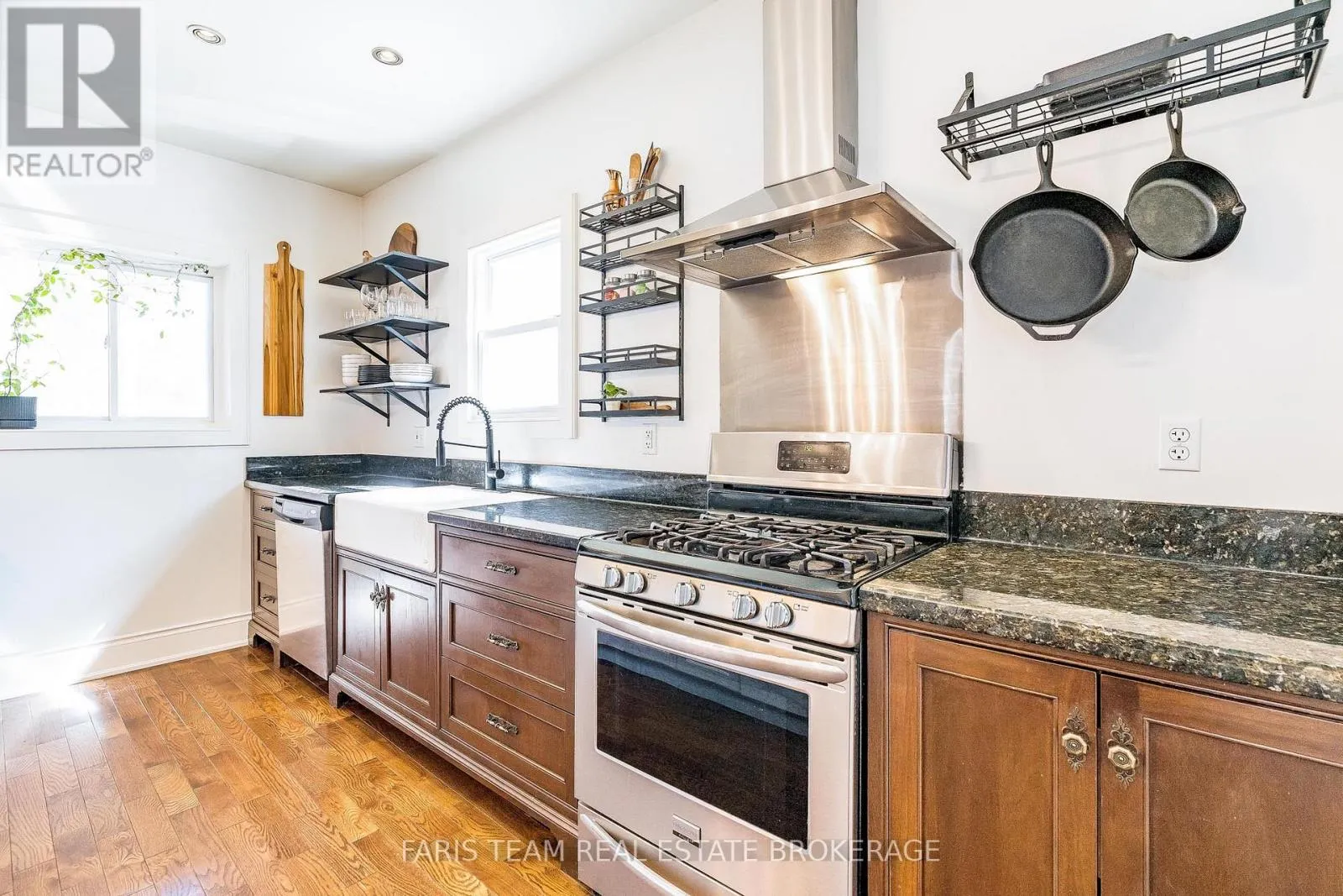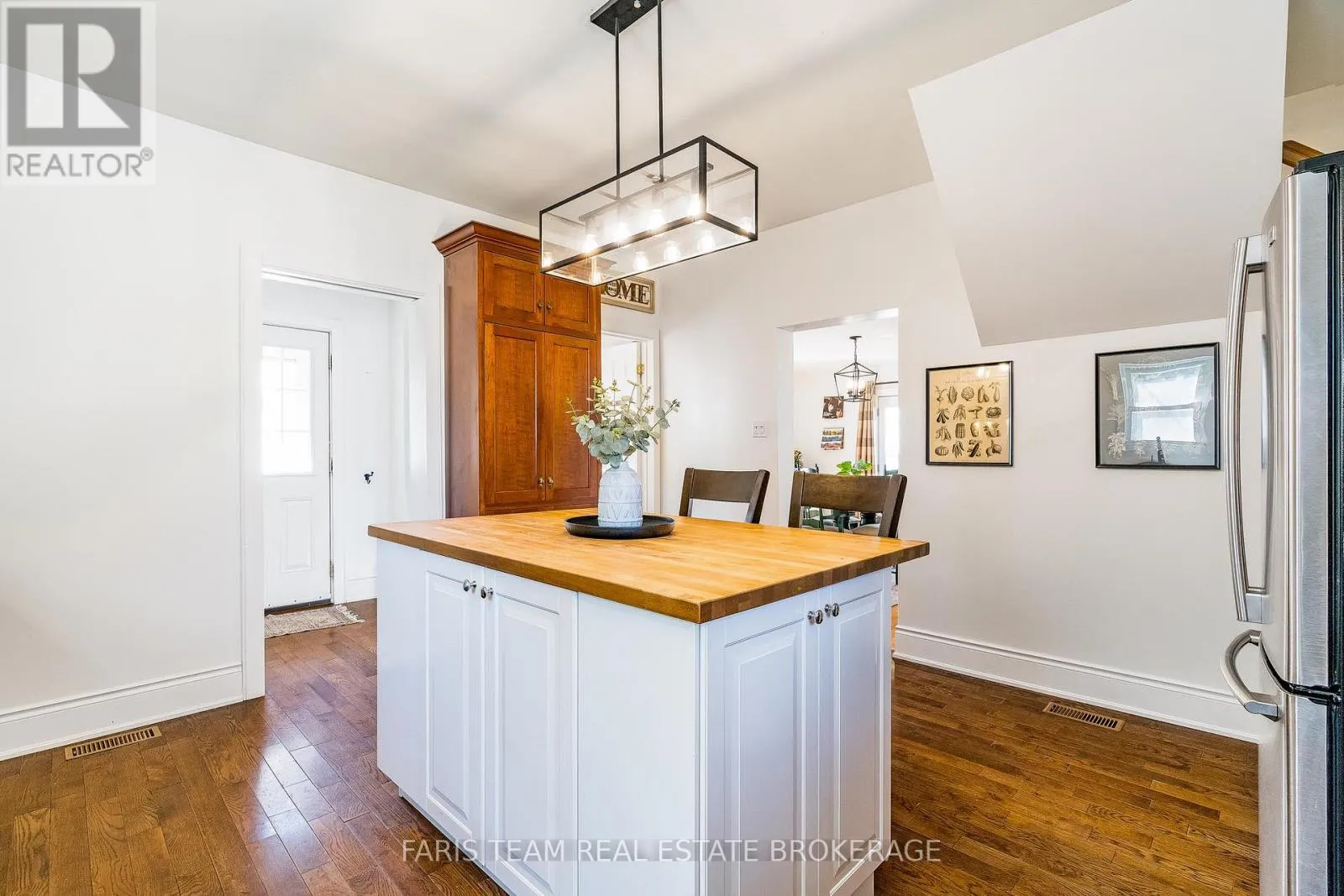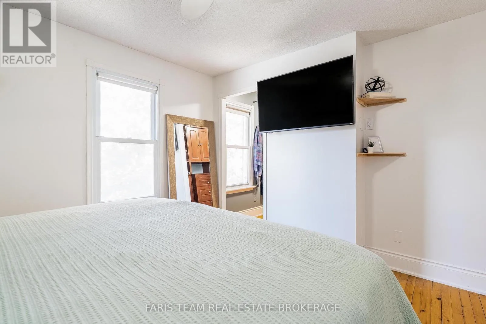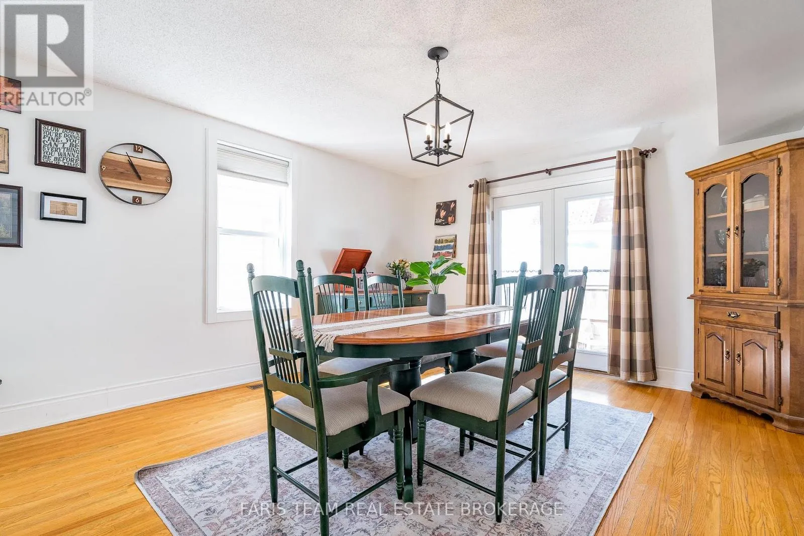 Hannah St/Manly St Top 5 Reasons You Will Love This Home: 1) Perfect for first-time buyers or small families, this charming three bedroom century home delivers timeless character, modern comfort, and thoughtful updates, truly checking all the boxes 2) Step into the welcoming foyer with high 9' ceilings, a tastefully updated kitchen featuring a gas range, granite countertops, and a farmhouse-style sink, and hardwood floors flowing through the freshly painted main level, where you'll find a cozy living area, a formal dining room with double doors to the backyard, and a convenient two-piece bathroom; outside, enjoy a fully fenced, low-maintenance deck and patio, perfect for entertaining or quiet evenings at home 3) The finished basement extends your living space with a family-friendly recreation room for movie and game nights, plus a functional laundry area with a new washer and dryer (2024), ample cabinetry for storage, and a spacious utility room with a newer furnace and a brand-new Napoleon air conditioner (2024) 4) Upstairs, the freshly painted level offers three comfortable bedrooms, including a primary retreat with a large walk-in closet featuring built-in storage, along with an upper level balcony where you can sip your morning coffee or unleash your creativity in the spacious unfinished loft with vaulted ceilings, ready to be transformed into the space of your dreams 5) With exterior updates including new brick (2019) and a new roof (2024), plus a spacious shop for vehicle storage and a garden shed, this home delivers peace of mind inside and out, all within walking distance to downtown Midland and the sparkling shores of Georgian Bay. 1,679 sq.ft. plus a paritally finished basement. (id:27476)