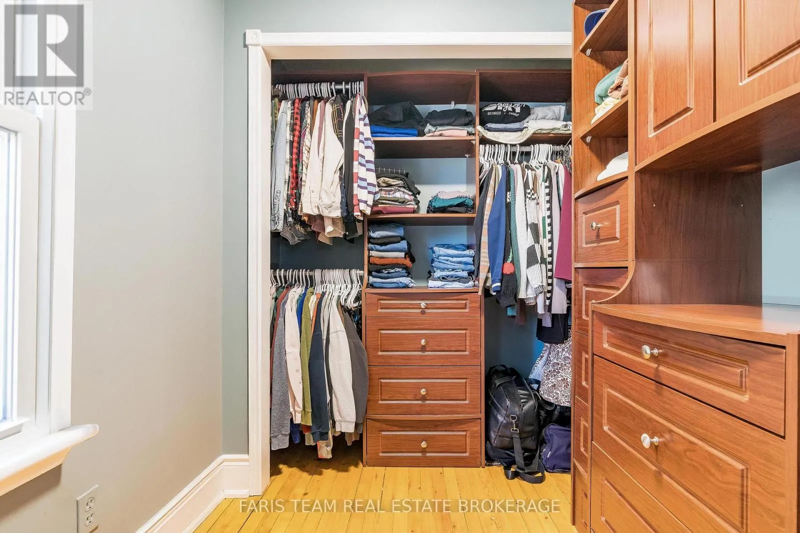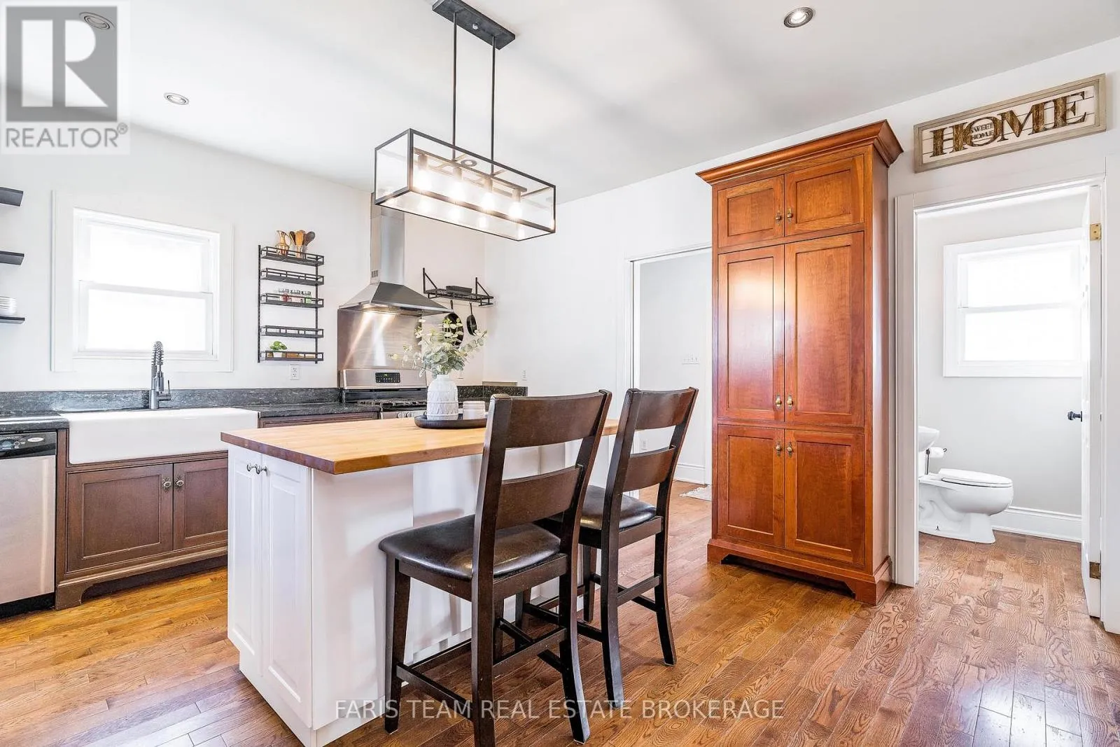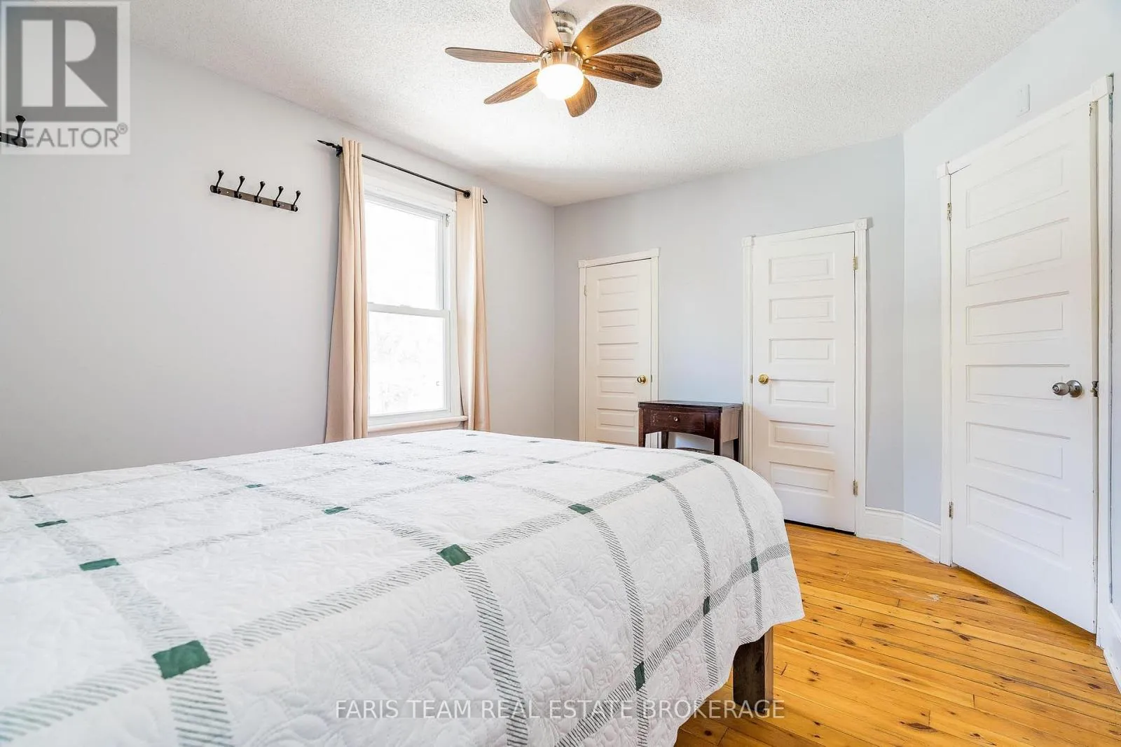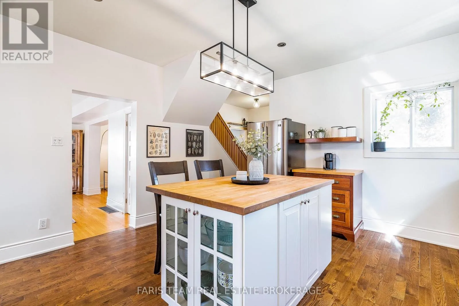 Hannah St/Manly St Top 5 Reasons You Will Love This Home: 1) Perfect for first-time buyers or small families, this charming three bedroom century home delivers timeless character, modern comfort, and thoughtful updates, truly checking all the boxes 2) Step into the welcoming foyer with high 9' ceilings, a tastefully updated kitchen featuring a gas range, granite countertops, and a farmhouse-style sink, and hardwood floors flowing through the freshly painted main level, where you'll find a cozy living area, a formal dining room with double doors to the backyard, and a convenient two-piece bathroom; outside, enjoy a fully fenced, low-maintenance deck and patio, perfect for entertaining or quiet evenings at home 3) The finished basement extends your living space with a family-friendly recreation room for movie and game nights, plus a functional laundry area with a new washer and dryer (2024), ample cabinetry for storage, and a spacious utility room with a newer furnace and a brand-new Napoleon air conditioner (2024) 4) Upstairs, the freshly painted level offers three comfortable bedrooms, including a primary retreat with a large walk-in closet featuring built-in storage, along with an upper level balcony where you can sip your morning coffee or unleash your creativity in the spacious unfinished loft with vaulted ceilings, ready to be transformed into the space of your dreams 5) With exterior updates including new brick (2019) and a new roof (2024), plus a spacious shop for vehicle storage and a garden shed, this home delivers peace of mind inside and out, all within walking distance to downtown Midland and the sparkling shores of Georgian Bay. 1,679 sq.ft. plus a paritally finished basement. (id:27476)