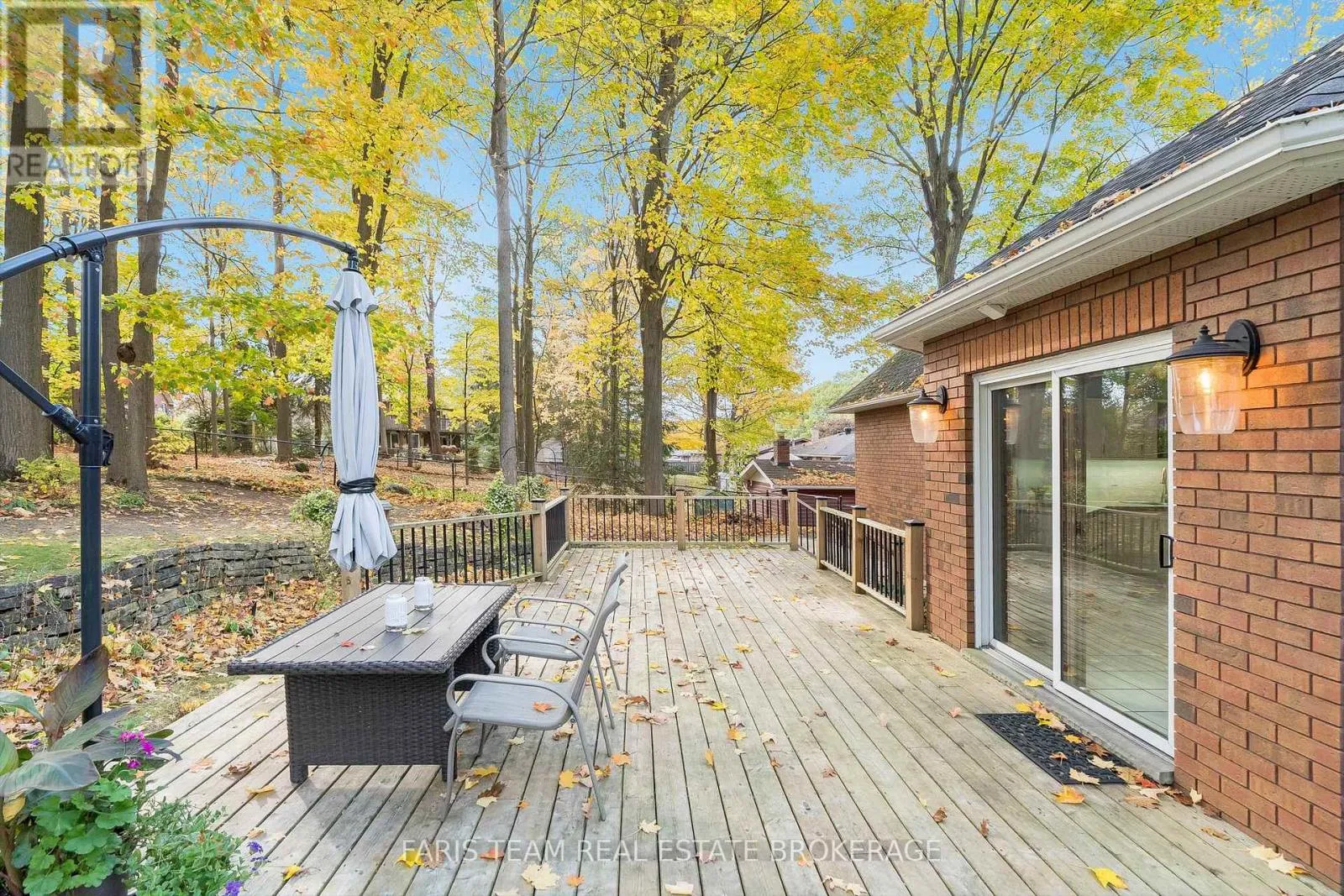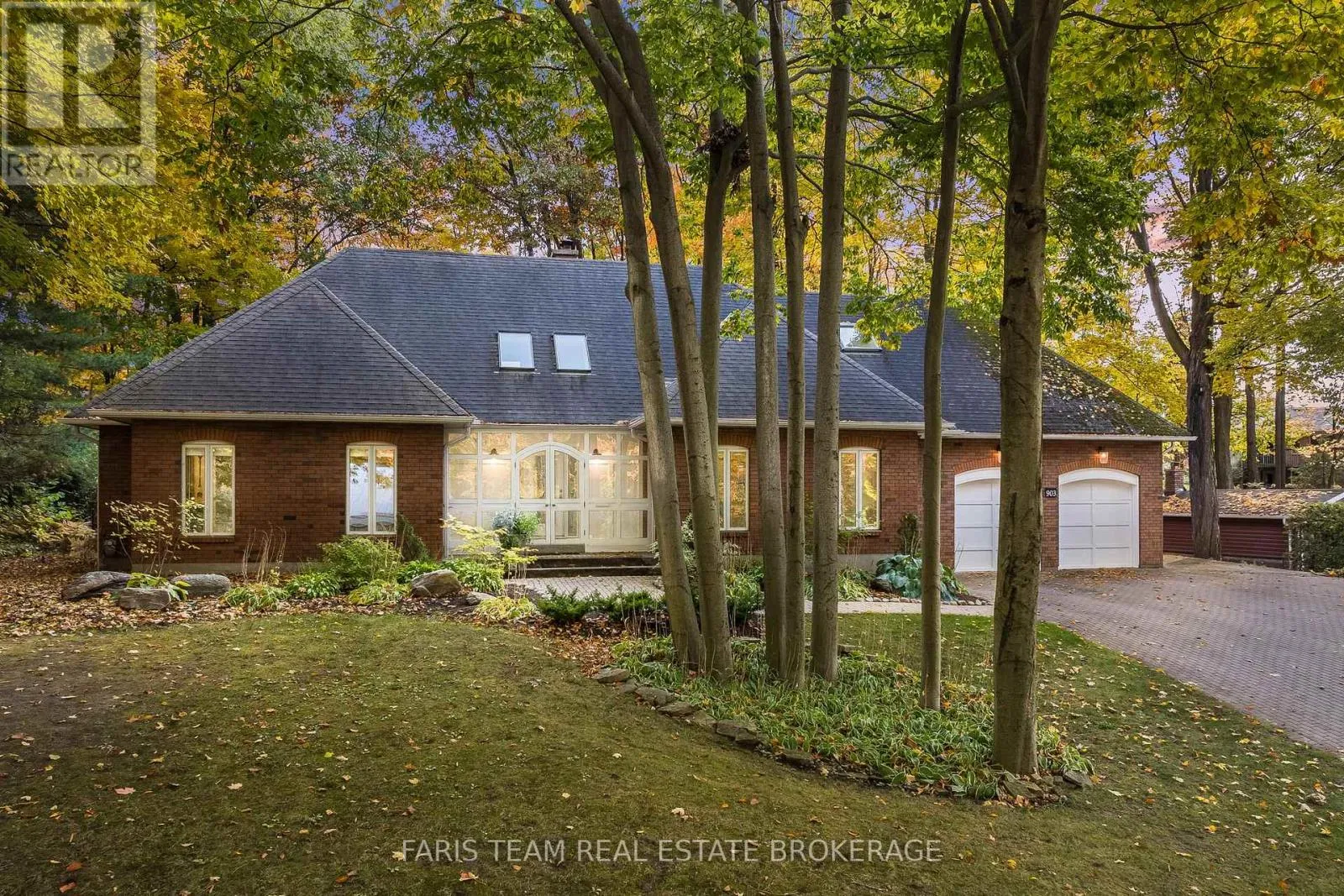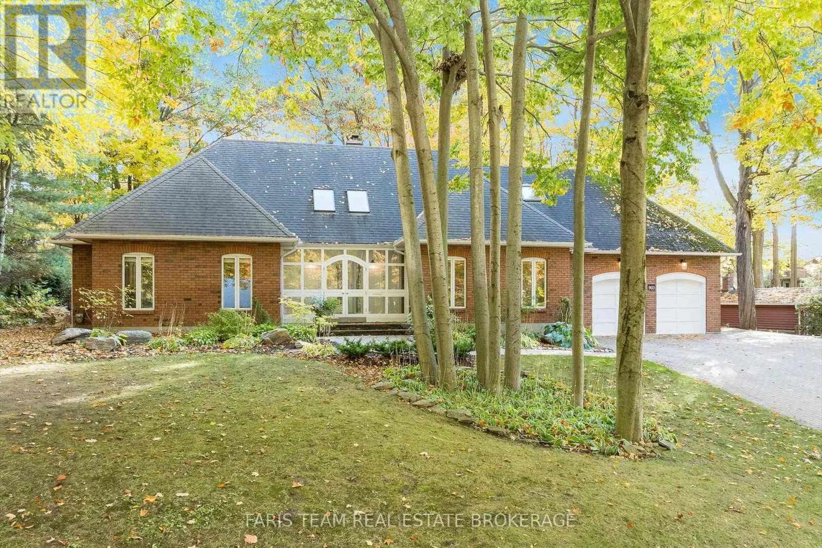 Fourth St/Victoria St Top 5 Reasons You Will Love This Home: 1) Tucked away in one of Midlands most desirable neighbourhoods, this timeless all-brick residence graces a rare 120'x200' in-town lot, surrounded by mature trees, perennial gardens, and charming rock walls, offering a sense of prestige and peaceful seclusion 2) Step through the grand front entrance into a home rich with character, from cathedral ceilings and a formal dining room bathed in natural light to a spacious main level featuring a generous primary suite with a luxurious 5-piece ensuite, main level laundry, and a cozy family room anchored by a wood-burning fireplace 3) The heart of the home is an expansive kitchen appointed with granite countertops, stainless-steel appliances, and ample cabinetry, seamlessly opening to a sunlit breakfast area with walkout access to the backyard deck, perfect for gatherings or quiet mornings with coffee 4) Whether you're unwinding by the fireplace in the sunlit living room or entertaining on the multi-level deck, this home delivers year-round comfort and connection to nature, with a fully fenced backyard that feels like your own private retreat 5) Practical touches abound, including an oversized heated and insulated double garage with interior access, a finished basement with walk-up to the garage, and an interlock driveway, making it ideal for multi-generational living, welcoming guests, or simply enjoying space and style without compromise. 3,071 above grade sq.ft. plus a finished basement. (id:27476)
