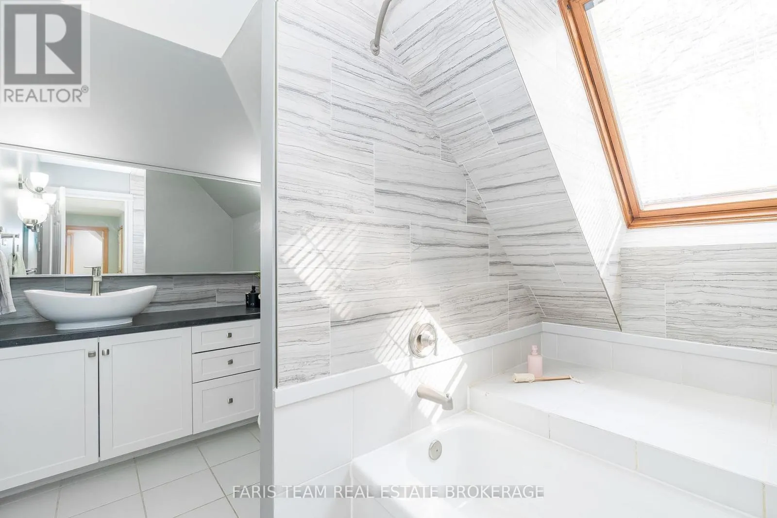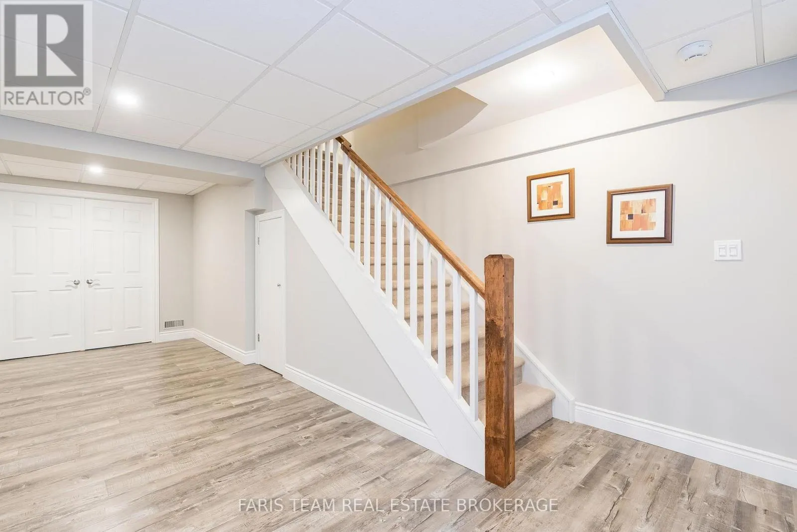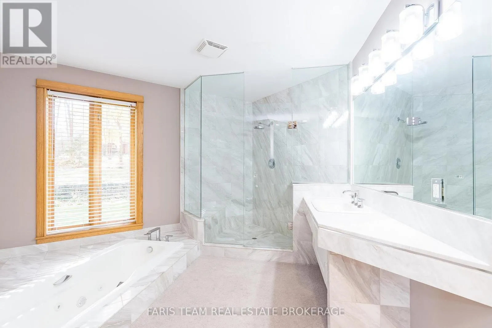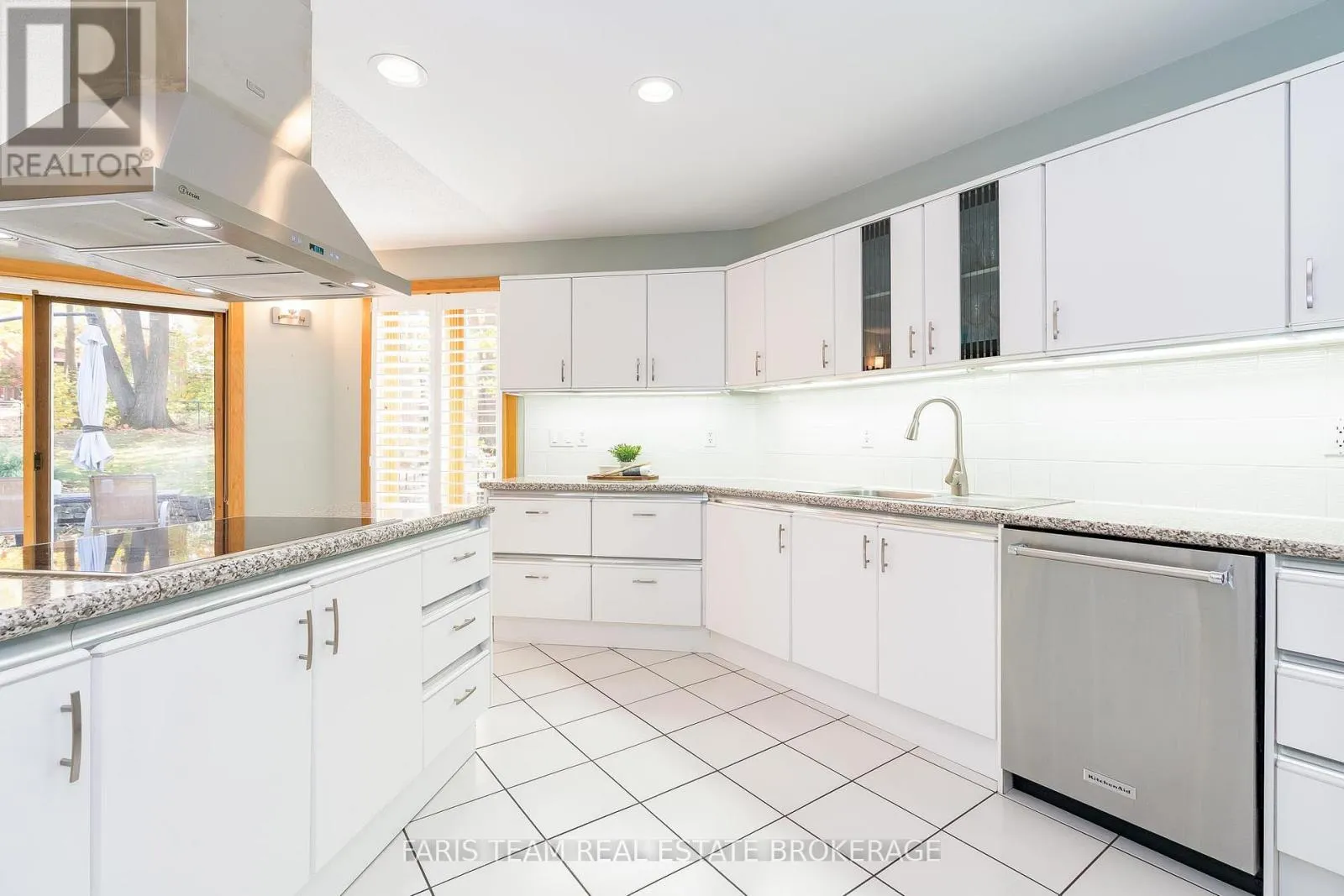 Fourth St/Victoria St Top 5 Reasons You Will Love This Home: 1) Tucked away in one of Midlands most desirable neighbourhoods, this timeless all-brick residence graces a rare 120'x200' in-town lot, surrounded by mature trees, perennial gardens, and charming rock walls, offering a sense of prestige and peaceful seclusion 2) Step through the grand front entrance into a home rich with character, from cathedral ceilings and a formal dining room bathed in natural light to a spacious main level featuring a generous primary suite with a luxurious 5-piece ensuite, main level laundry, and a cozy family room anchored by a wood-burning fireplace 3) The heart of the home is an expansive kitchen appointed with granite countertops, stainless-steel appliances, and ample cabinetry, seamlessly opening to a sunlit breakfast area with walkout access to the backyard deck, perfect for gatherings or quiet mornings with coffee 4) Whether you're unwinding by the fireplace in the sunlit living room or entertaining on the multi-level deck, this home delivers year-round comfort and connection to nature, with a fully fenced backyard that feels like your own private retreat 5) Practical touches abound, including an oversized heated and insulated double garage with interior access, a finished basement with walk-up to the garage, and an interlock driveway, making it ideal for multi-generational living, welcoming guests, or simply enjoying space and style without compromise. 3,071 above grade sq.ft. plus a finished basement. (id:27476)