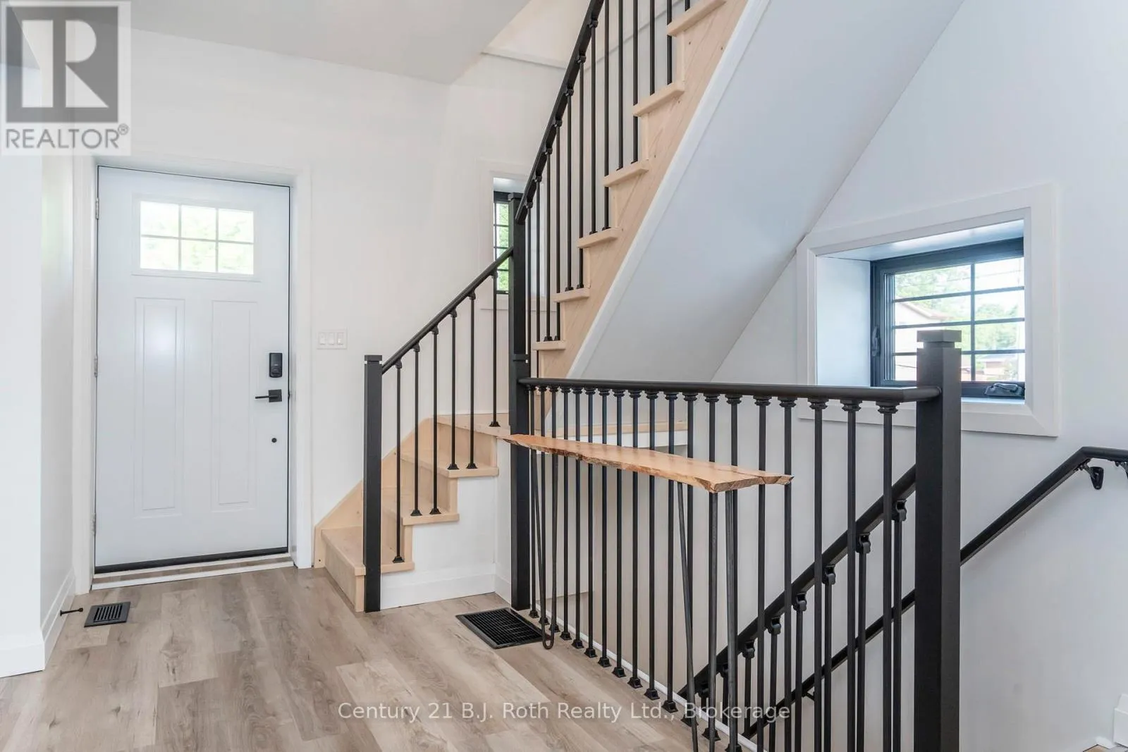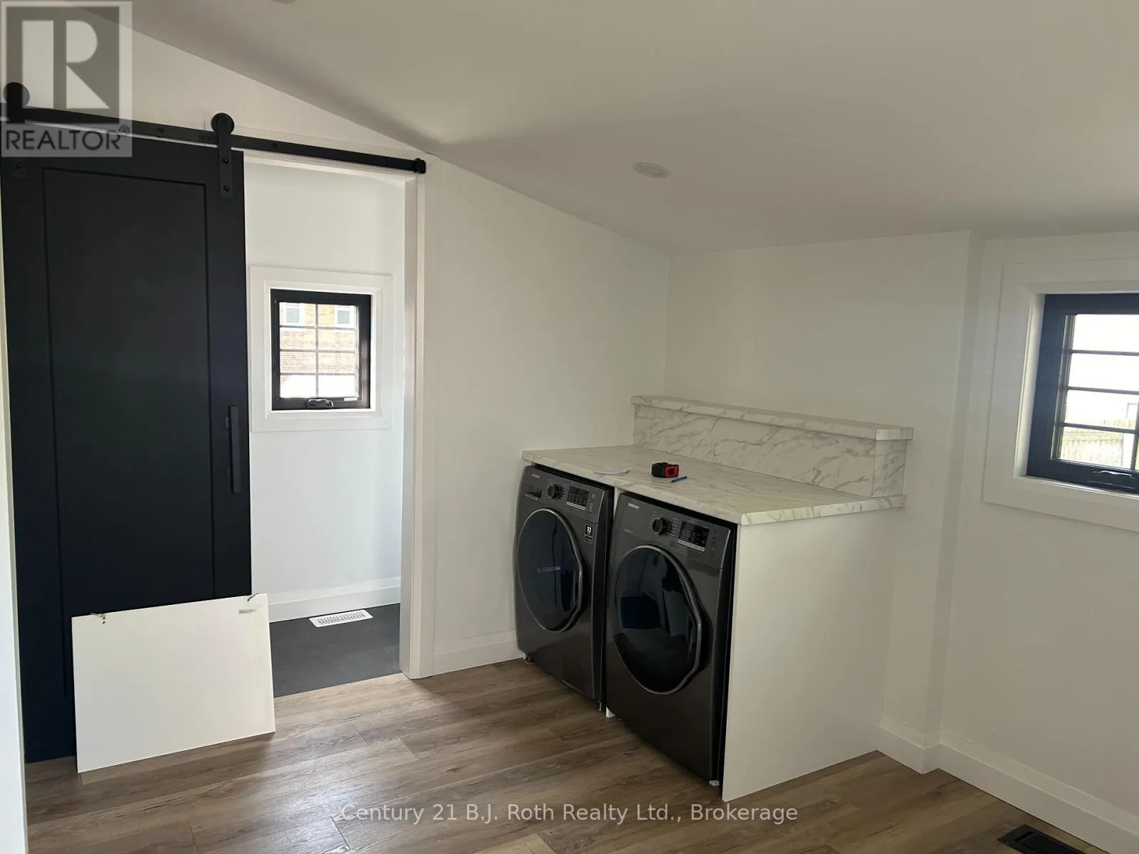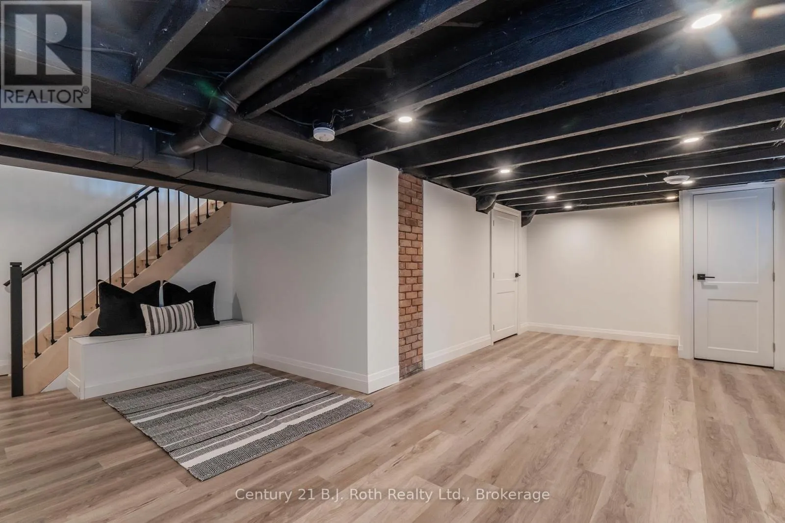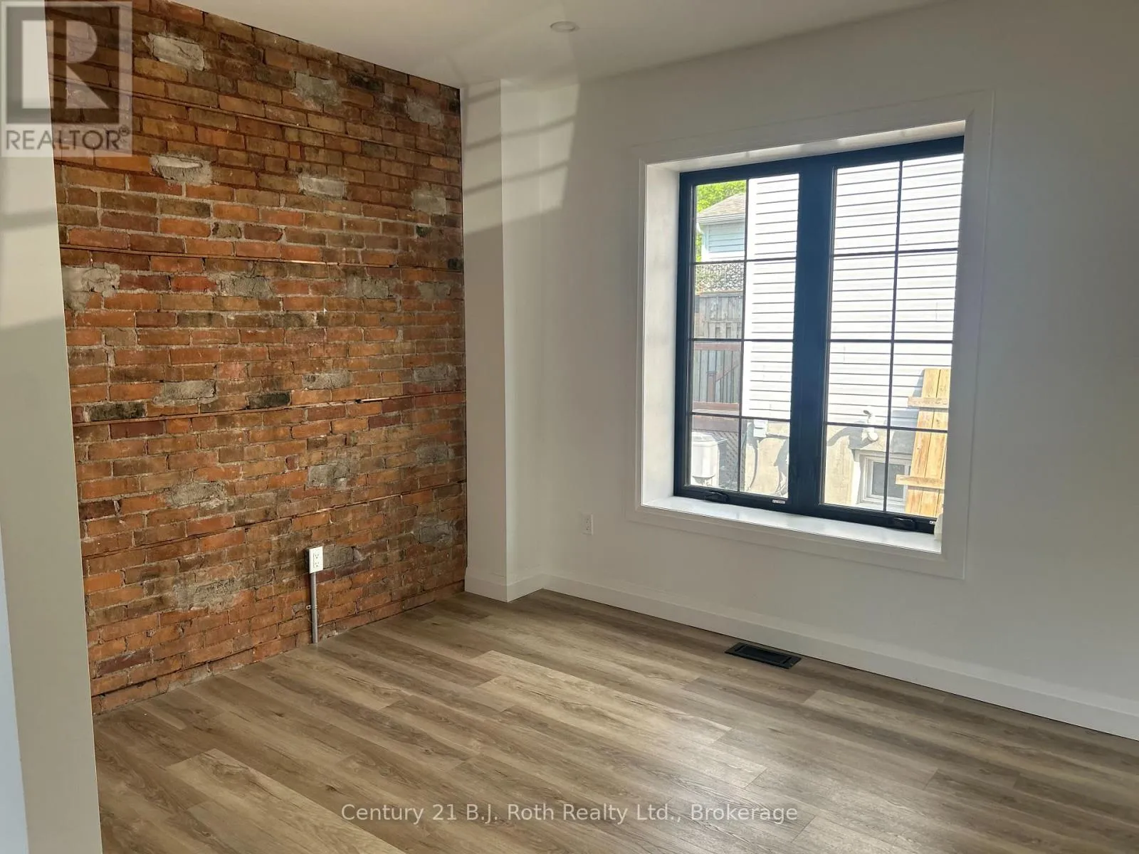Cross Streets: Yonge St/First St. ** Directions: head Northwest on King St, Turn left on Yonge St, Turn right on First St. BUSINESS OPPORTUNITY Chic Downtown Midland Retreat, located in Beautiful Georgian Bay. Fully Renovated, Zoned DC ( Downtown Core) Commercial/Residential. Contact LA for permitted uses on Commercial Business. Prime location. Walking distance to all of Midland's vibrant downtown core, cafés, boutiques, restaurants, waterfront and Marina. 1,000 + sq.ft. of beautifully designed space. Stylish & Smart Living. Step inside to discover 9-foot ceilings, sleek black-framed windows, and a stunning exposed brick feature wall that anchors the home with warmth and character. Black barn doors and modern black hardware throughout the kitchen and baths complete the Barnhouse aesthetic. Bright, Airy, & Inviting. The main-floor laundry and all-new appliances add even more everyday convenience. Finished Basement for a home office, or additional space for your business. This home offers exceptional flexibility for professionals, or entrepreneurs looking to live and work in one dynamic space. See Permitted uses attached in Schedule C (id:27476)