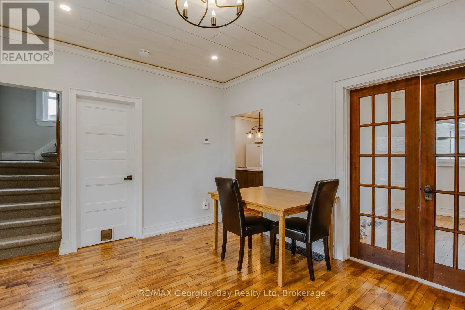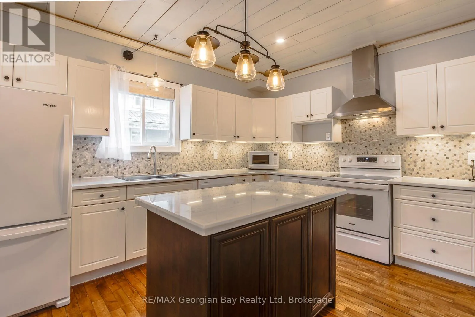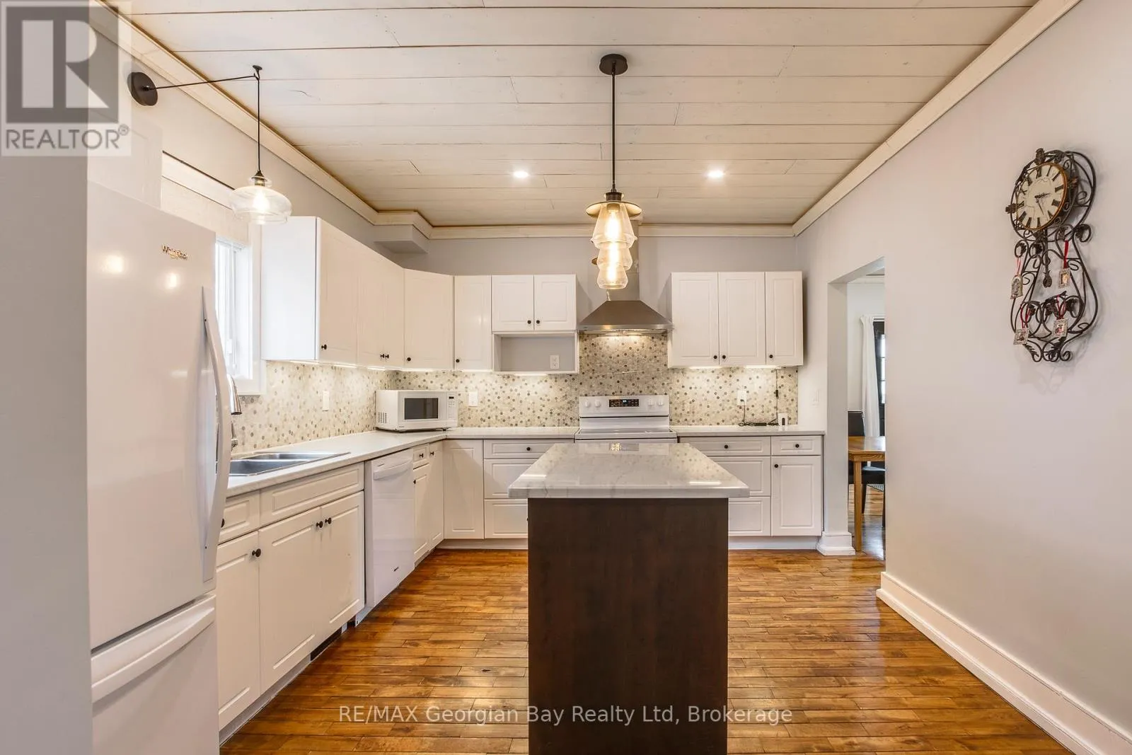 Cross Streets: Bay - Fourth. ** Directions: Hwy 12 To King St to Yonge St, to Fourth St to Bay St - Sign ON. Welcome to your perfect family home, ideally situated in the heart of Midland. Just a short walk to shops, schools, trails, and the shores of beautiful Georgian Bay, this charming 3+ bedroom century home offers the perfect blend of character and modern updates. Step inside and enjoy the warmth of hardwood floors, a spacious kitchen with island, and separate family, living, and dining areas ideal for both everyday living and gathering with loved ones. With two full bathrooms, gas heat, and central air, comfort comes standard. Outside, the large deck with a covered roof sets the stage for relaxed summer barbecues and quiet evenings. The oversized detached garage offers great storage or workspace, and the generous 50' x 150' in-town lot gives you room to grow. Lovingly maintained and thoughtfully updated from top to bottom - ask for the full list of upgrades. Don't miss this one! What are you waiting for. (id:27476)