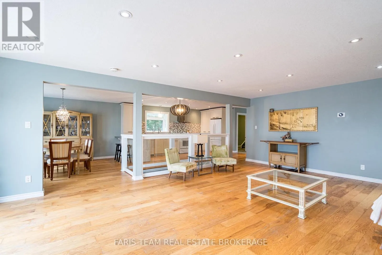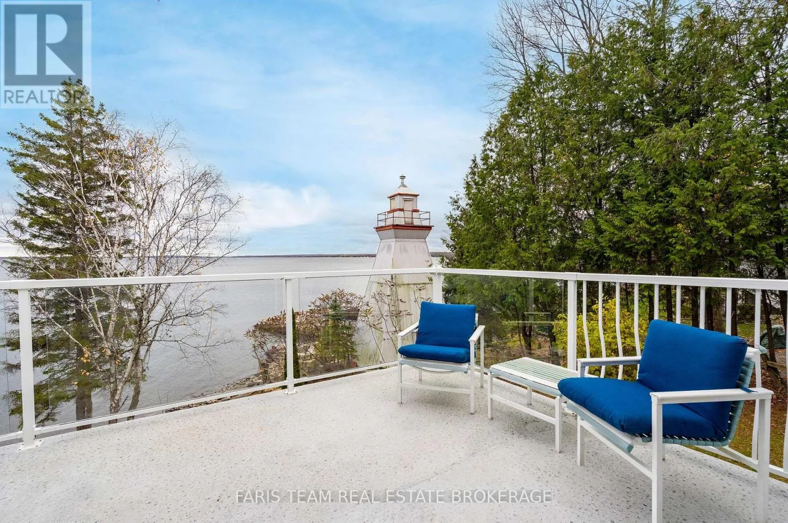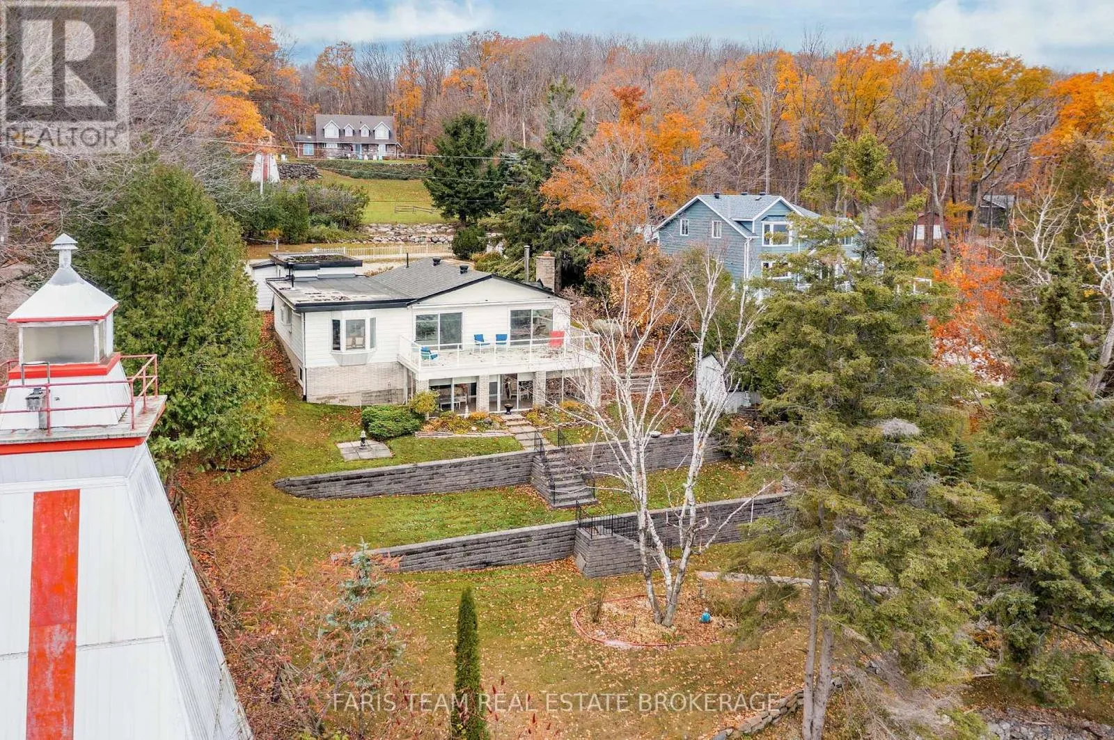 Midland Point Rd/Islandview Ln Top 5 Reasons You Will Love This Home: 1) Indulge in 105' of real, accessible shoreline with a stunning south-easterly view toward Snake Island, where you will wake up to sunrises over the water and end the day with a golden evening glow that you simply can't replicate inland 2) This is one of those rare and coveted shorelines that is rarely for sale, peaceful, mature, and deeply treasured, offering a chance to embrace a lifestyle that few ever get to experience 3) The additional rear parcel offers room to grow, where you can imagine a detached studio, guesthouse, workshop, or a garage to showcase a collection of vintage cars and recreational toys 4) A thoughtful layout featuring three bedrooms and three bathrooms, an updated kitchen, hardwood flooring, open-concept family areas, a Muskoka room, a spacious primary suite, a sauna, and a lower level walkout that seamlessly connects you to the water, designed for effortless everyday living and year-round enjoyment 5) Freshly painted with an interlock driveway, single car garage with inside entry, and an outdoor patio perfect for entertaining, as well as the forced air heating ensures comfort through the seasons, and the water view follows you from nearly every room. 1,448 above grade sq.ft. plus a finished lower level. (id:27476)
