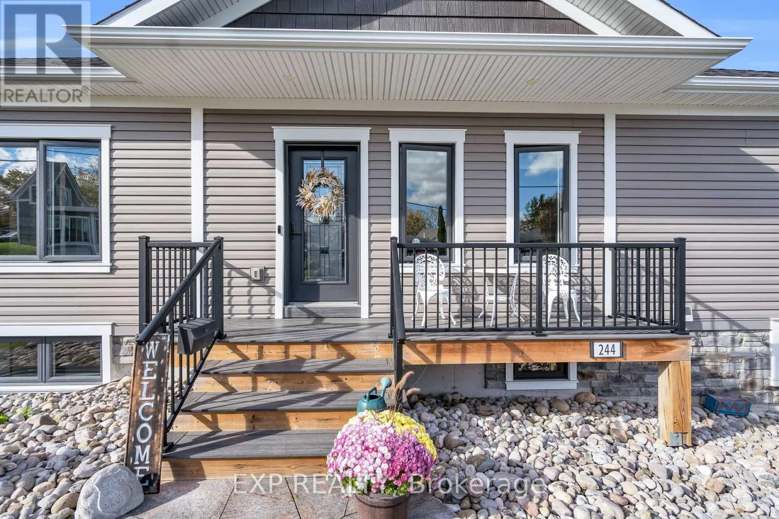 WILLIAM ST TO FRANK Welcome To 244 Frank Street - A Home Embraced By Panoramic Georgian Bay Views, Filling Each Room With Warmth, Light, And An Effortless Sense Of Calm. Designed For Comfortable, Everyday Living, This Thoughtfully Planned **3-Bedroom, 3-Bath Bungalow Features A Main-Floor Primary Suite** With A Walk-In Closet And 4-Piece Ensuite, While The **Second Main-Floor Bedroom Is Set Privately At The Opposite End Of The Home**, Offering Desired Space And Quiet.The Main Living Area Flows Beautifully For Cooking, Dining, And Gathering, Offering Heated Countertops, Quality Cabinetry,Upgraded Lighting, And The Convenience Of Main-Floor Laundry.The Fully Finished Lower Level Extends Your Living Space With A Relaxed Recreation/Family Room, A Second Upgraded Kitchen,Home Office,Third Bedroom, A Full 4-Piece Bath, And Generous Storage, Presenting Flexible Potential For An In-Law Suite (Where Permitted; Buyer To Verify).Comfort And Function Continue With Generator Wiring,EV Charger Capability, And Two Separate WalkUps To A Double-Car Garage** Finished With Durable Epoxy Flooring.Set In The Charming Town Of Midland, Known For Its Walkable Waterfront, Historic Downtown, Marinas, Boutique Shops, Cafés, Arts Community, And Year-Round Recreation, This Address Keeps You Close To Parks, Schools, And Everyday Amenities.A Move-In-Ready Home With Expansive Views** And **Elevated Features Throughout. A Place That Simply Feels Good To Come Home To. (id:27476)
