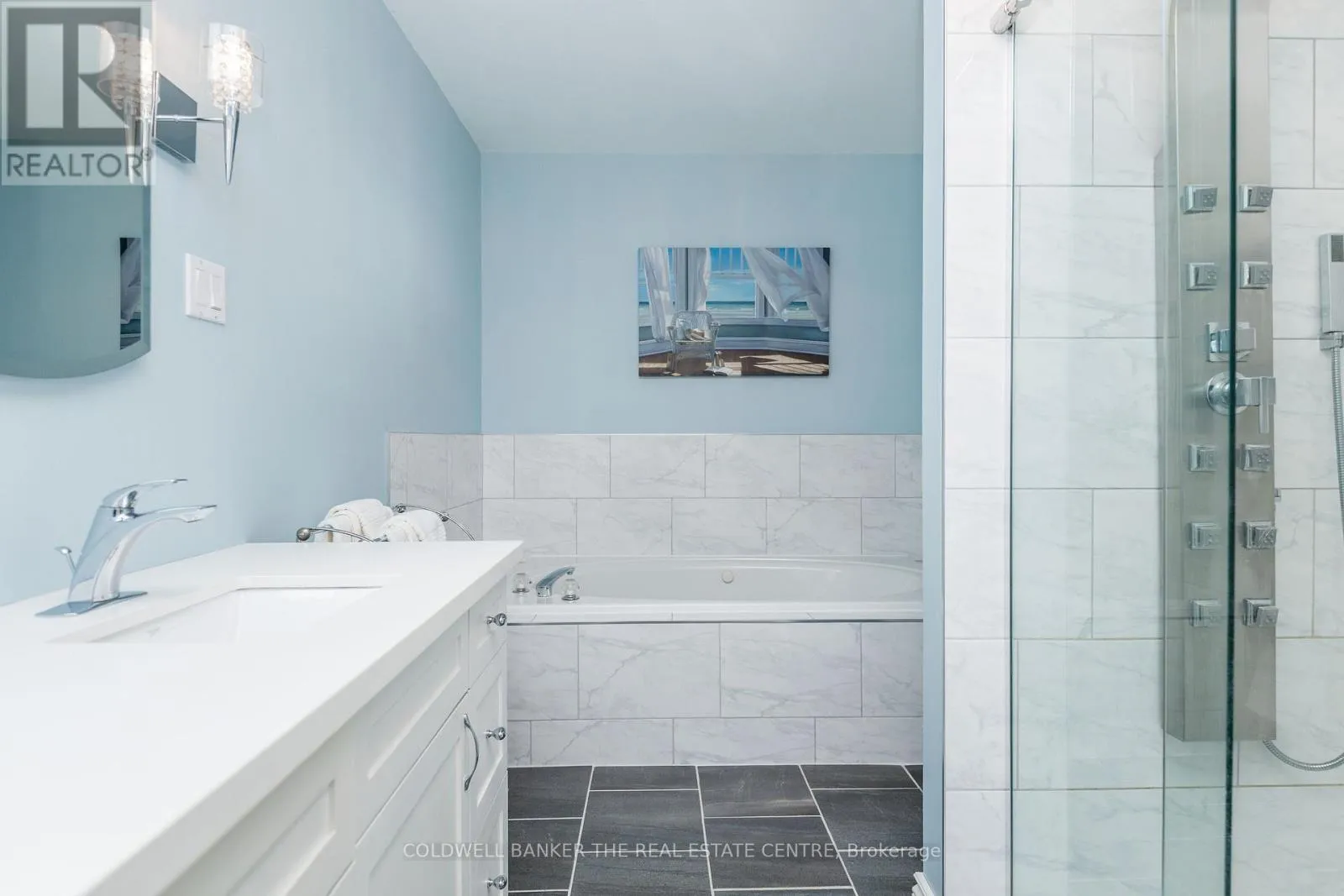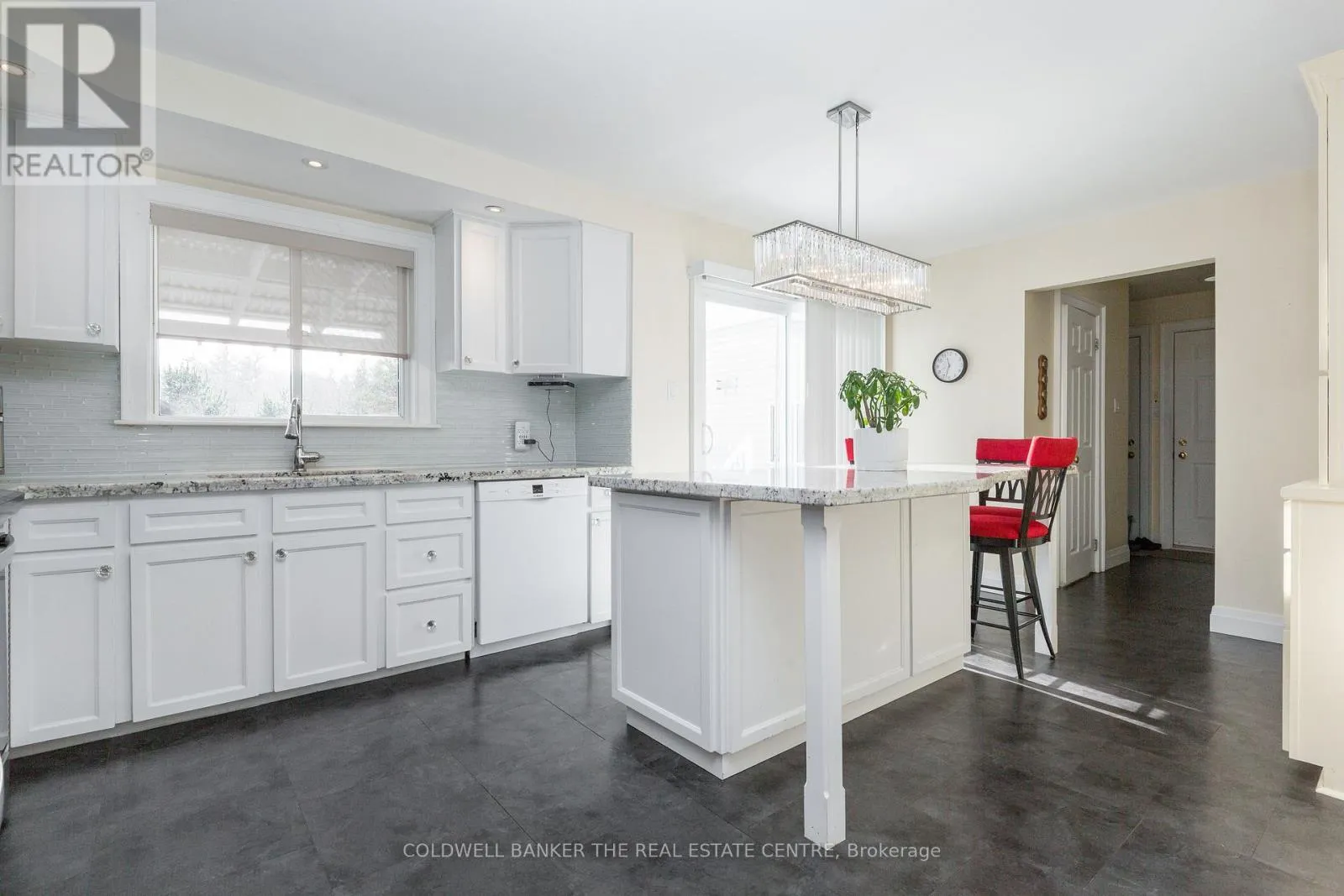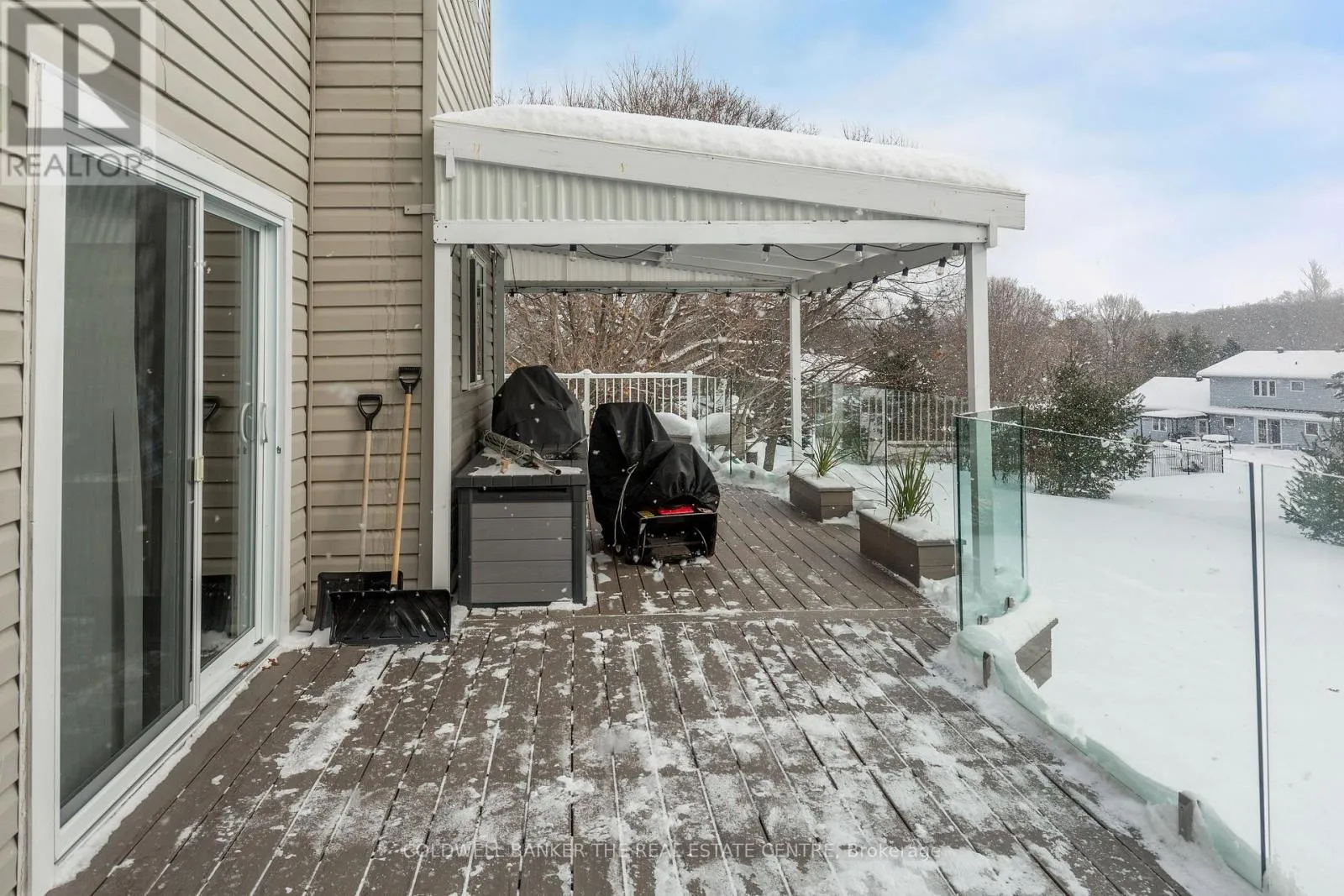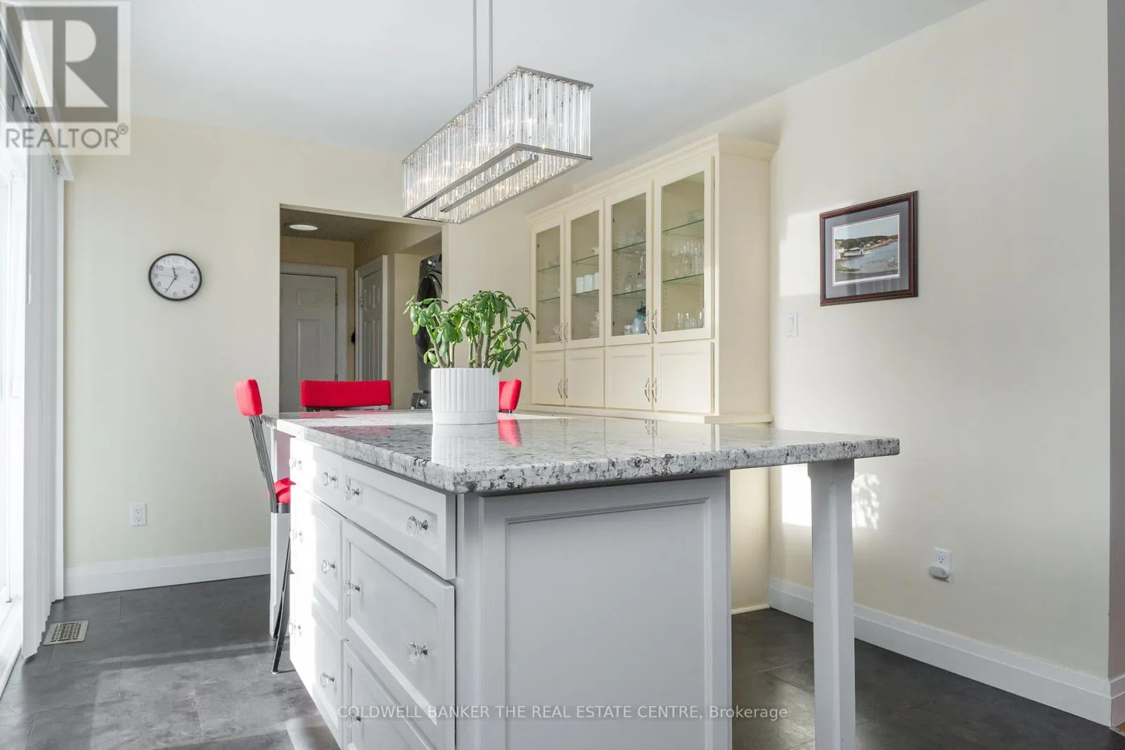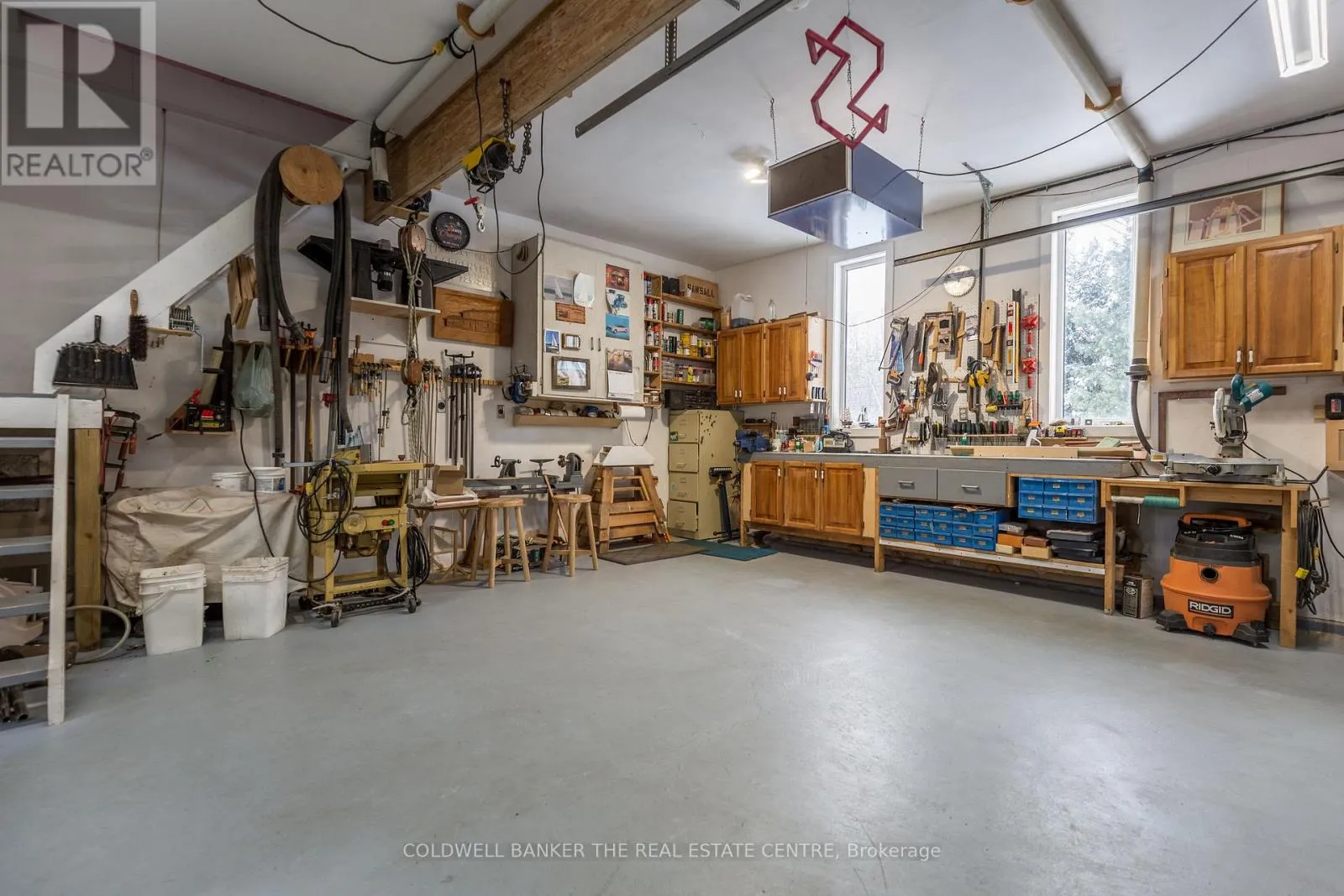 Cross Streets: HWY 93/Golf Link Rd. ** Directions: HWY 93 to Golf Link Rd to Par Four Dr. FIRST TIME OFFERED FOR SALE! This one-owner, custom-built two-storey home is located in one of Midland's most sought-after neighbourhoods and offers the perfect blend of space, comfort, and functionality. Situated on an almost 1-acre lot, 1527 Par Four Drive boasts over 3,200 sq ft of finished living space plus exceptional garage and workshop amenities. The property features a 25' x 25' attached garage, a 25' x 20' insulated and natural gas-heated shop, and a 25' x 45' storage loft-ideal for hobbyists, car enthusiasts, or extra storage needs. Step inside through the covered front porch to a warm and inviting interior showcasing hardwood flooring, a custom gas fireplace with mantle, formal dining room, and a stunning chef's kitchen complete with granite countertops, 7.5-ft centre island, stainless steel appliances, and built-in buffet. Enjoy the convenience of a main-floor primary bedroom suite-no stairs required-featuring a walk-in closet and luxurious 4-piece ensuite with soaker tub, glass shower, and heated floors. The main level is completed by main-floor laundry and a 2-piece powder room. Upstairs, you'll find two generously sized bedrooms with hardwood floors, ample closet space, and a full 4-piece bathroom. The bright, sunny walkout basement offers high ceilings and endless possibilities. Currently set up as a recreation room with custom wet bar, games area, and storage, it is well-suited for conversion to an in-law suite with kitchen plumbing roughed in behind the wall and a shower drain already in place. Outdoor living is just as impressive with a 10' x 40' composite deck featuring glass railings, covered BBQ area with gas line, and 10' x 10' storage space beneath. A long driveway provides parking for 6+ vehicles, boats, trailers, and all the toys. Recent updates include a newer furnace and A/C and epoxy garage (25). Unbeatable location-directly across from Midland Golf & Country Club and just minutes to marinas, shopping, restaurants, and GBGH. (id:27476)