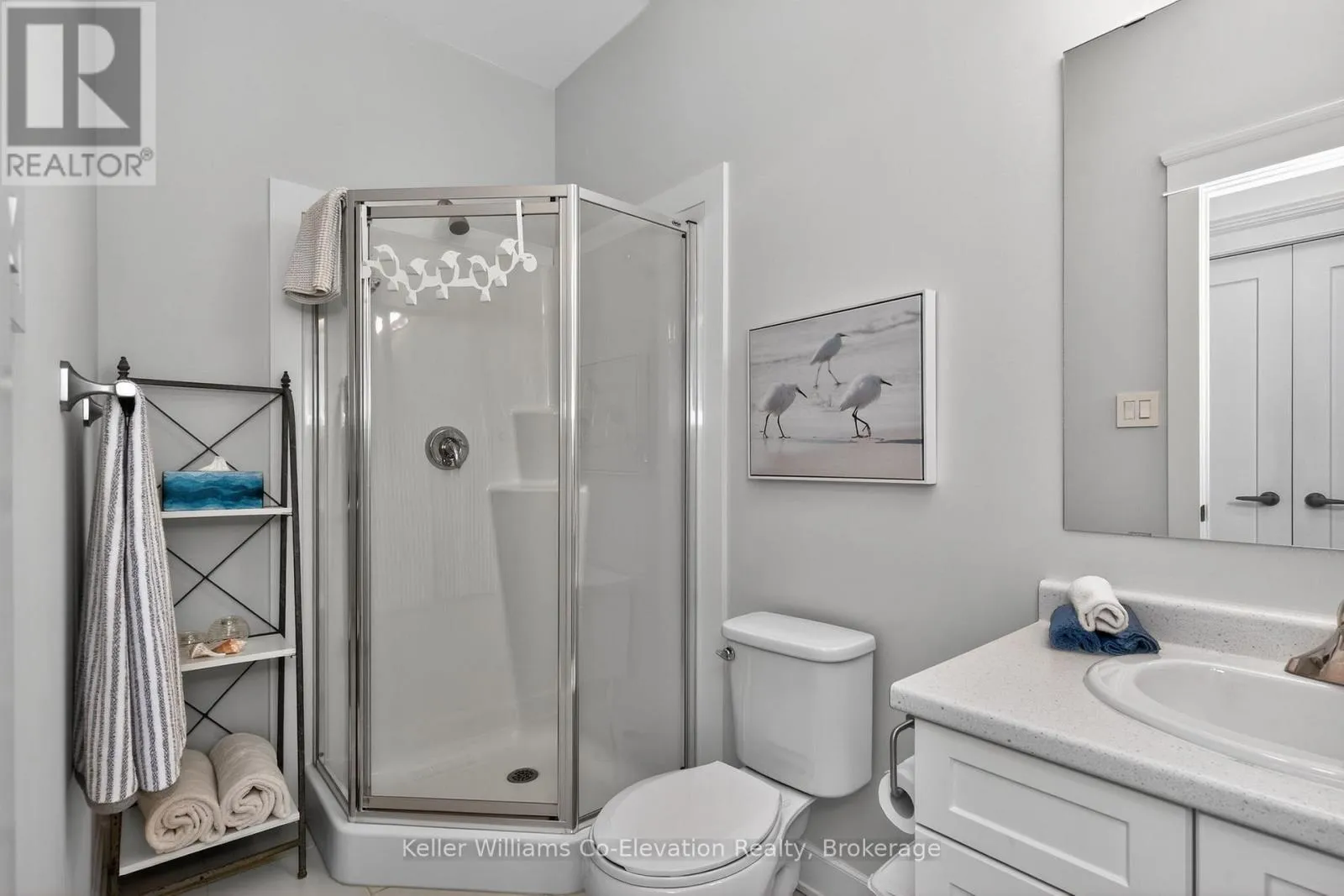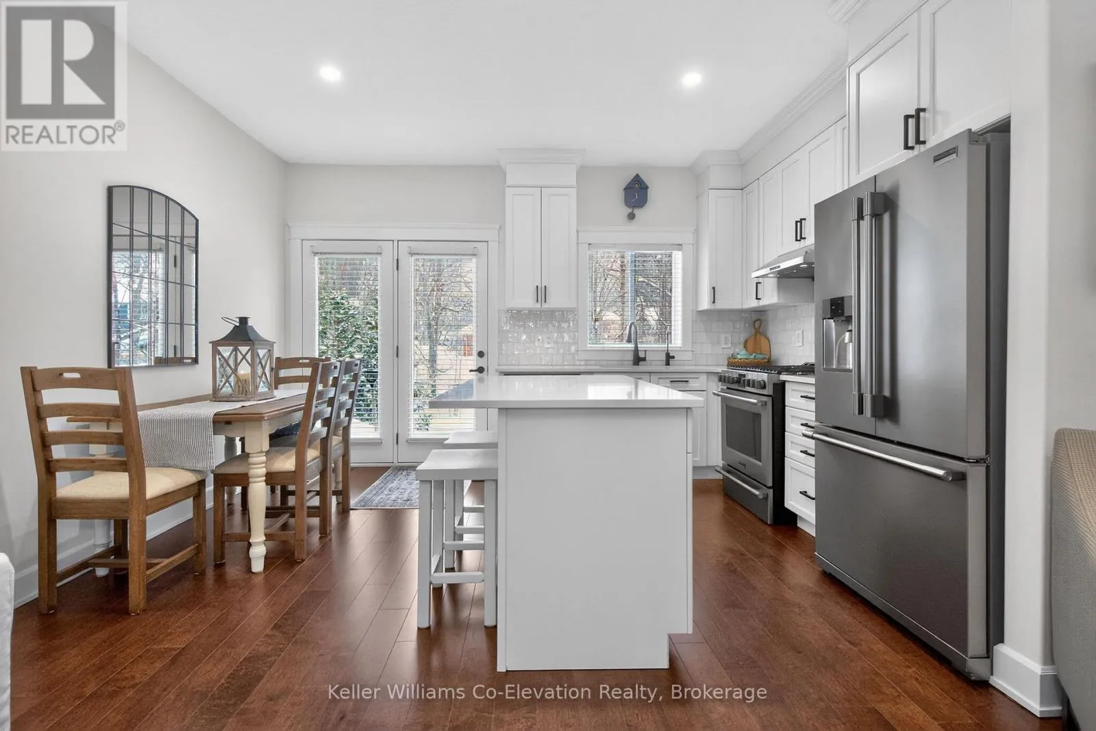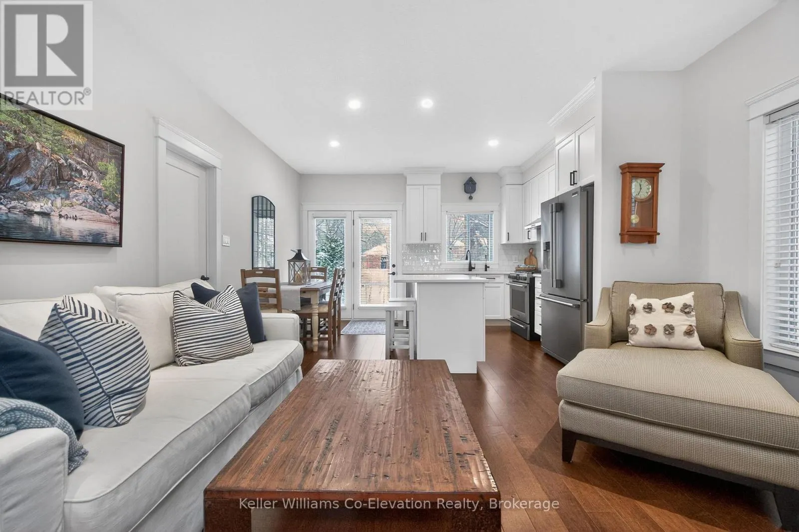 Cross Streets: Penetanguishene Rd/Hugel Ave. ** Directions: Hwy 93 to Hugel Ave to Penetanguishene Rd to Cook Dr. Over $75,000 in documented upgrades set this home apart. Welcome to 1046 Cook Drive in The Grove, a sought-after Craftsman-style neighbourhood in Midland's desirable west end. Built in 2016 by award-winning Devonleigh Homes, this one-owner, meticulously maintained home sits on a premium lot backing onto a forested buffer zone for added privacy. This home includes over $50,000 in builder upgrades plus $26,000+ in additional improvements, making it truly move-in ready and well above typical comparables. Interior features include 9-foot ceilings, upgraded engineered hardwood flooring, Craftsman trim and oak staircase details, upgraded door hardware, and pot lighting in the living room and kitchen. The kitchen offers tall cabinetry with crown moulding, Cambria quartz countertops and island, extended breakfast bar, new zellige tile backsplash, stainless steel hood fan, and upgraded garden doors leading to a beautiful stamped concrete patio. The primary bedroom includes a walk-in closet and upgraded ensuite with air-jet tub and porcelain tile. Main-floor laundry features new cabinetry (2025) and Maytag front-load washer and dryer. The landscaped yard includes perennial gardens, privacy fencing, leaf-guard gutters, updated outdoor lighting, and a large stamped concrete patio overlooking the treed backdrop. Additional highlights include Frigidaire Professional stainless steel appliances with gas range, Lennox central air, insulated and drywalled garage with inside entry, water softener (2023), Kinetico K5 reverse osmosis system (2024), custom soundproofing on adjoining walls, and a high, dry unfinished basement with oversized windows, gas fireplace rough-in, and roughed-in 3-piece bath. This 2-bedroom, 2-bath home offers easy main-floor living with no condo fees, walking distance to shopping, hospital, restaurants, and theatre, and close to trails, parks, beaches, and Georgian Bay. Pride of ownership is evident throughout. (id:27476)