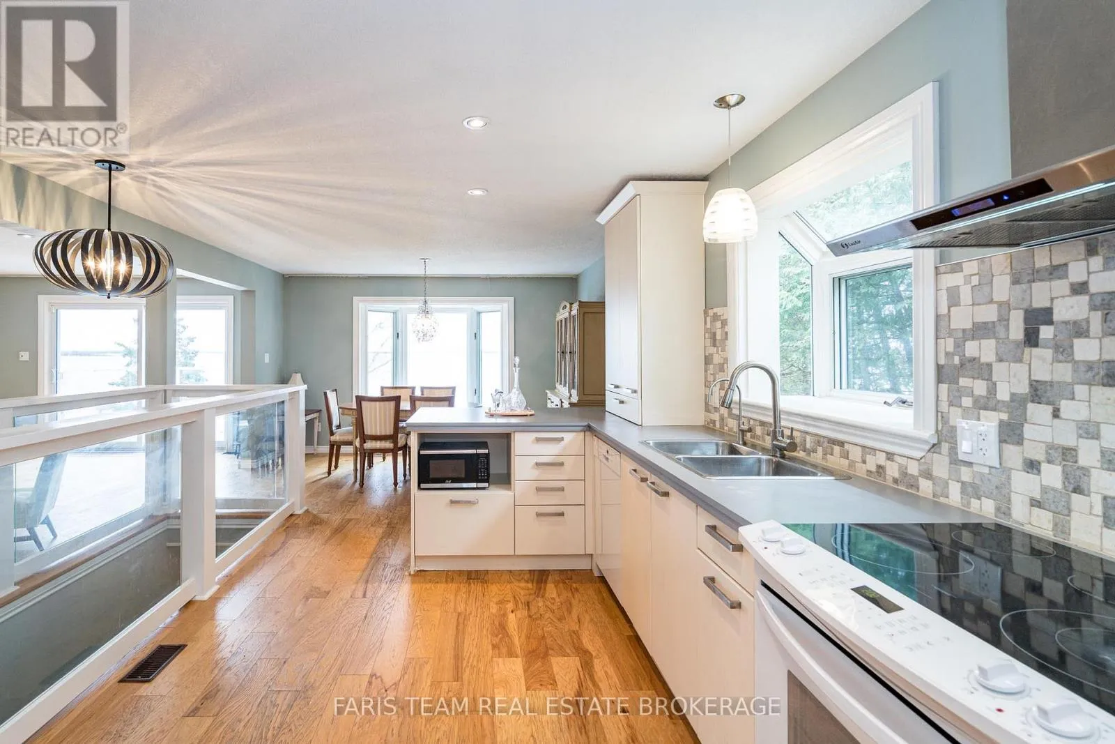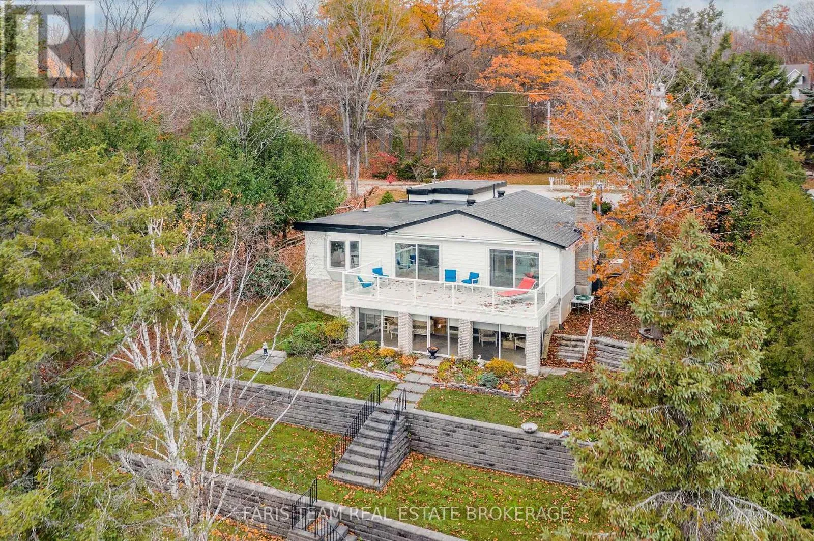 Midland Point Rd/Islandview Ln Top 5 Reasons You Will Love This Home: 1) Indulge in 105' of real, accessible shoreline with a stunning south-easterly view toward Snake Island, where you will wake up to sunrises over the water and end the day with a golden evening glow that you simply can't replicate inland 2) This is one of those rare and coveted shorelines that is rarely for sale, peaceful, mature, and deeply treasured, offering a chance to embrace a lifestyle that few ever get to experience 3) The additional rear parcel offers room to grow, where you can imagine a detached studio, guesthouse, workshop, or a garage to showcase a collection of vintage cars and recreational toys 4) A thoughtful layout featuring three bedrooms and three bathrooms, an updated kitchen, hardwood flooring, open-concept family areas, a Muskoka room, a spacious primary suite, a sauna, and a lower level walkout that seamlessly connects you to the water, designed for effortless everyday living and year-round enjoyment 5) Freshly painted with an interlock driveway, single car garage with inside entry, and an outdoor patio perfect for entertaining, as well as the forced air heating ensures comfort through the seasons, and the water view follows you from nearly every room. 1,448 above grade sq.ft. plus a finished lower level. (id:27476)