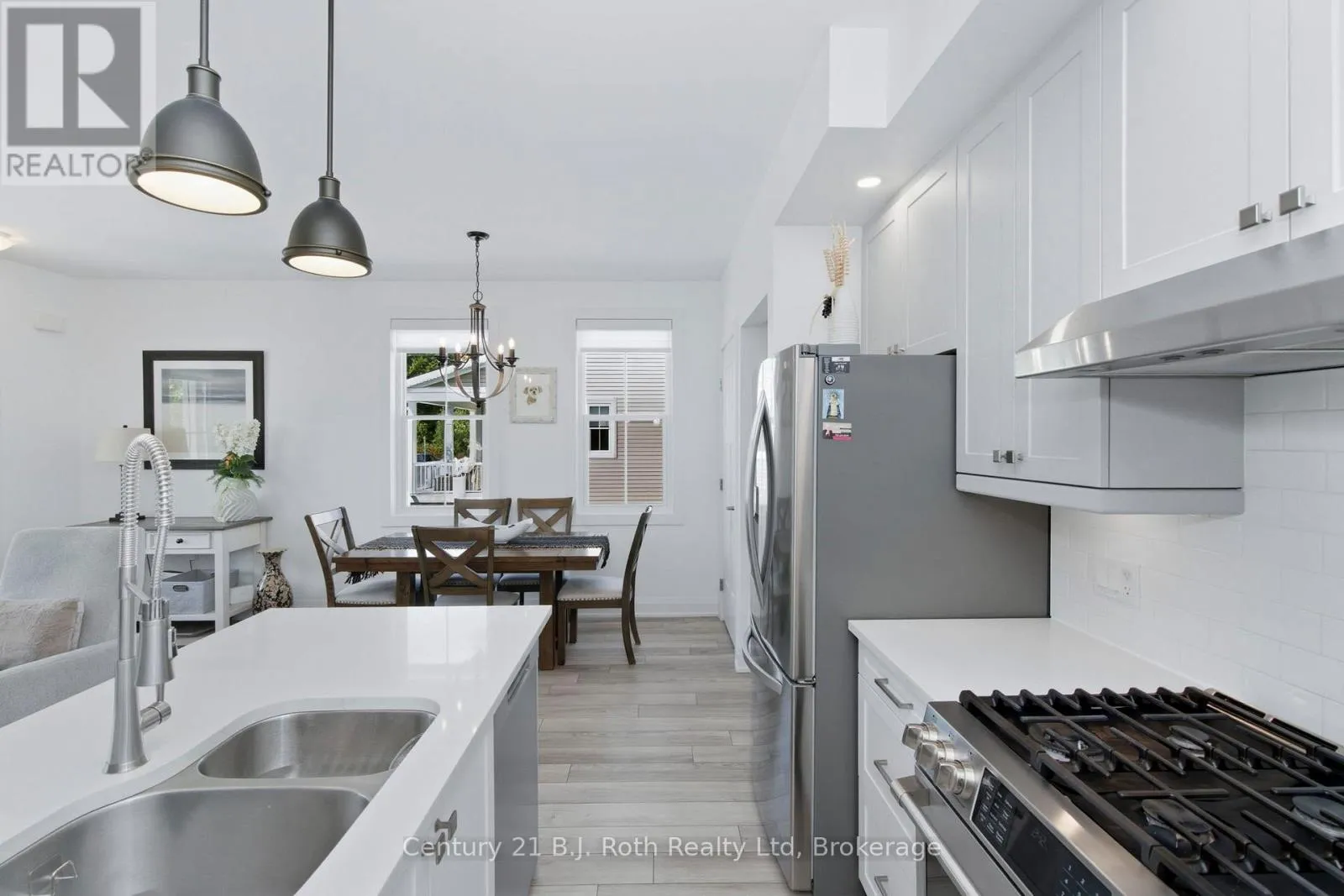 Cross Streets: Hwy 12 and Hanson Rd. ** Directions: Hwy 12 to Hanson Rd right on Thompson, Right on Discovery Trail. SOP. Move in ready. One owner since new. Beautiful home in a charming lifestyle community. All outdoor maintenance is managed by condo corp. Snow removal and grass cutting and much more. SEMI-DETACHED condo home, Single garage, One extra parking, Fully finished basement. So many upgrades. Easy car access to front, side and rear of home. Lots of windows. 9 FOOT CEILINGS on main and upper level. Stunning kitchen with soft close cabinetry, QUARTZ countertops. PANTRY on main floor by kitchen. 33 inch LG stainless steel fridge with outside water and ice dispenser. GE Dual Fuel/Double oven 30 inch stove. High end Samsung front load washer & dryer. Primary bedroom with 3 piece shower ensuite on main level. Also 2 piece washroom on main level. All windows coverings including remote control blinds in great room. 100% oak stairs leading to basement, Natural gas at rear patio for BBQ hookup. Condo fees include snow removal, grass & tree maintenance, window cleaning, replacement of windows, roof, patio. home exterior insurance. Basement is finished for a cozy TV & games room. Storage, laundry room and 2 piece washroom. Upstairs is an office, 2nd bedroom, 3 piece washroom. Come and take a look. Close to Little Lake, Georgian Bay, major stores, LCBO, restaurants, Theatre, Bike trails, town dock, arts centre, parks, place of worship, hospital, library, sports centre and more. Book your showing today. (id:27476)