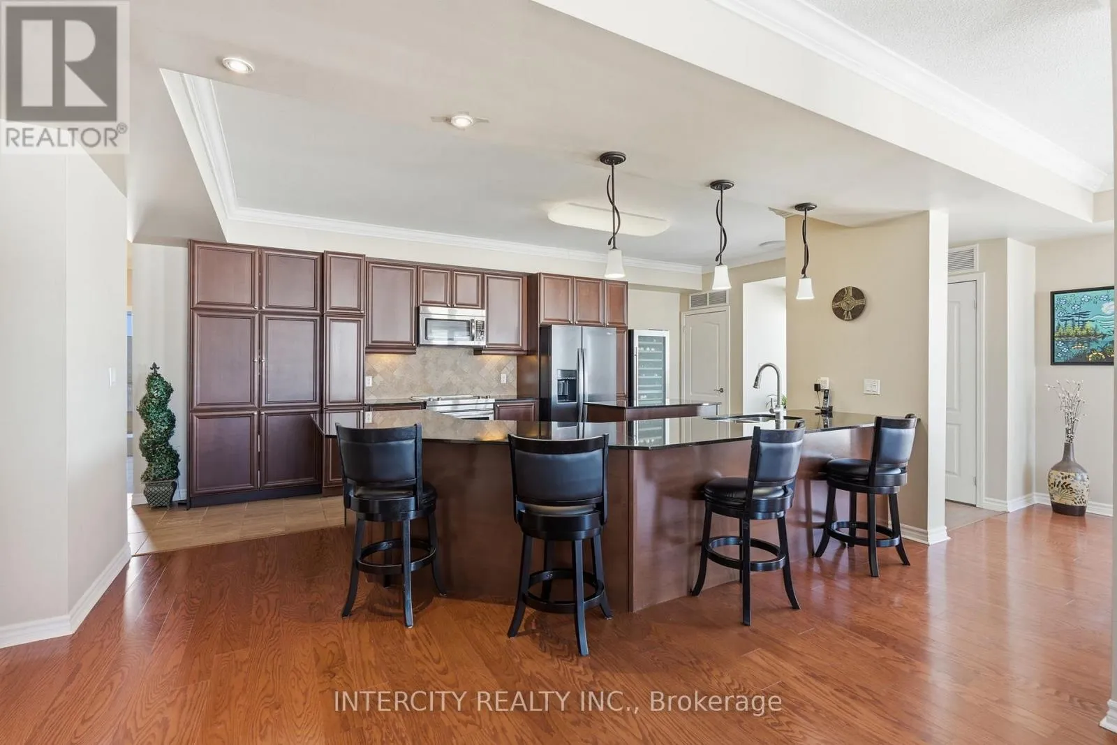 Cross Streets: Yonge St & Aberdeen Blvd. ** Directions: Yonge St & Aberdeen Blvd Coming from Highway 12 turn onto William St (North). Followed by a right hand turn onto Pillsbury Dr. which turns into Aberdeen Blvd. Tiffin Pier will be on your righthand side. Stunning nearly 2,000 sq. ft. waterfront condo in the highly sought-after Tiffin Pier. This bright 2-bedroom plus den corner unit offers multiple walkouts and two private waterfront balconies. The open-concept layout features a central three-sided fireplace, ideal for entertaining, along with 9-ft ceilings and quality upgrades throughout. Enjoy a convenient BBQ hookup off the kitchen, perfect for grilling while taking in the view. The spacious primary bedroom boasts breathtaking 180-degree water views, a walkout to the waterfront balcony, and the largest walk-in closet and ensuite in the building. Located just steps from the marina and the Trans Canada Trail, with easy walking or biking access to downtown shops and restaurants. Premium underground parking accommodates up to four vehicles and includes an extra-large storage unit. Residents enjoy exceptional 5-star amenities including a gym with change rooms, saunas, swim-spa pool, hot tub, party room, guest suite, and more. Life truly is too short to live anywhere else. (id:27476)