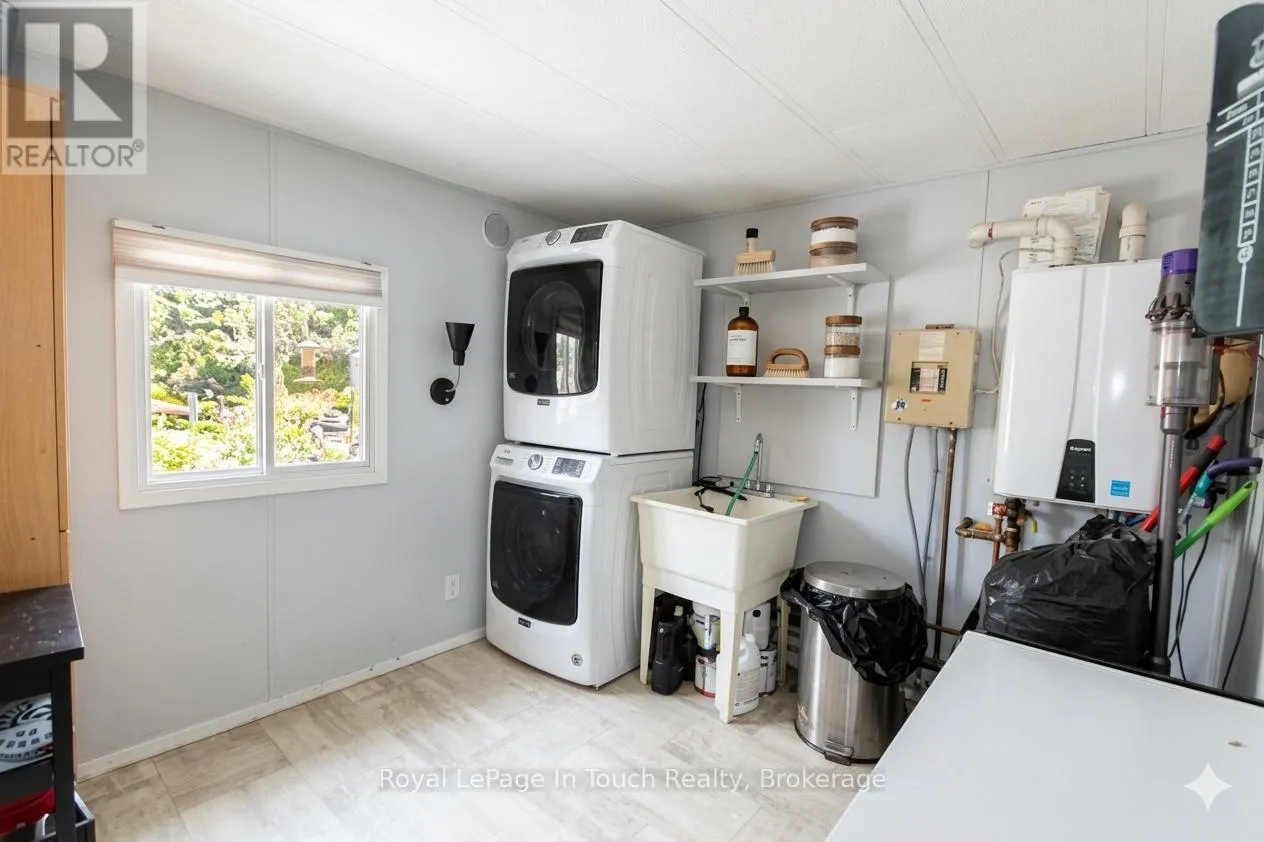 Cross Streets: King St & Smiths Camp Rd. ** Directions: Hwy 12, King St, Smiths Camp Rd. Enjoy year-round waterfront living in this one-bedroom mobile home backing onto Little Lake in Midland, offering private waterfront views and dock access for all your water activities. Just steps to the waterfront shoreline and dock from your backyard. Features include a modern kitchen and bathroom, laundry room (9.6 x 8.6ft - Den or ??), walkout to deck, on-demand hot water owned, and gas stove. Located in Smiths Camp, a family-friendly park with a pool and shuffleboard court. Monthly fee of $538.45 covers land lease, water/sewer, parking, garbage, and park maintenance. Call today to view before you miss this opportunity! (id:27476)