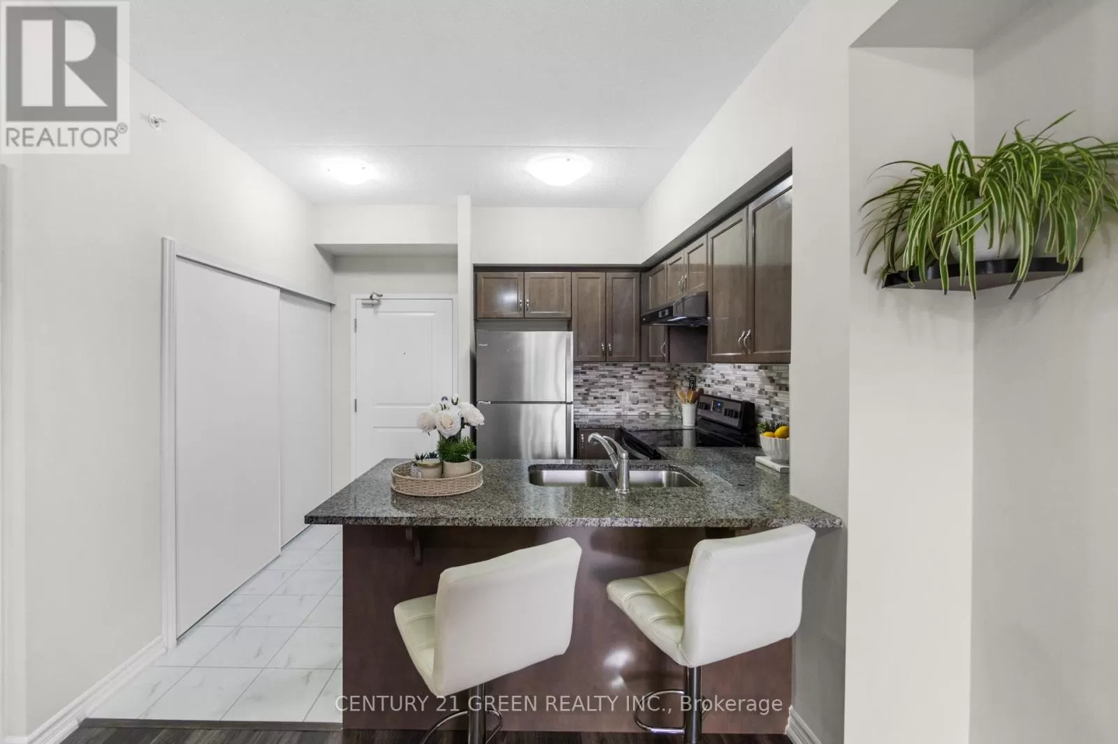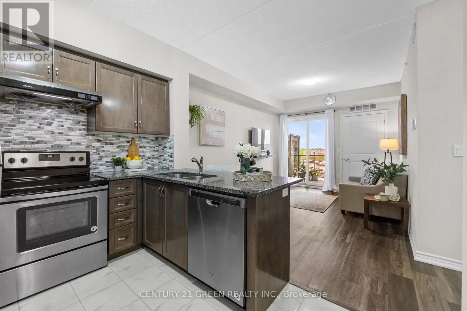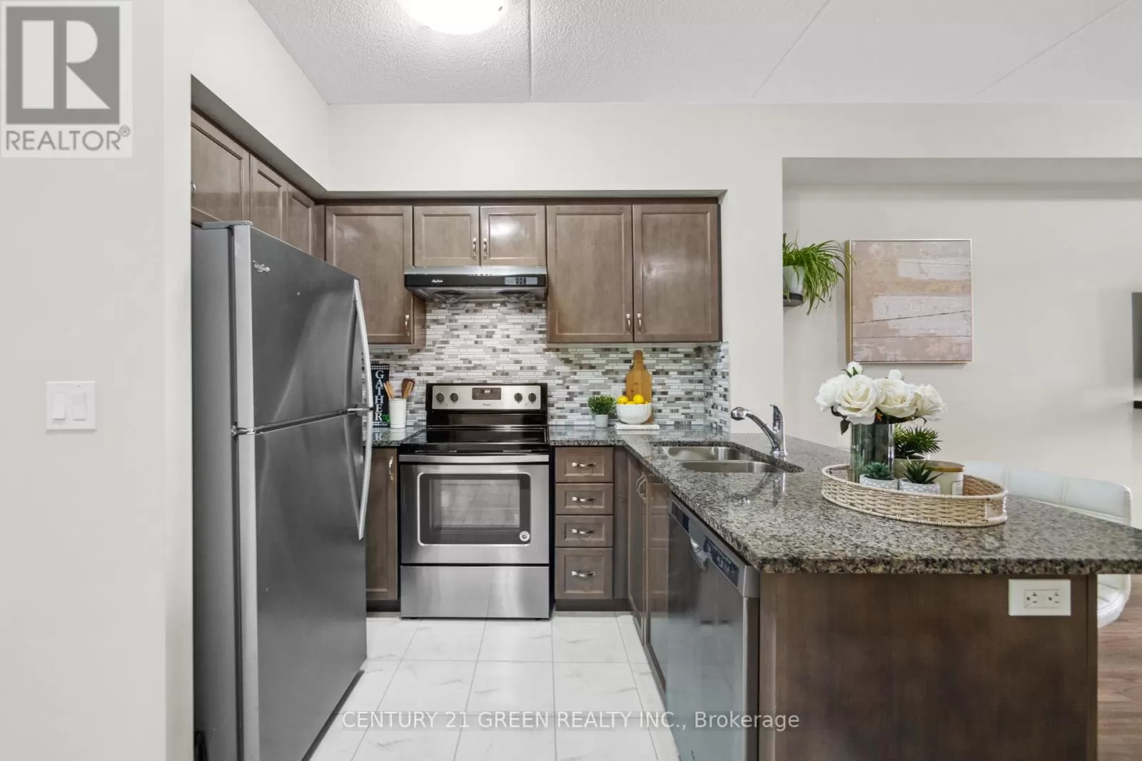 Derry Rd & Sauve St Welcome to this beautifully maintained two-bedroom, two-bathroom suite located on the third floor of the sought-after Origins low-rise community. Offering a smart, open-concept layout with over 800 sq. ft. of living space and 9 ft ceilings, this unit is the perfect blend of comfort and convenience. Enjoy a modern kitchen with granite countertops and stainless steel appliances, flowing into a bright living/dining area with a walk-out to your private balcony. The primary bedroom features a walk-in closet and a 4-piece ensuite, while the second bedroom offers flexibility for guests, family, or a home office. Additional highlights include in-suite laundry, a surface parking spot, and a large storage locker. Ideally located across from Irma Coulson Public School, with parks, trails, shopping, and transit just steps away. Minutes to Hwy 401, Milton GO, restaurants, Milton Hospital, and more. Enjoy the buildings excellent amenities, including a fitness room, party room, and rooftop terrace. A rare find with low maintenance fees, visitor parking, and a welcoming community feel this is Milton living at its best! (id:27476)