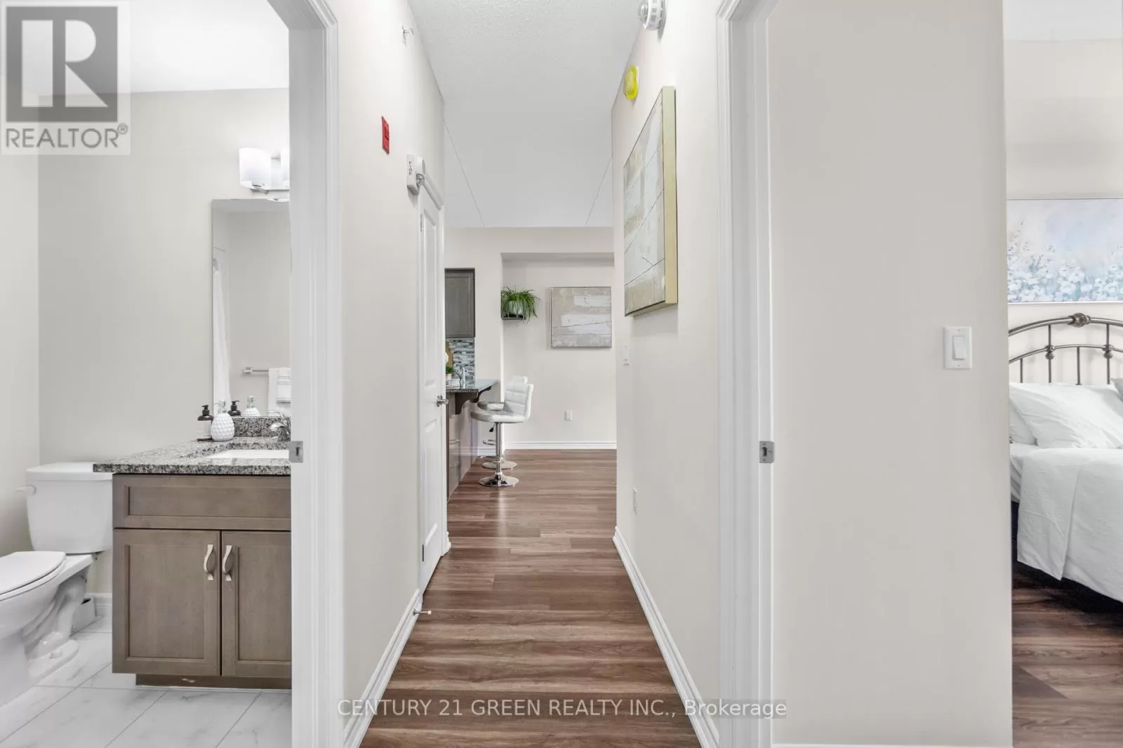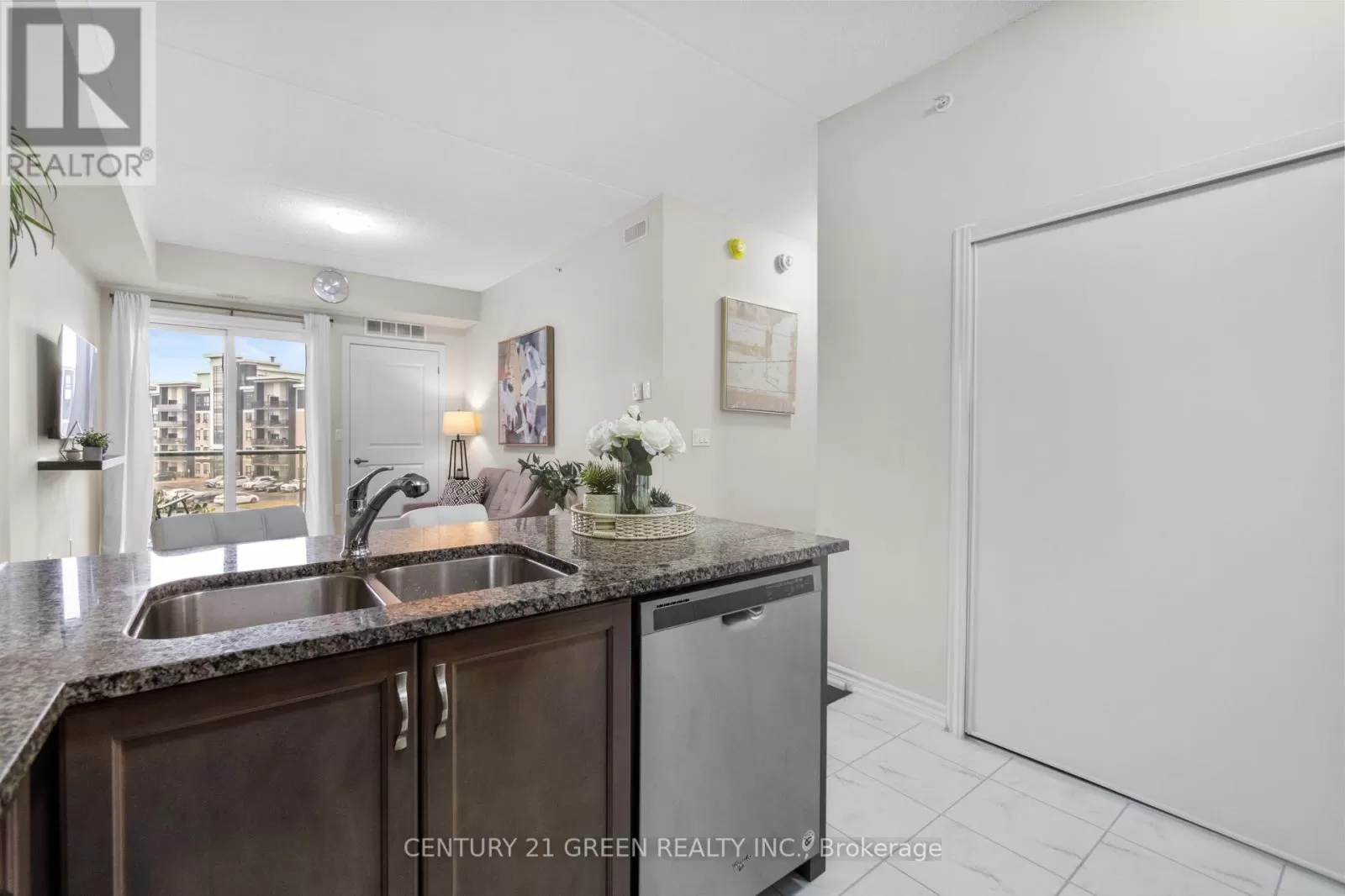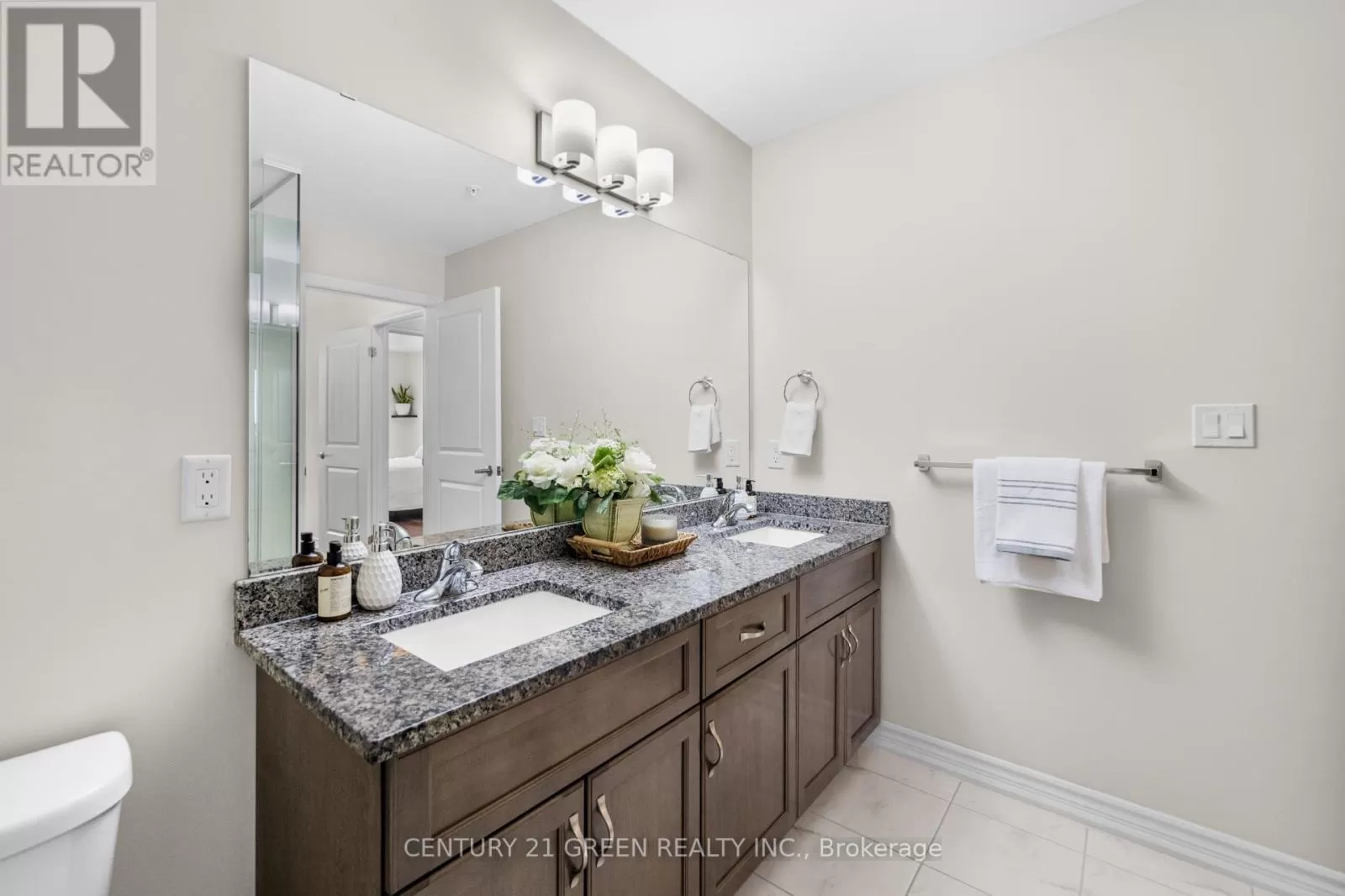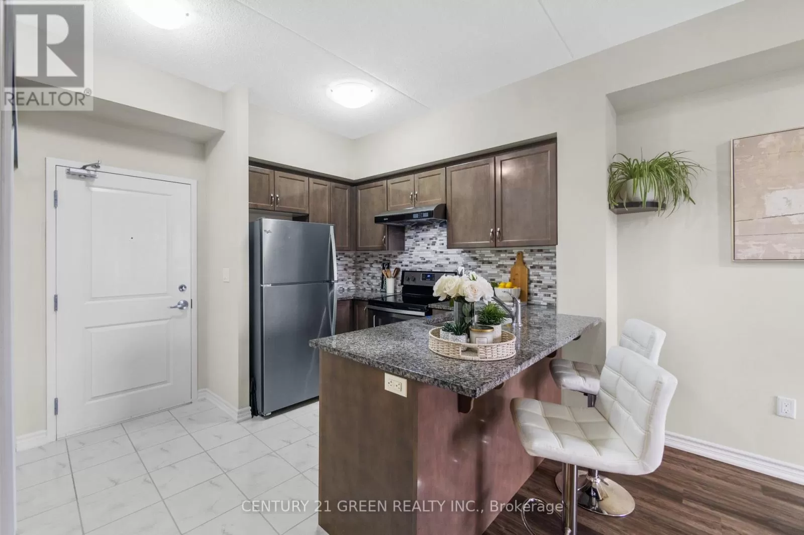 Derry Rd & Sauve St Welcome to this beautifully maintained two-bedroom, two-bathroom suite located on the third floor of the sought-after Origins low-rise community. Offering a smart, open-concept layout with over 800 sq. ft. of living space and 9 ft ceilings, this unit is the perfect blend of comfort and convenience. Enjoy a modern kitchen with granite countertops and stainless steel appliances, flowing into a bright living/dining area with a walk-out to your private balcony. The primary bedroom features a walk-in closet and a 4-piece ensuite, while the second bedroom offers flexibility for guests, family, or a home office. Additional highlights include in-suite laundry, a surface parking spot, and a large storage locker. Ideally located across from Irma Coulson Public School, with parks, trails, shopping, and transit just steps away. Minutes to Hwy 401, Milton GO, restaurants, Milton Hospital, and more. Enjoy the buildings excellent amenities, including a fitness room, party room, and rooftop terrace. A rare find with low maintenance fees, visitor parking, and a welcoming community feel this is Milton living at its best! (id:27476)