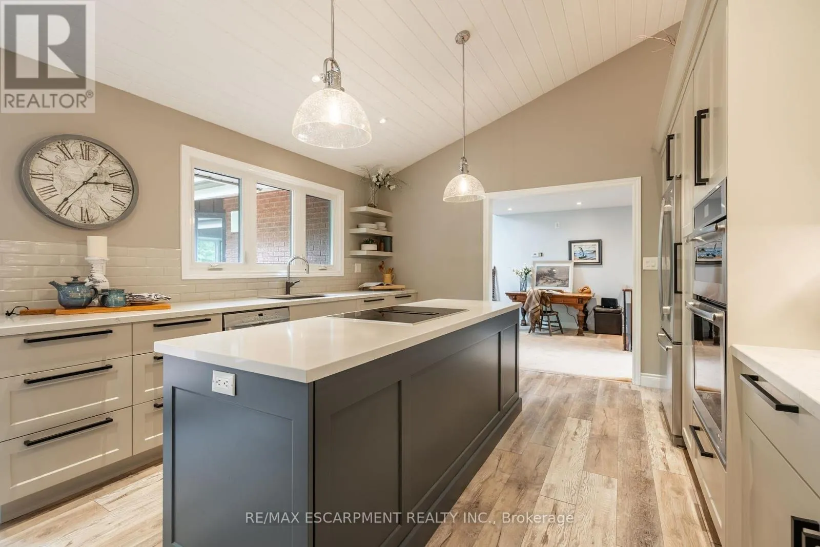 Cross Streets: Campbelleville/ Milburough. ** Directions: HWY 6 to Campbelleville Rd to Milburough Line. A Private Slice of Paradise in Milton Perfect for Growing or Multi-Generational Families! Welcome to your own serene retreat just 17 km from Burlington. Tucked away on a beautifully landscaped, fully fenced 0.65-acre lot, this custom 3,200 sq. ft. home combines peaceful country living with the convenience of nearby city amenities ideal for families who value space, privacy, and versatility. Step inside to a chef-inspired kitchen designed to impress, featuring soaring vaulted ceilings, elegant quartz countertops, an expansive 8-foot island, soft-close cabinetry, and premium Jenn-Air appliances. The open-concept layout flows seamlessly into a sun-drenched dining area with a stunning wall of windows showcasing lush greenery, and a spacious living room with a cozy fireplace and vaulted ceilings perfect for entertaining or unwinding in comfort. The main level offers three generous bedrooms and two full bathrooms, including a luxurious primary suite with vaulted ceilings, three closets, and a beautifully updated spa-like ensuite. Upstairs, you'll find a private retreat-style second primary suite with its own 2-piece bath and flexible living or office space ideal for guests, teens, or working from home. The lower level features a large family room with a fireplace and a dedicated workshop a dream space for hobbyists or DIY enthusiasts. At the opposite end of the home, a separate entrance leads to a full in-law suite through a practical mudroom, providing exceptional flexibility for extended family or long-term guests. Enjoy peace of mind year-round with a backup generator that ensures continued comfort and security. This rare offering delivers the best of both worlds: tranquil living in a park-like setting, with all the essentials just minutes away. (id:27476)