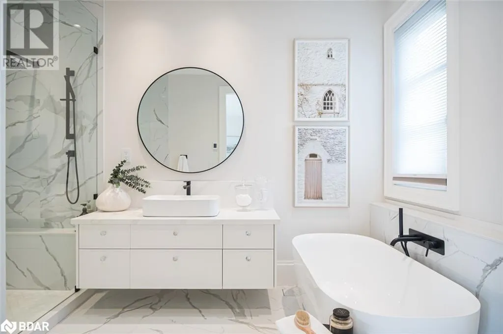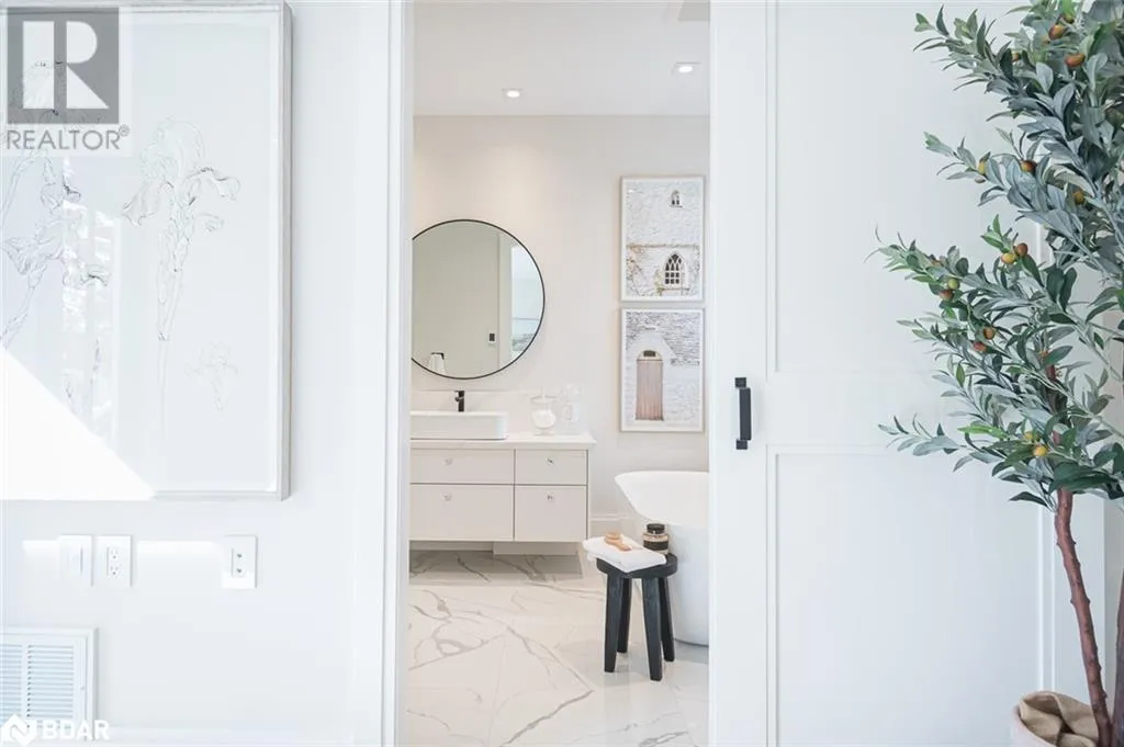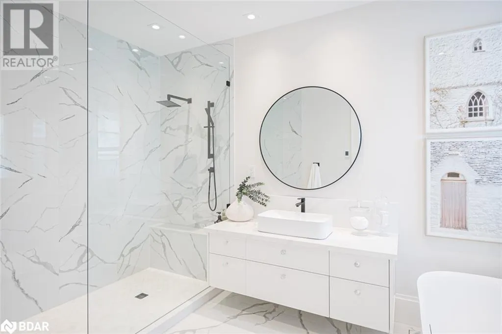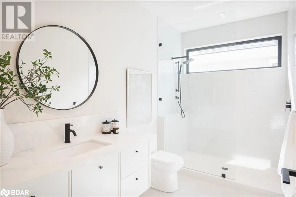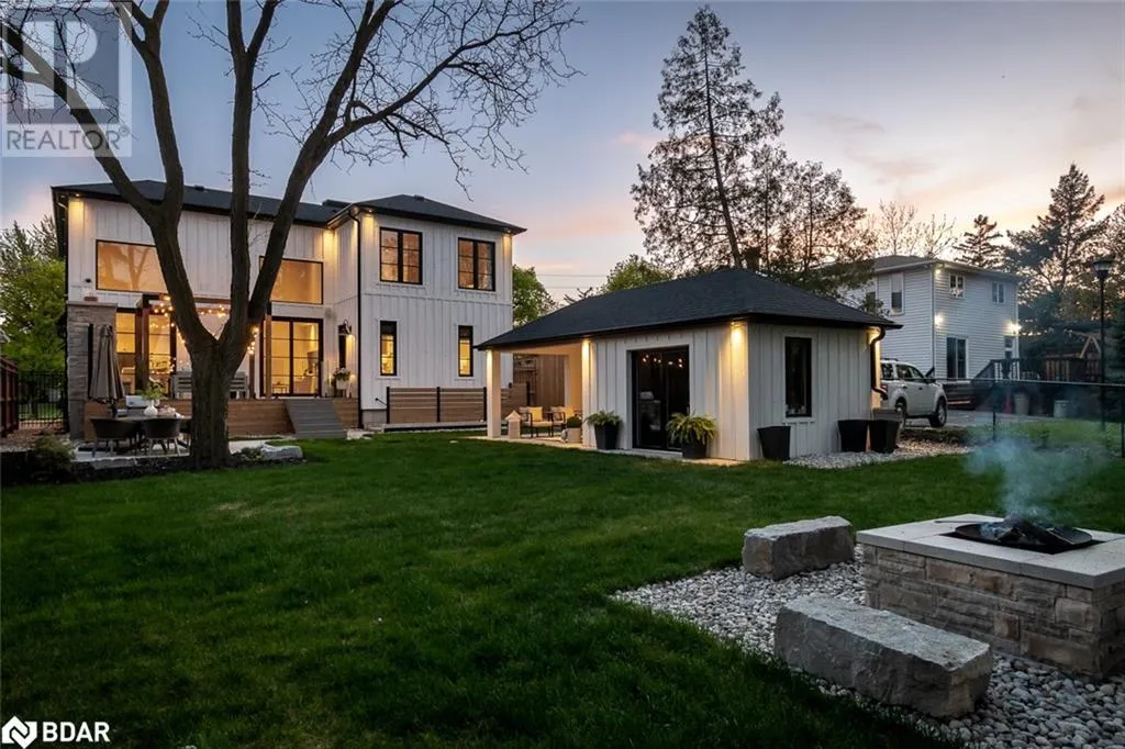 Main- Martin. A rare blend of luxury, craftsmanship, and thoughtful design, this custom-built home sits on an extra-deep 185-foot lot in the heart of Old Milton. Just steps to charming local restaurants, boutique shops, schools, and parks, it offers both elegance and convenience. Inside, 19-foot ceilings with exposed wood beams create a dramatic first impression. Oversized patio doors lead to a private, peaceful backyard, complete with a composite deck, stunning stone fireplace, and a powered outbuilding ready to become a pool house, studio, or inspiring work-from-home space.The custom kitchen is an entertainerâs dream, featuring a walk-in pantry and seamless flow into the open-concept living space. The main floor also includes a serene primary suite and a front office with a closet that easily converts into a fifth bedroom.Upstairs, a second primary suite and spacious bedrooms all feature large closets with built-in organizers. Heated floors in every bathroom and laundry room bring elevated comfort. The walk-out basement adds a rec room, wet bar, 3-piece bath, cold cellar, and ample storage.This is more than a home â itâs the lifestyle youâve been waiting for. (id:27476)